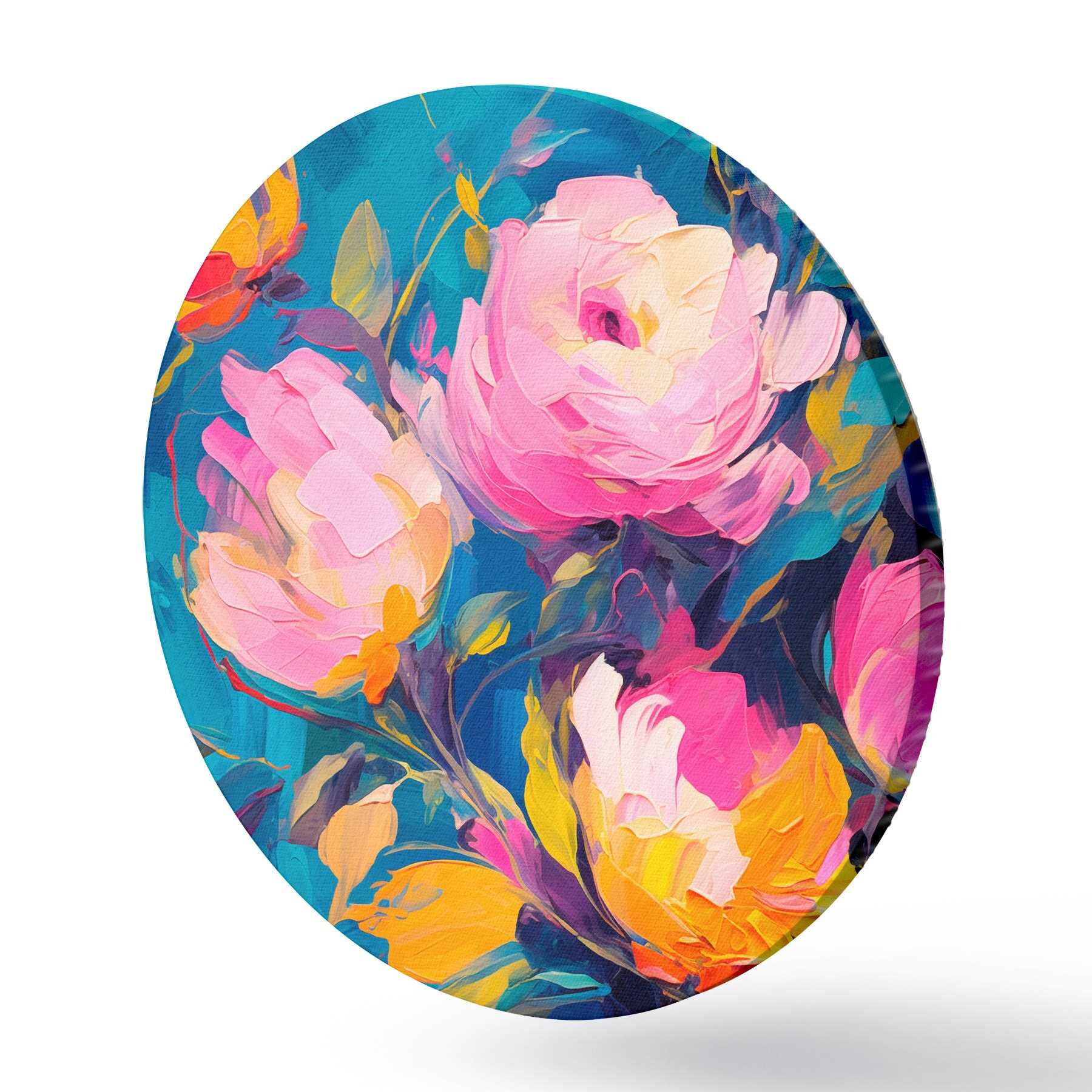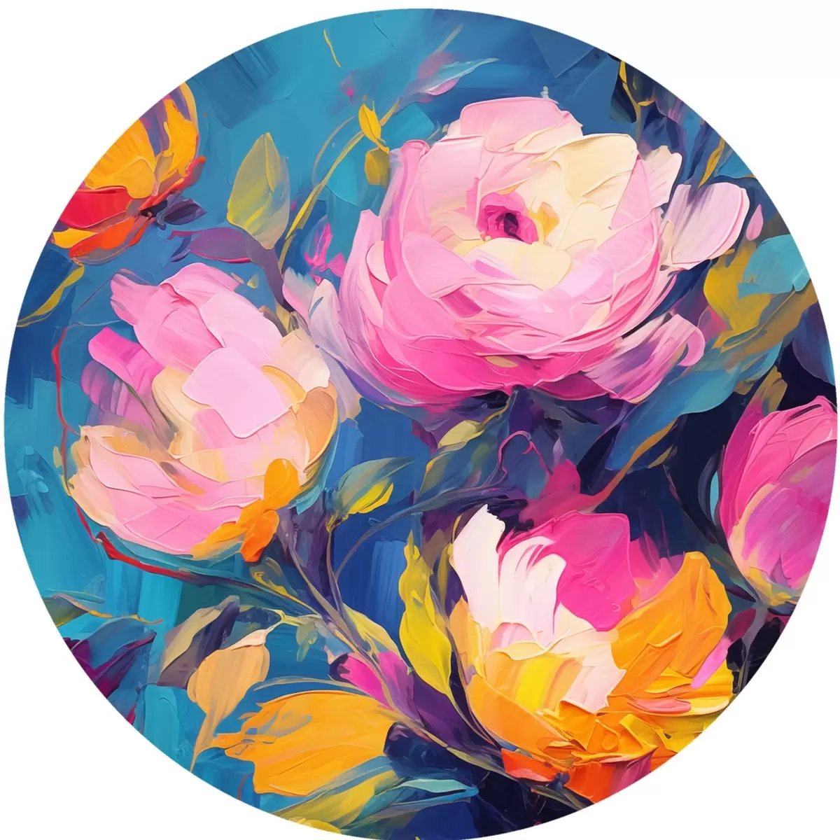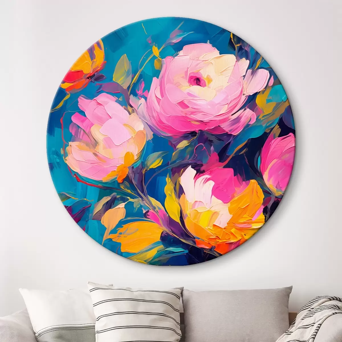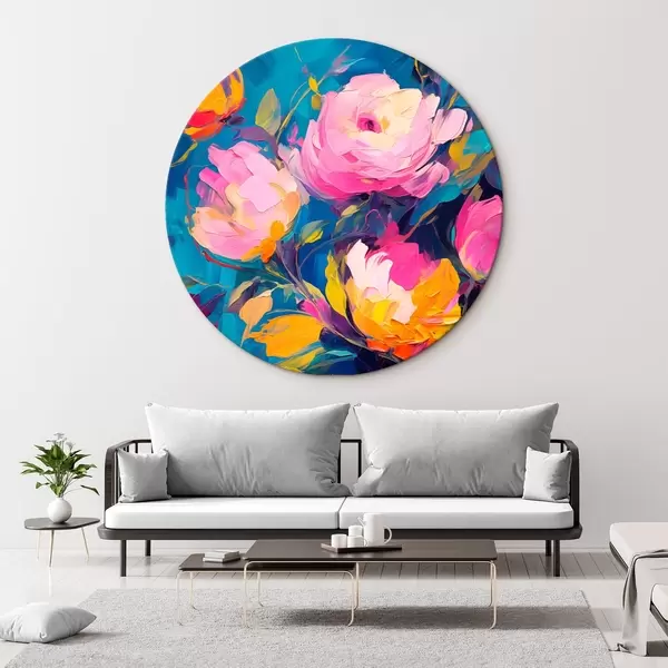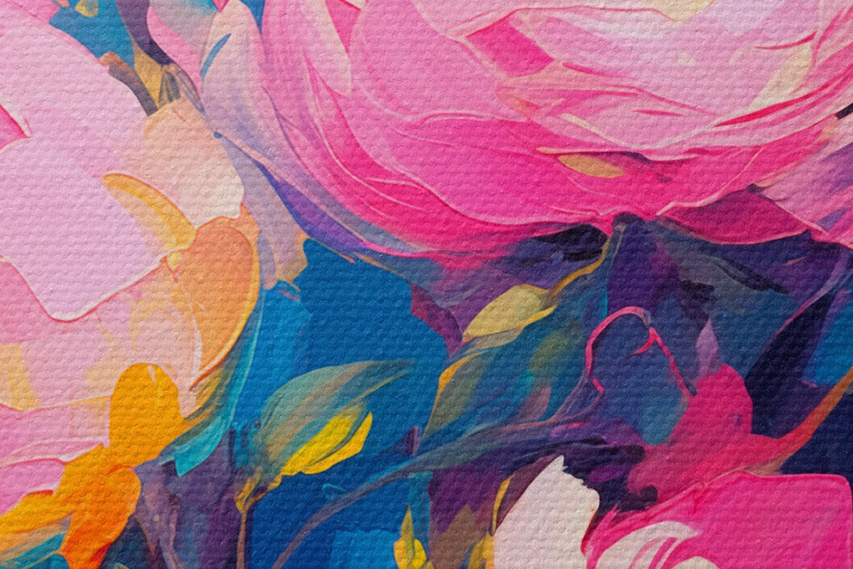 Nuotrauka Abstraktus paveikslas su ryškiomis gėlėmis mėlyname fone Nr r42941