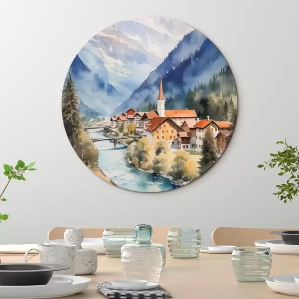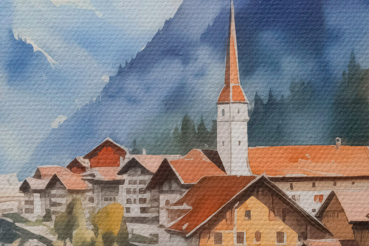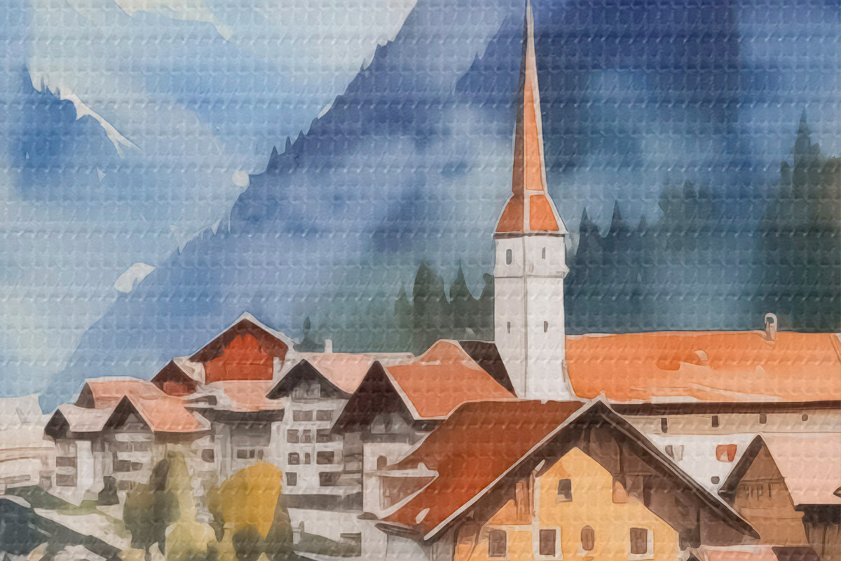 Nuotrauka Kaimas prie kalnų imitacijos akvarelė Nr r42964