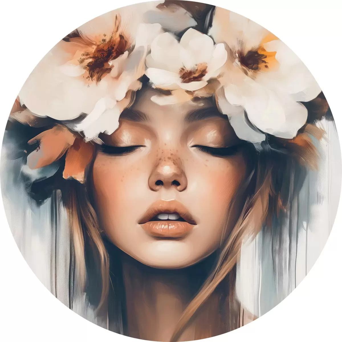 Nuotrauka Moters su gėlėmis plaukuose portretas Nr r43001