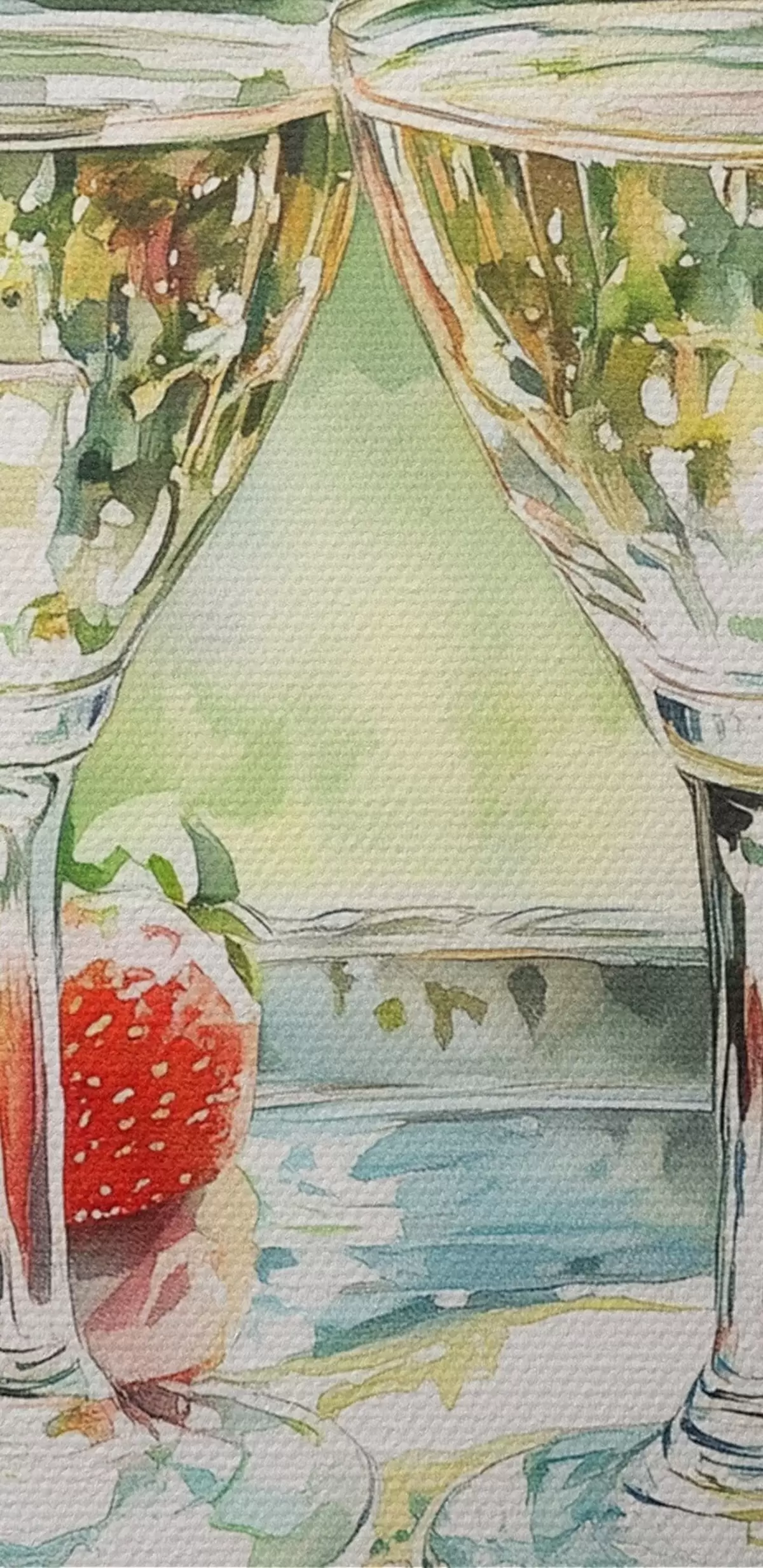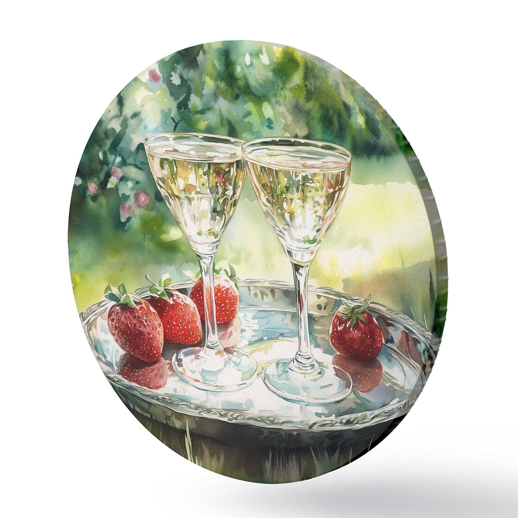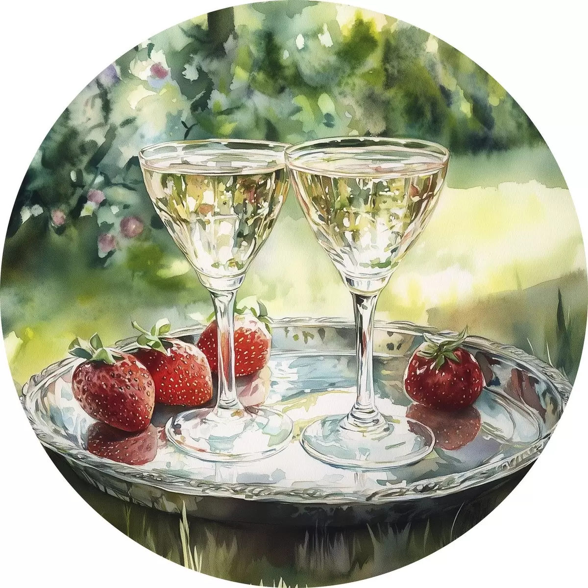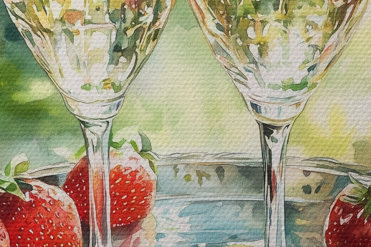Nuotrauka Vasaros piknikas su šampanu ir braškėmis, akvarelės stiliaus piešinys Nr r43055