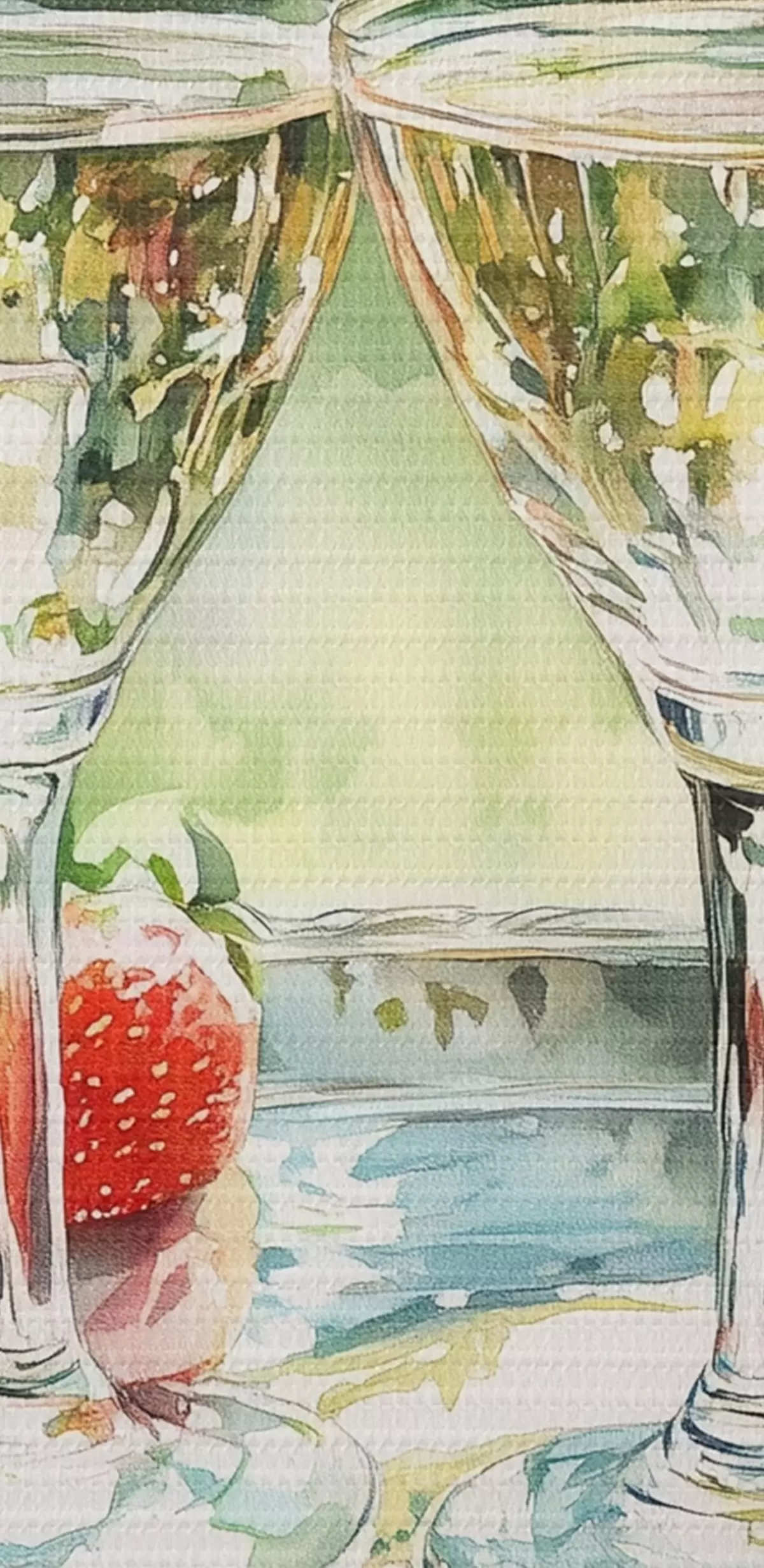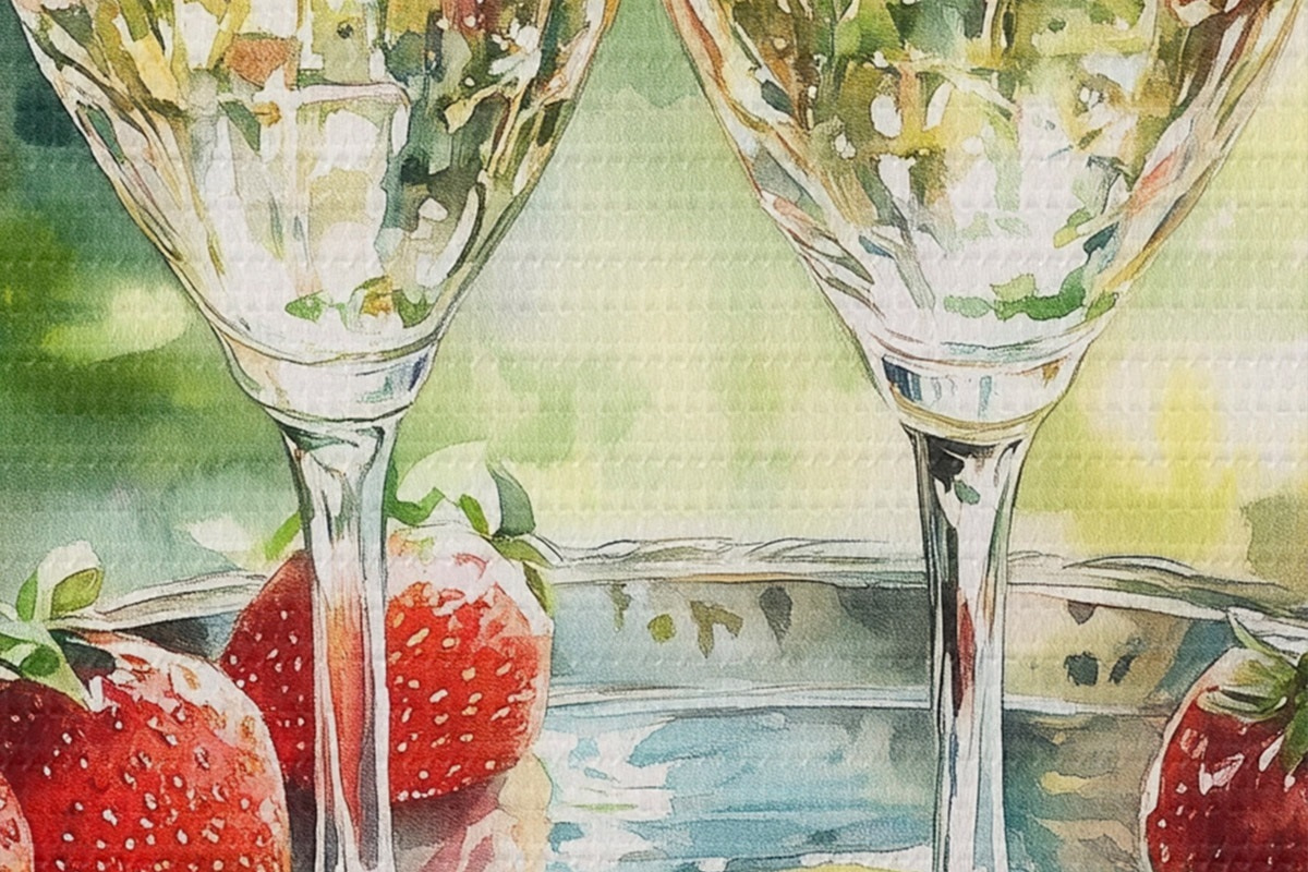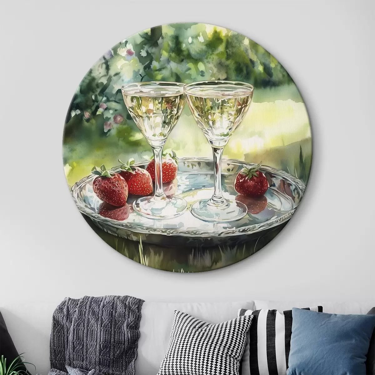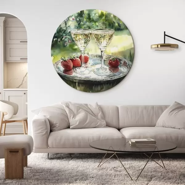 Nuotrauka Vasaros piknikas su šampanu ir braškėmis, akvarelės stiliaus piešinys Nr r43055