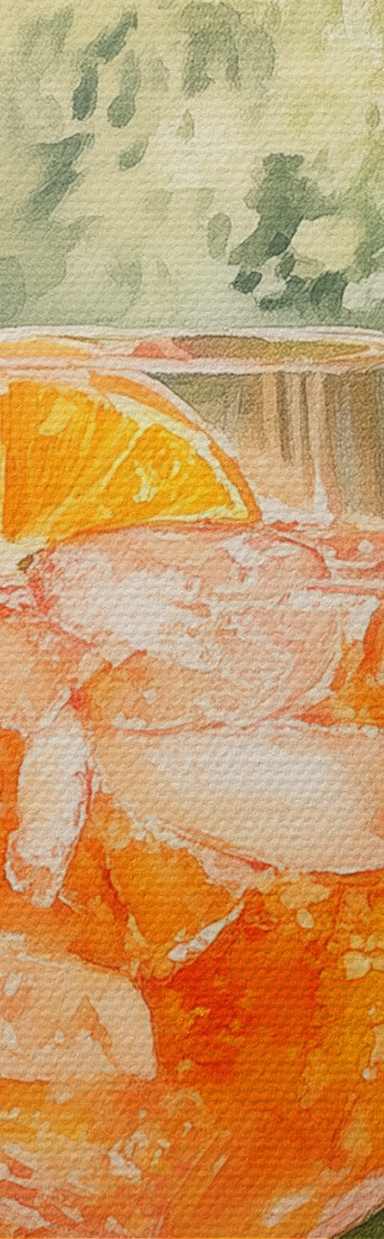 Nuotrauka Skanus kokteilis su apelsinais, kaimiškas stilius, akvarelė, gamta Nr r43060