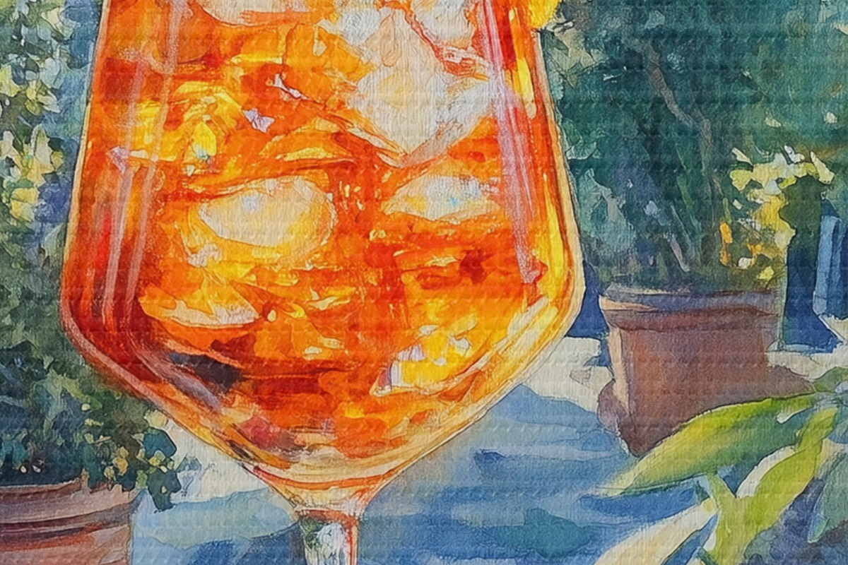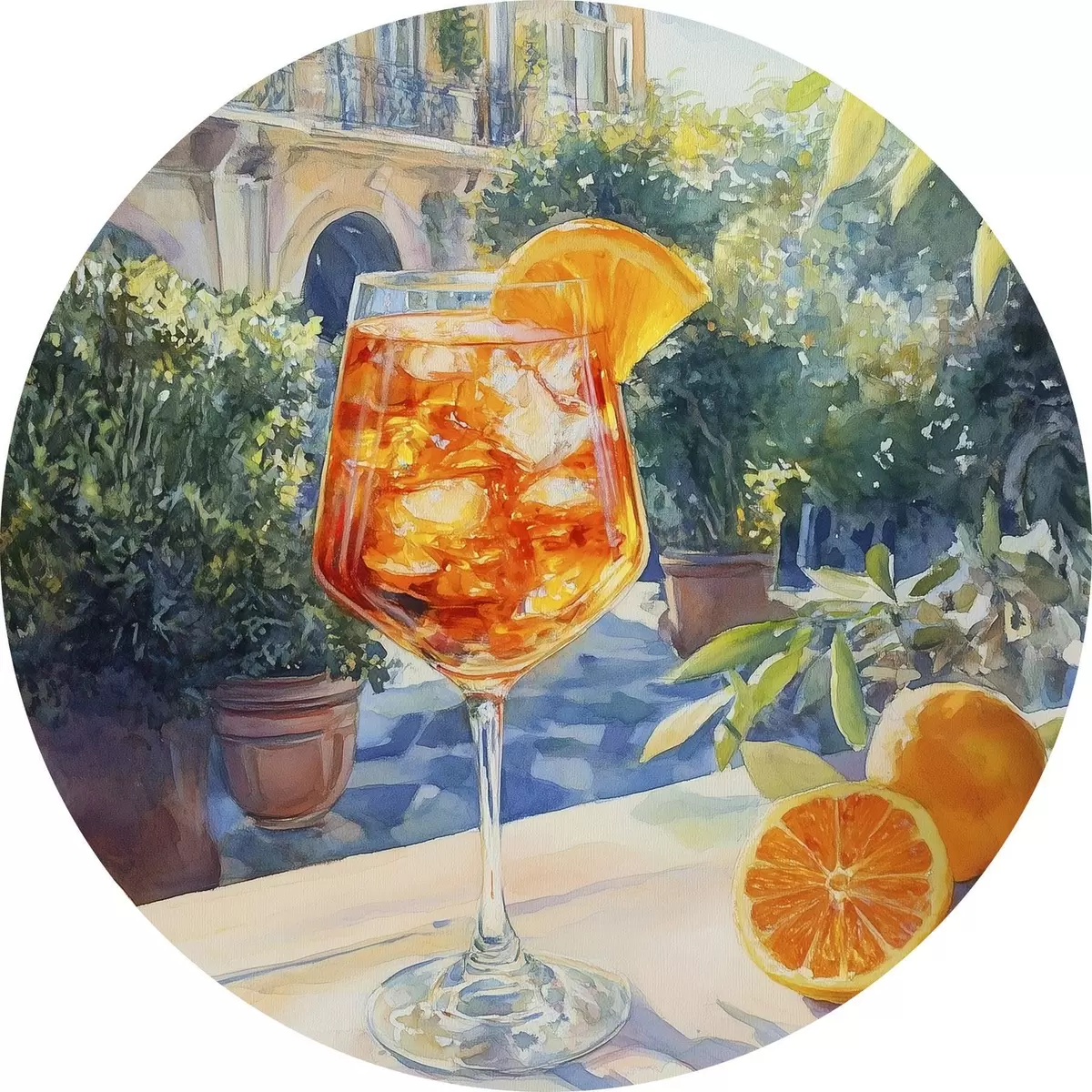 Nuotrauka Kokteilis su apelsinais, akvarelės stilius, Italija, Aperol Spritz, architektūra, vasaros sodas Nr r43061