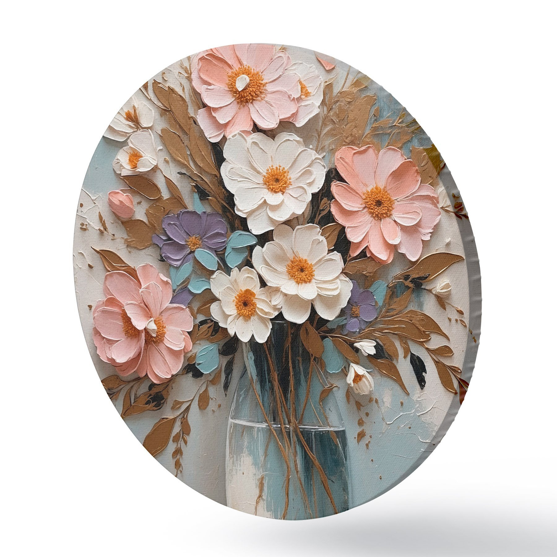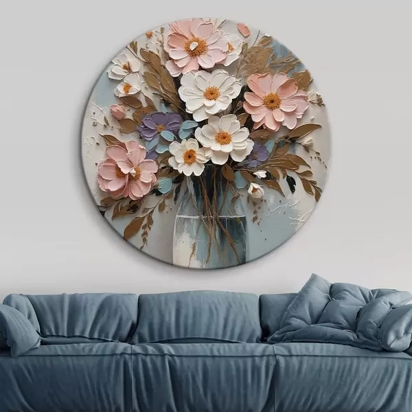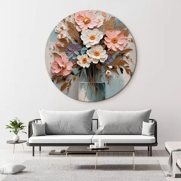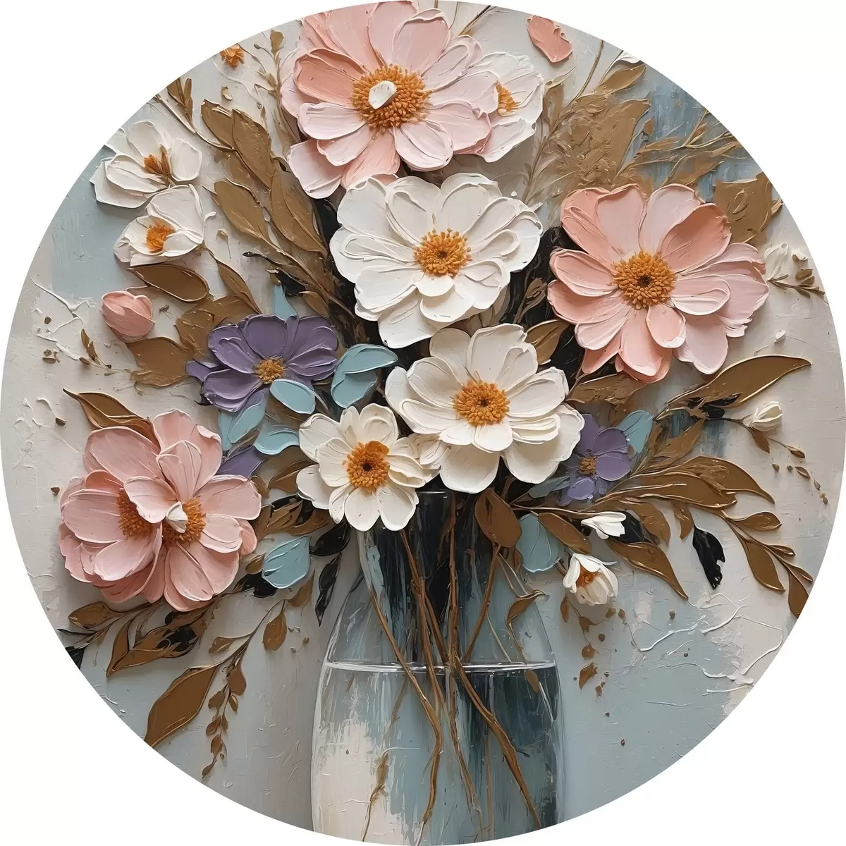 Nuotrauka Rožinės ir baltos gėlės skaidrioje vazoje Nr r43089