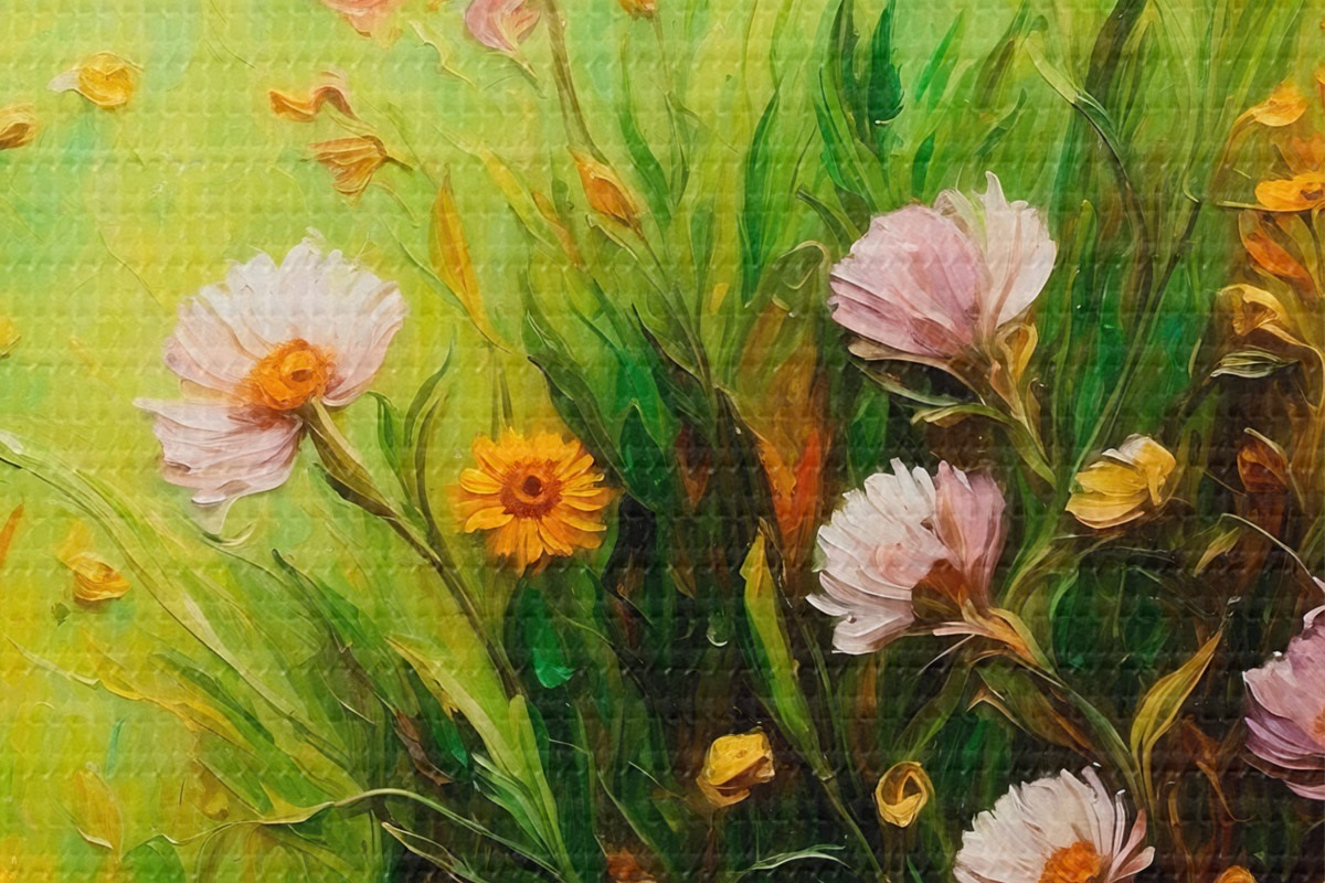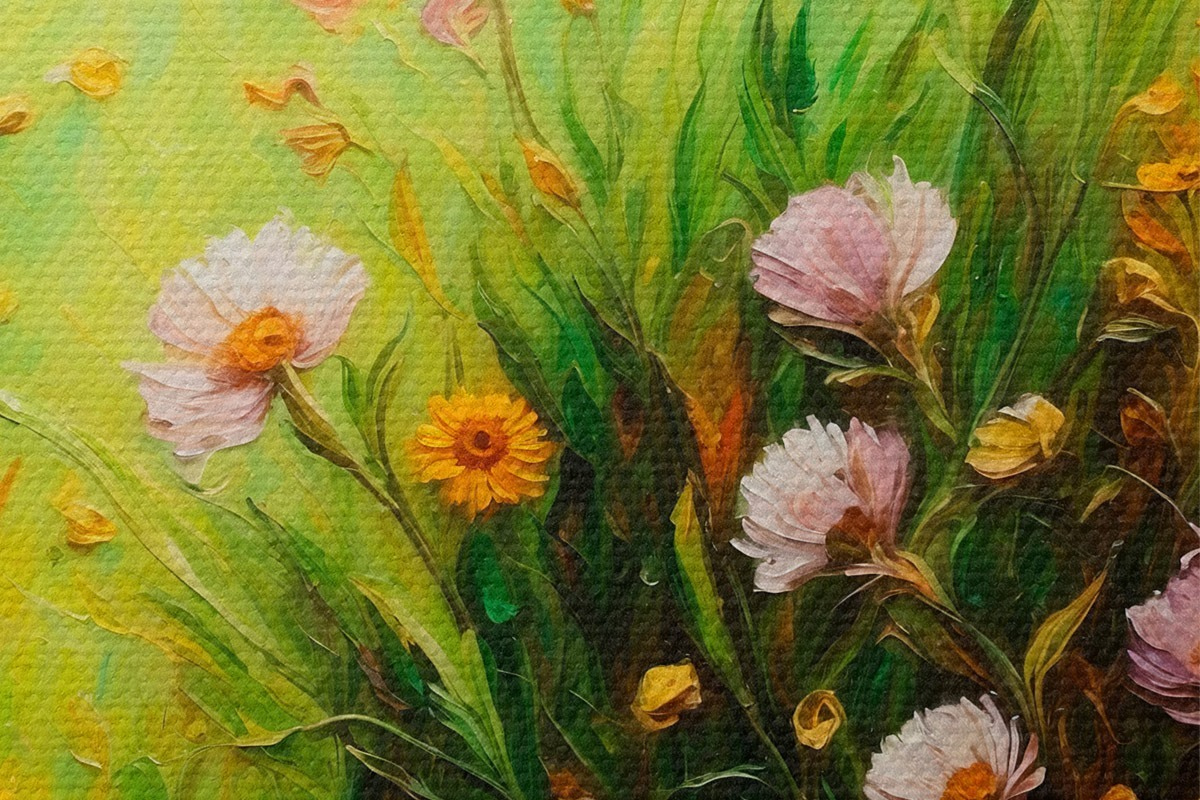 Nuotrauka Gėlių laukas abstrakčiame žaliame fone Nr r43101