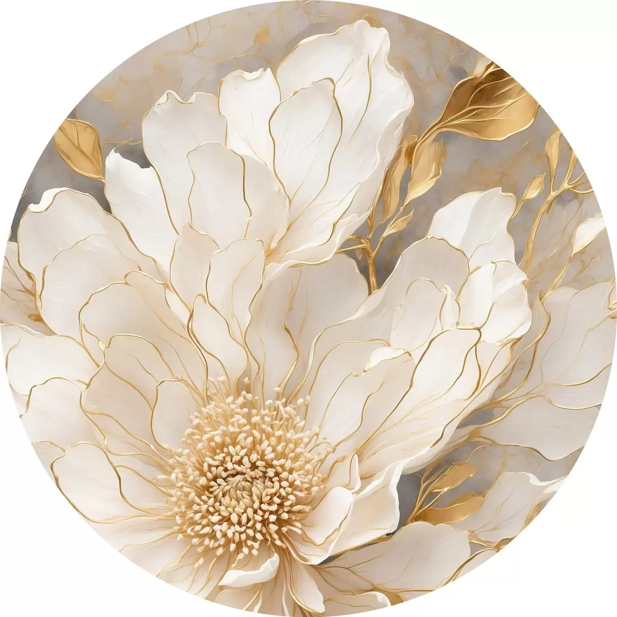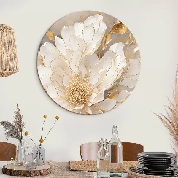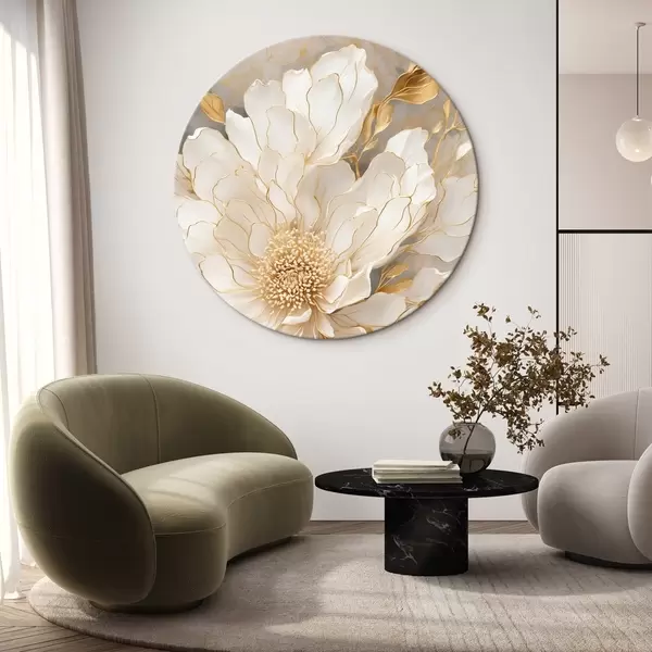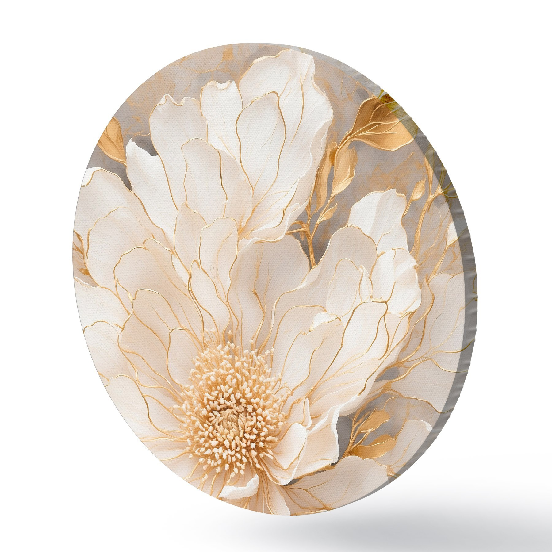 Apvalūs paveikslai Balta gėlė su lapais akrilo tapybos stiliumi r43115