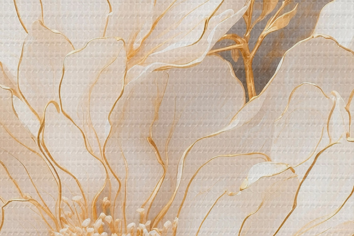 Nuotrauka Balta gėlė su lapais akrilo tapybos stiliumi Nr r43115