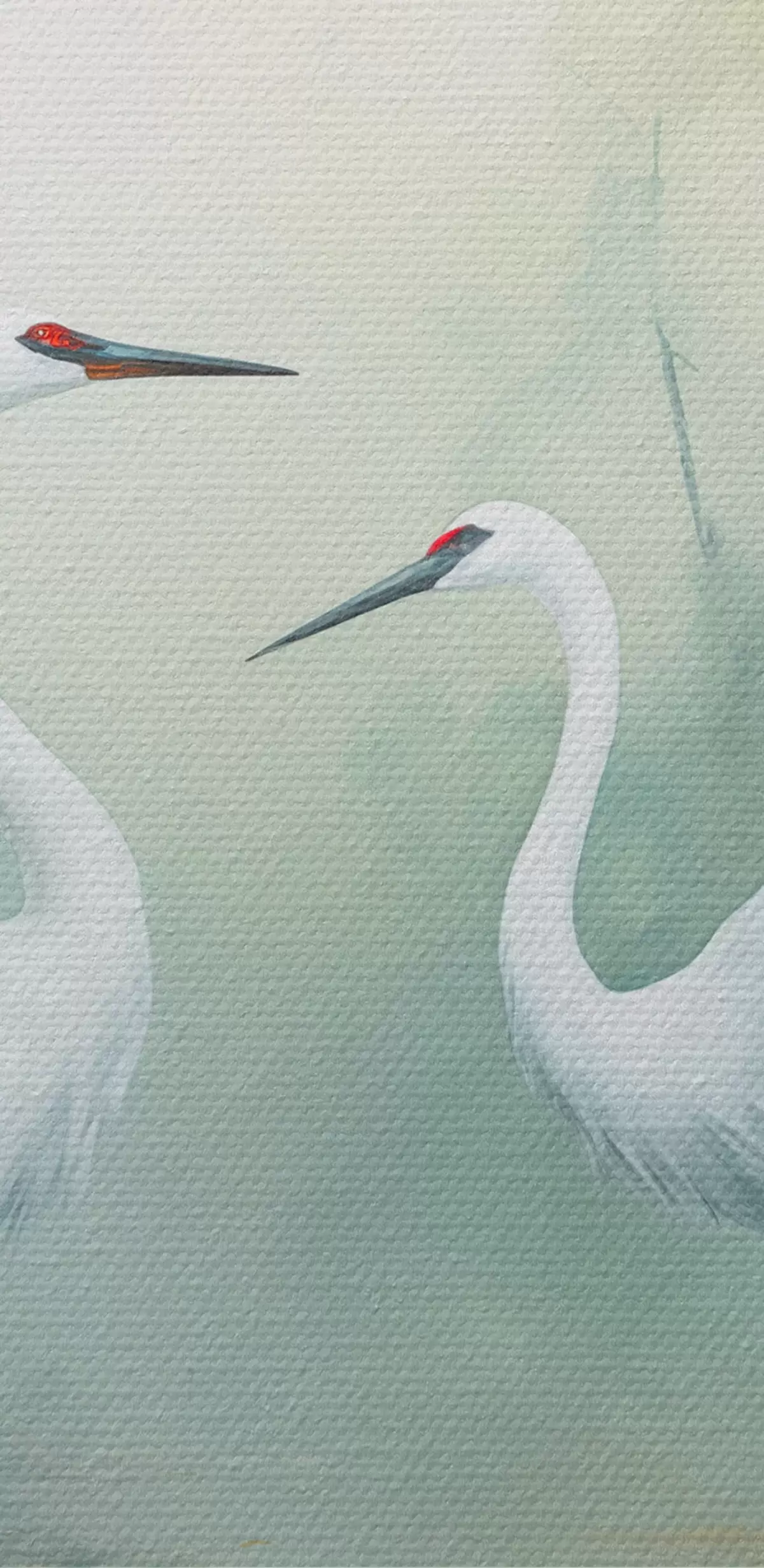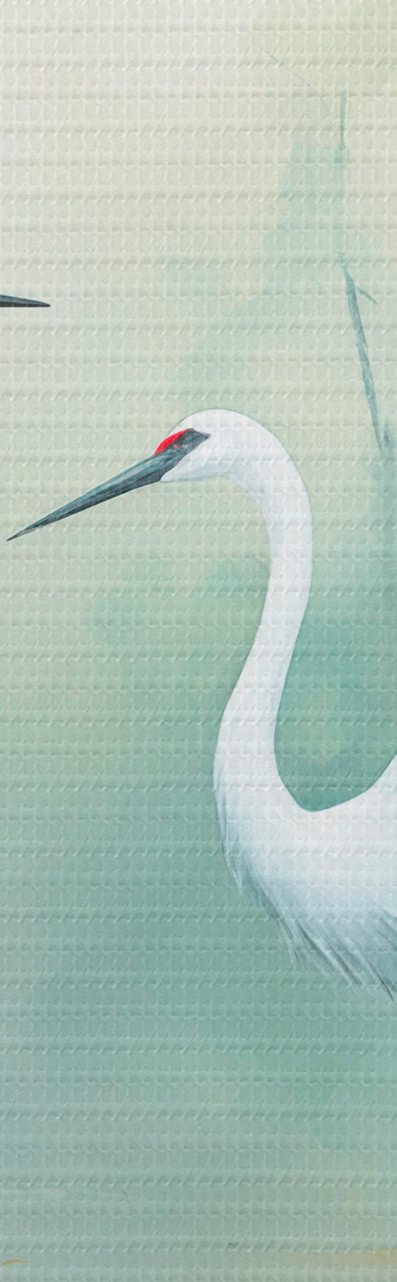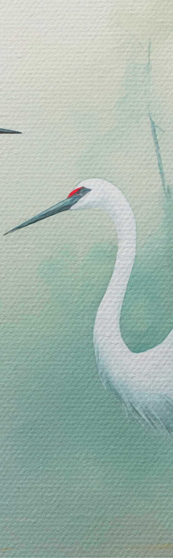 Nuotrauka Tvenkinyje stovinčios dvi baltos gervės, apsuptos sodraus žalio miško su švelniu, išsklaidytu apšvietimu Nr r43166