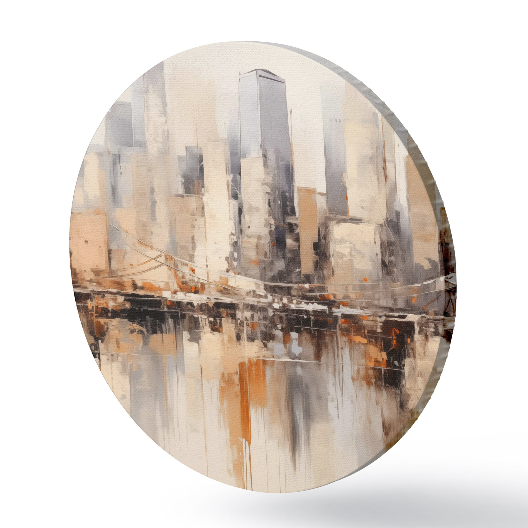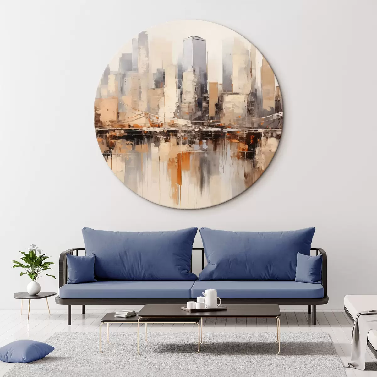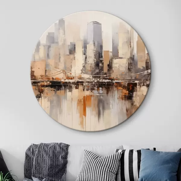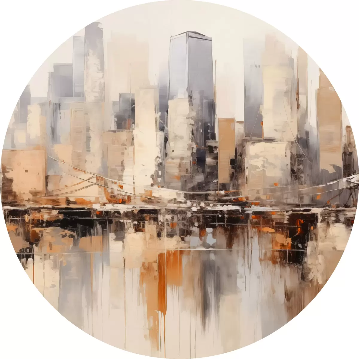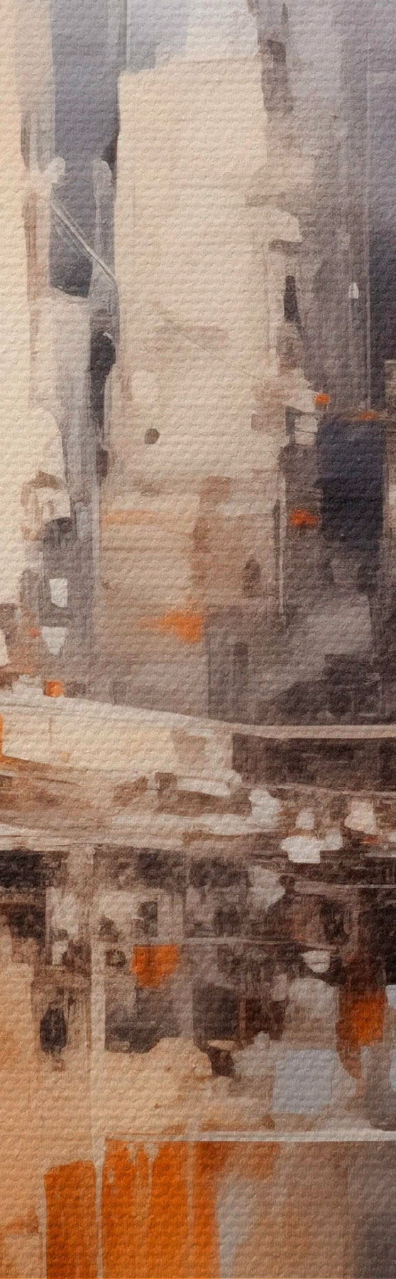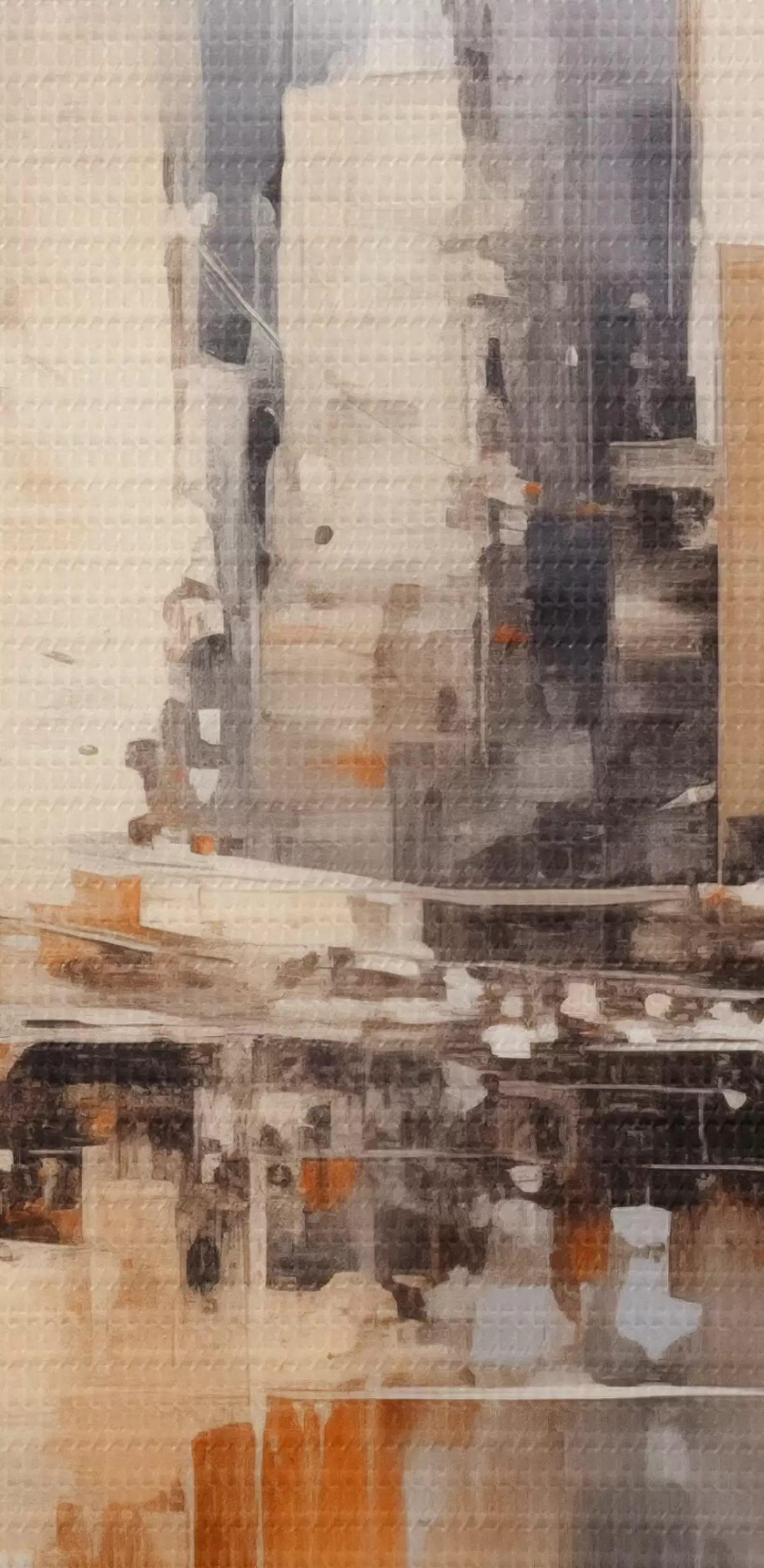 Nuotrauka Abstraktus miesto peizažas su aukštais rudos, pilkos ir baltos spalvos pastatais, atsispindinčiais vandenyje Nr r43168