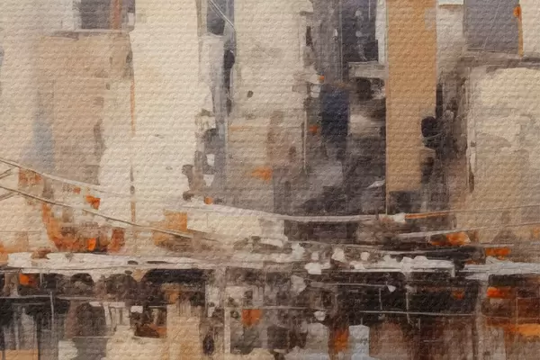 Nuotrauka Abstraktus miesto peizažas su aukštais rudos, pilkos ir baltos spalvos pastatais, atsispindinčiais vandenyje Nr r43168