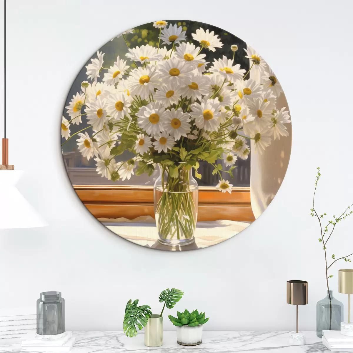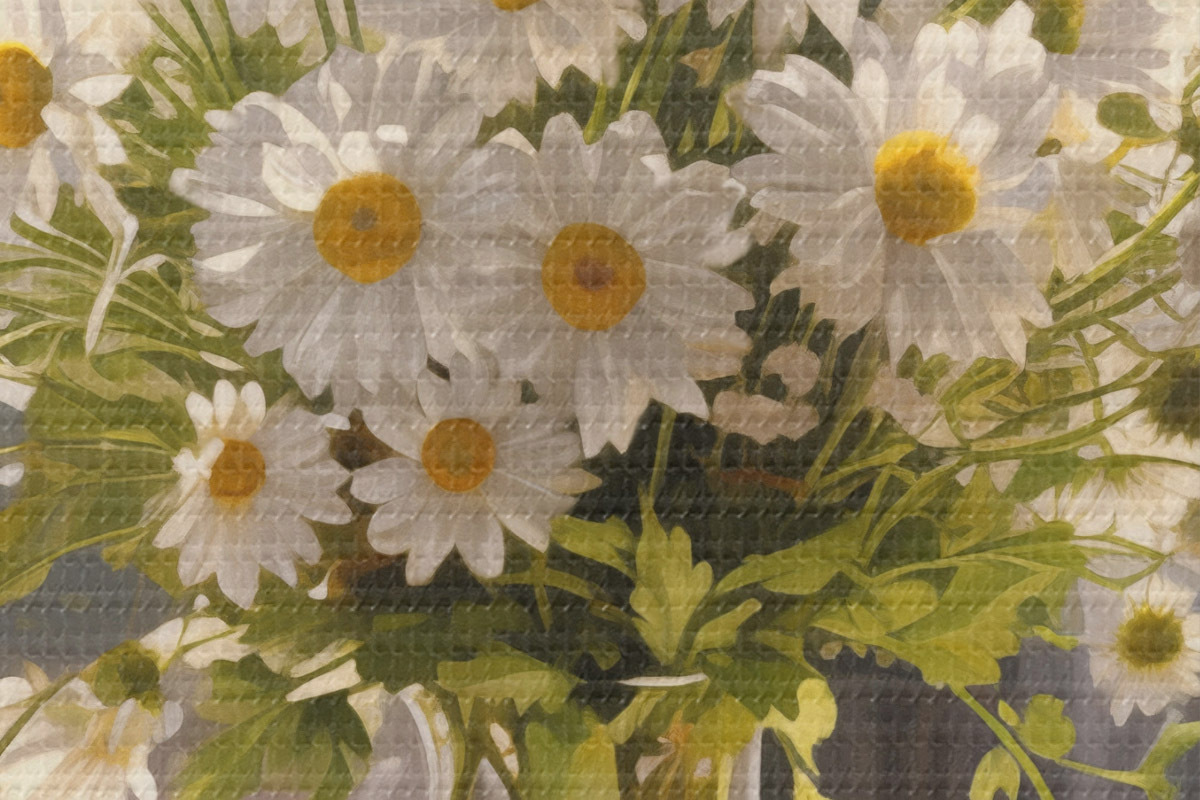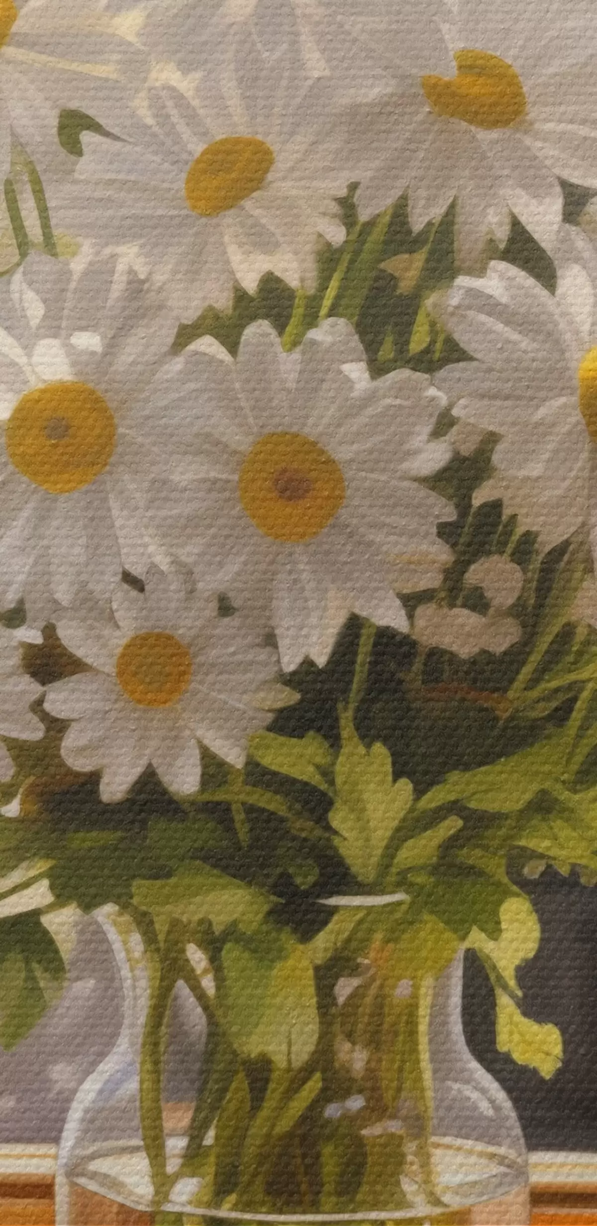 Nuotrauka Tapyba aliejiniais dažais imitacija vazos su baltais margučiais ant palangės, saulėtą dieną, šiltų spalvų paletė Nr r43171