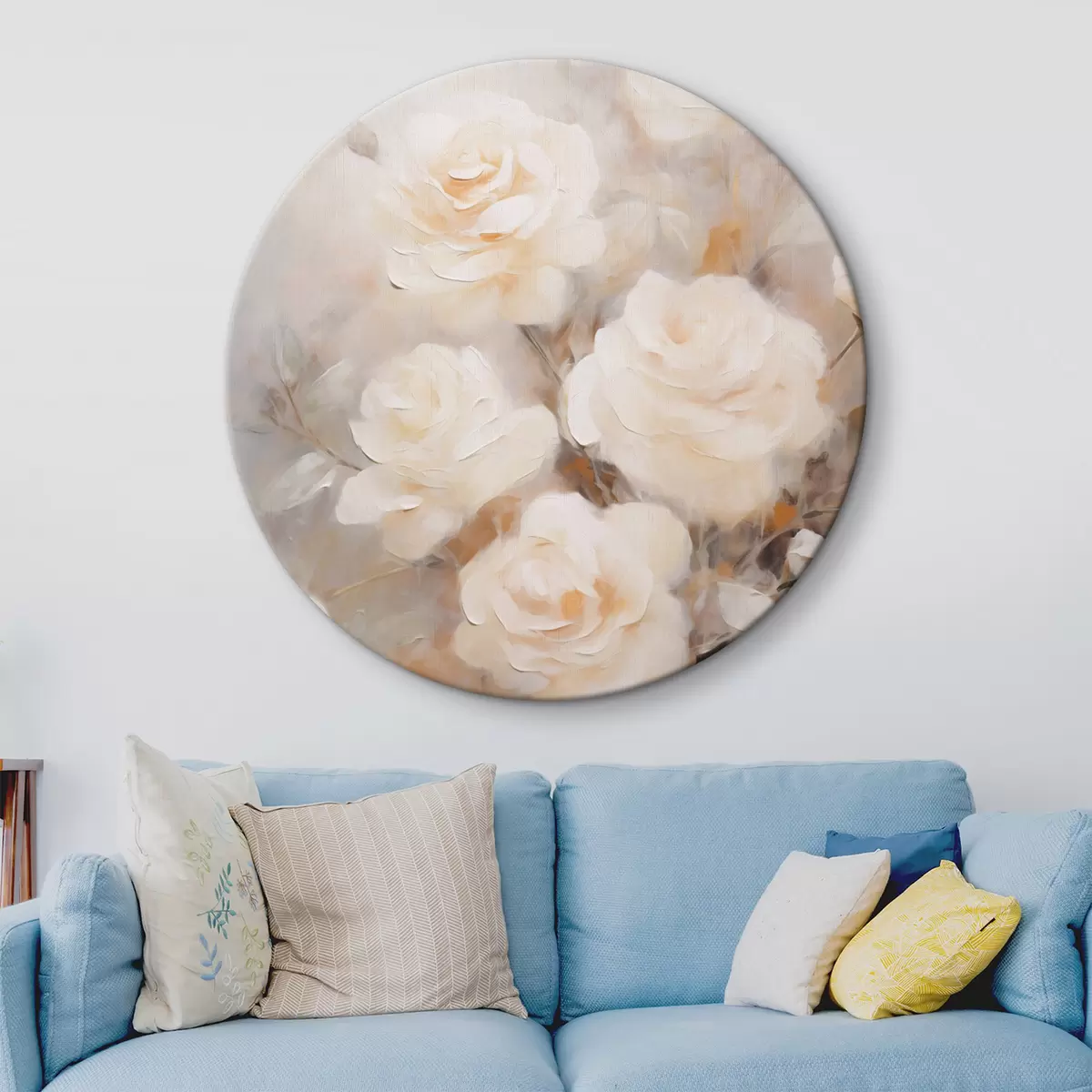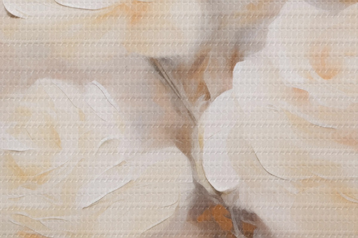 Nuotrauka Baltos rožės su švelniais žiedlapiais, prislopintų spalvų ir neryškių formų fone, sukuriančios svajingą efektą Nr r43177