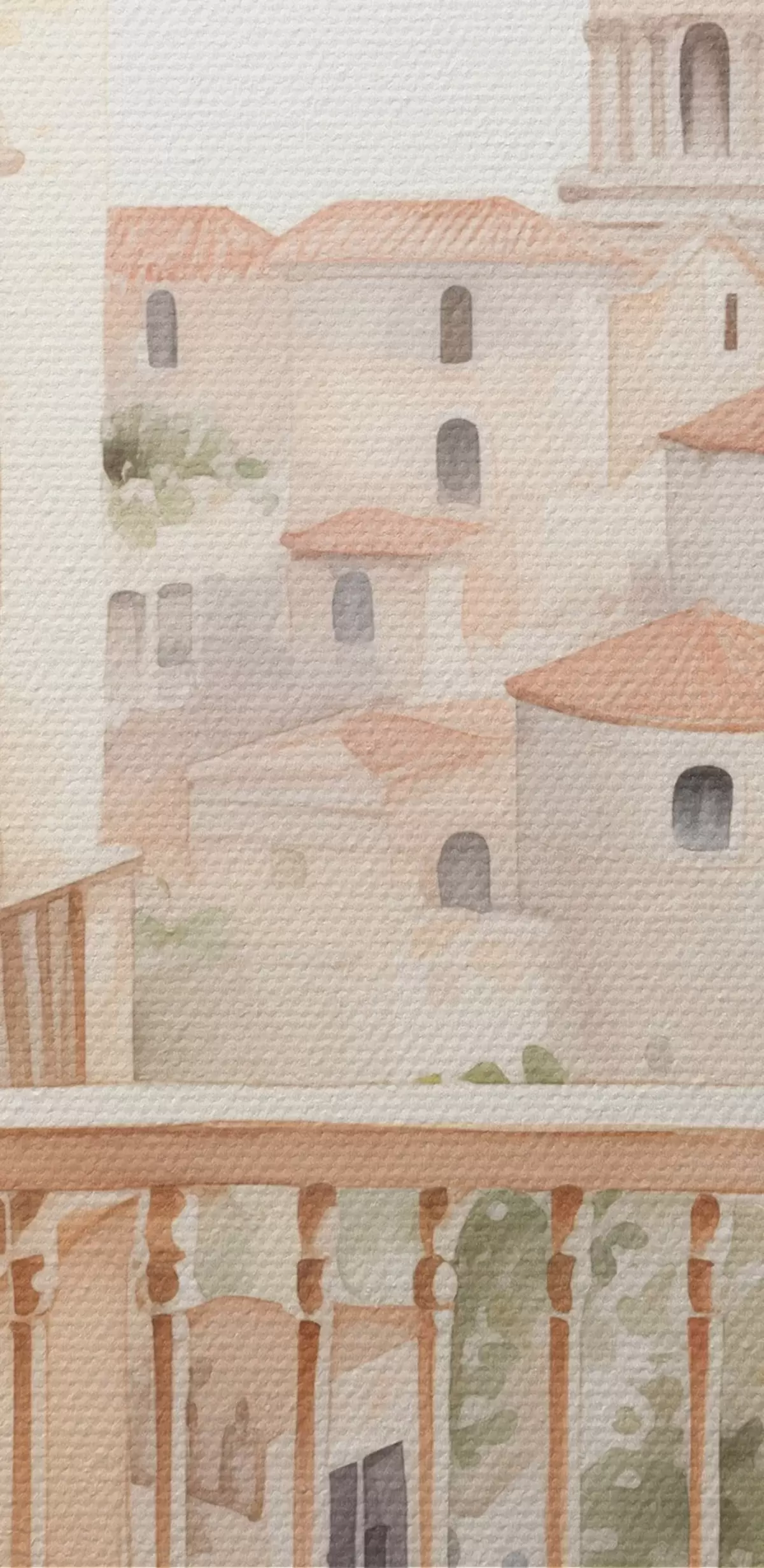 Nuotrauka Estetiškas vasaros balkonas, Ispanija, senoji architektūra, akvarelė, akvarelės stilius Nr r43180