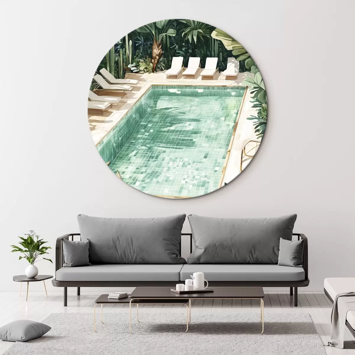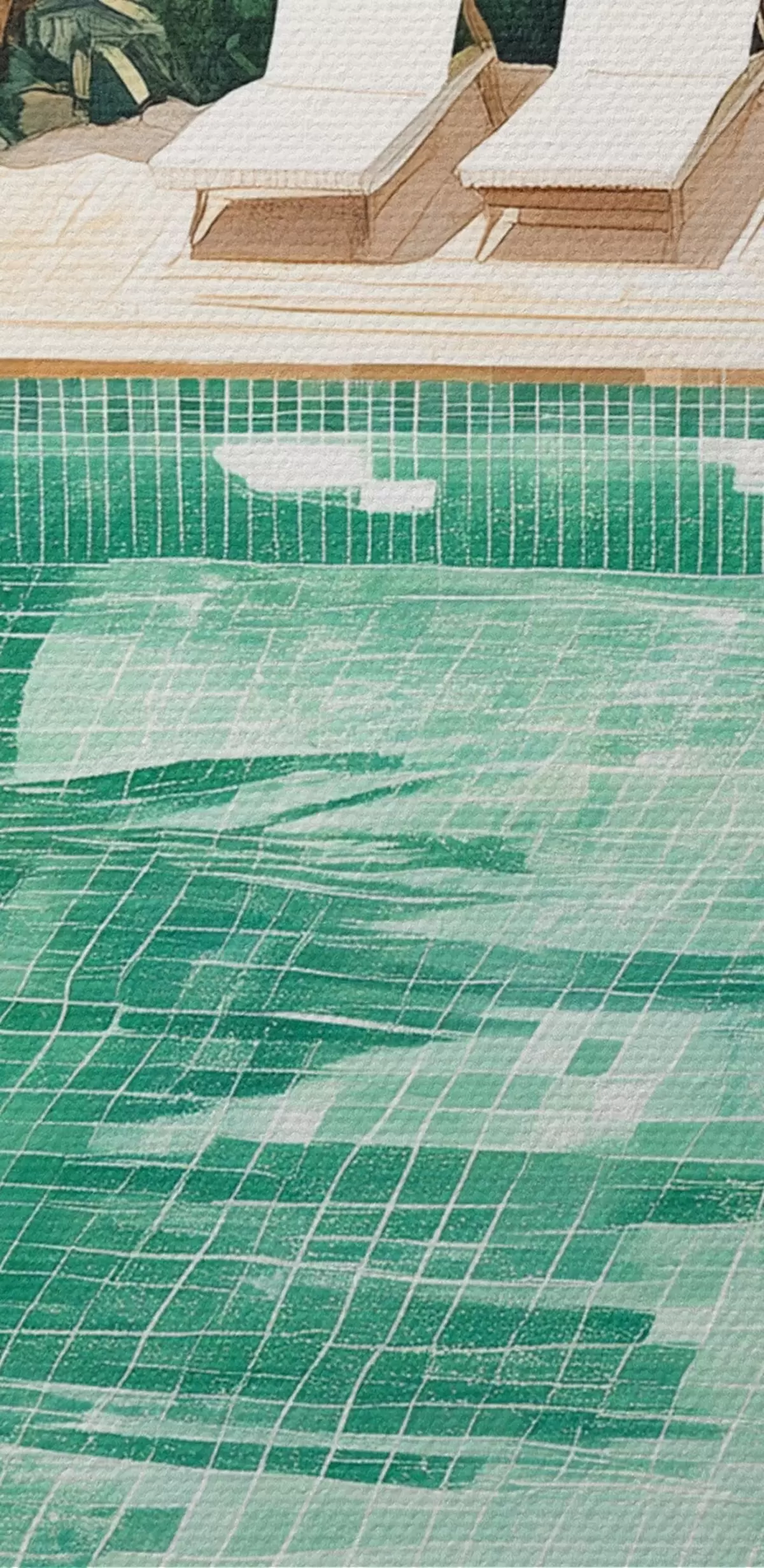 Nuotrauka Vasaros baseinas žaliame sode, vintažinis stilius, akvarelė Nr r43189