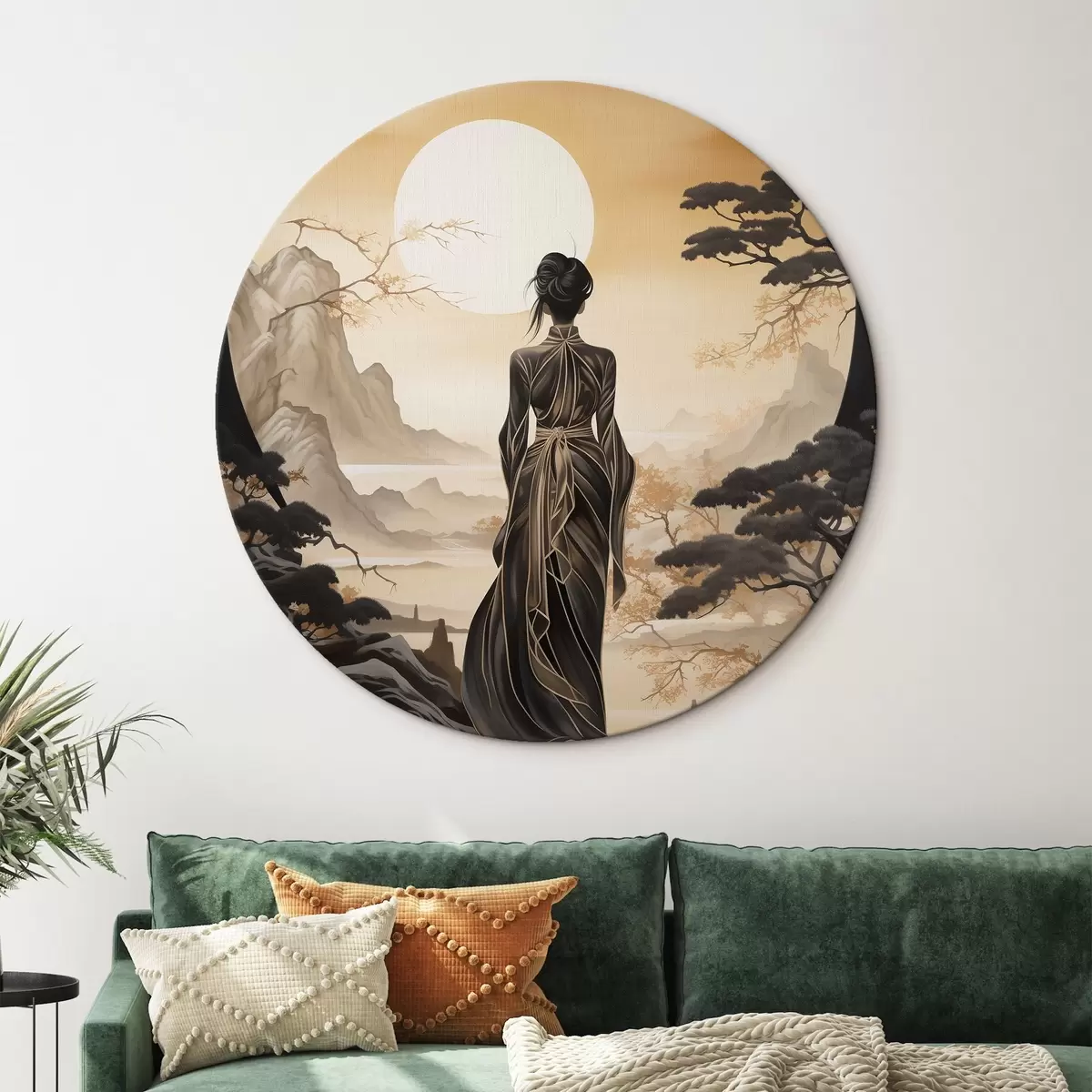 Nuotrauka Žmonės, Japonija, mergina saulėlydžio metu sakurų ir kalnų fone Nr r43256