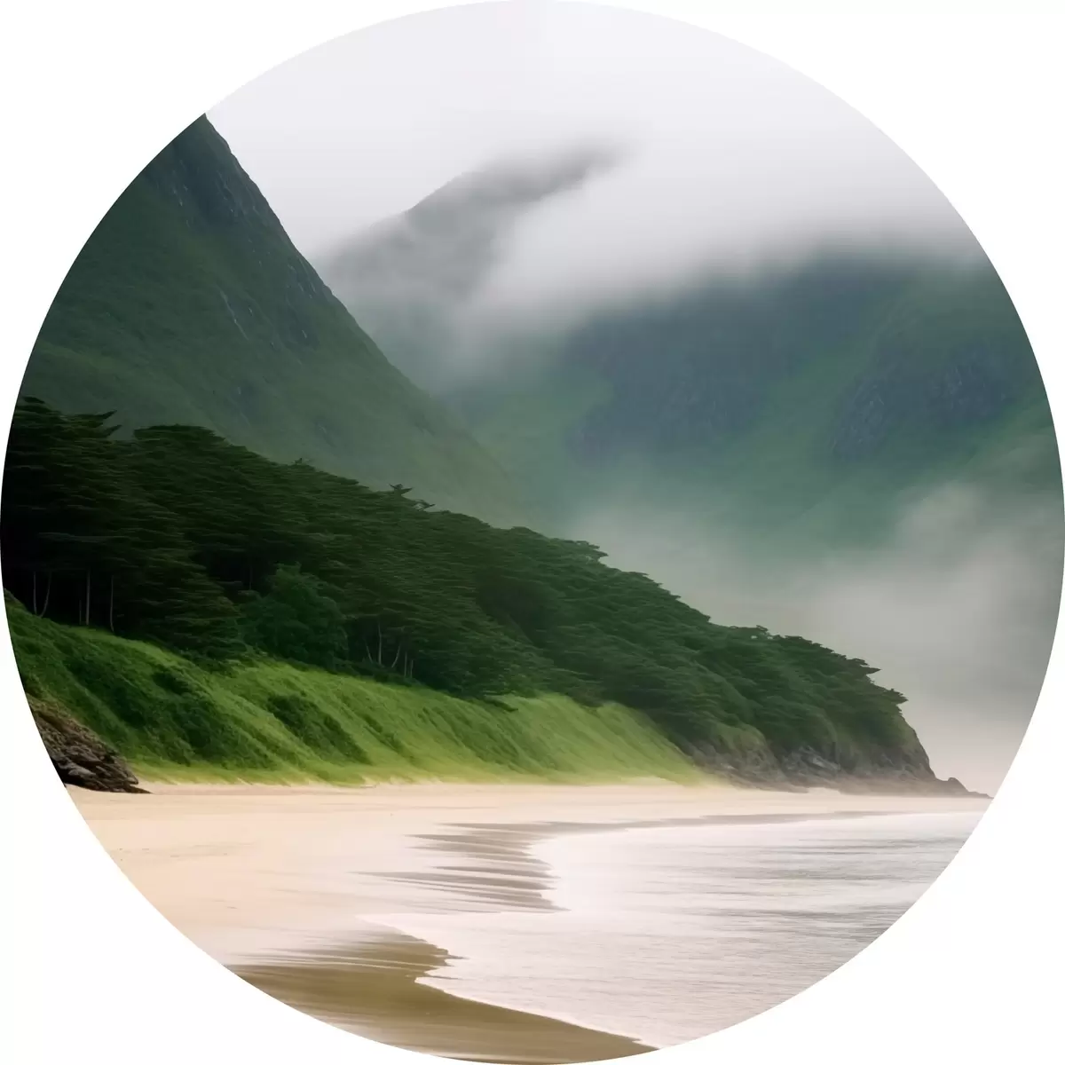 Nuotrauka Miglotas paplūdimys šalia žalių šlaitų Nr r43271