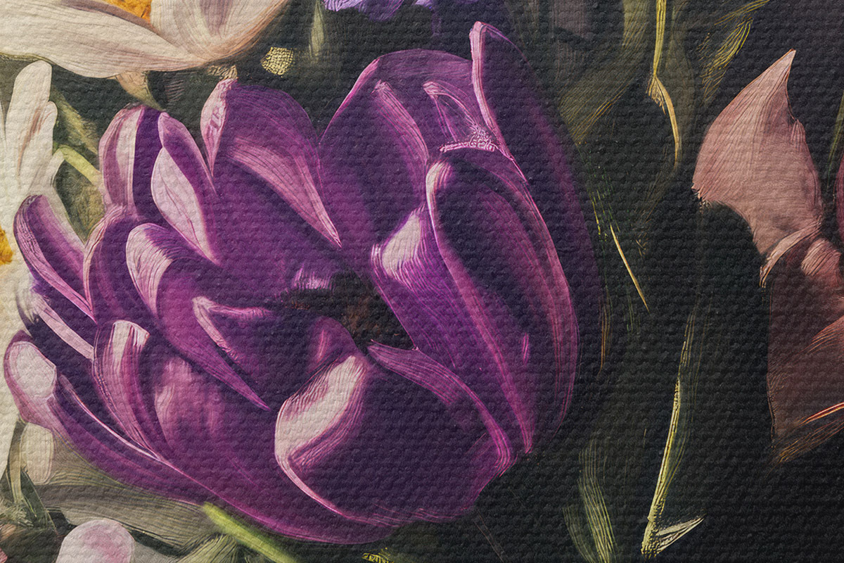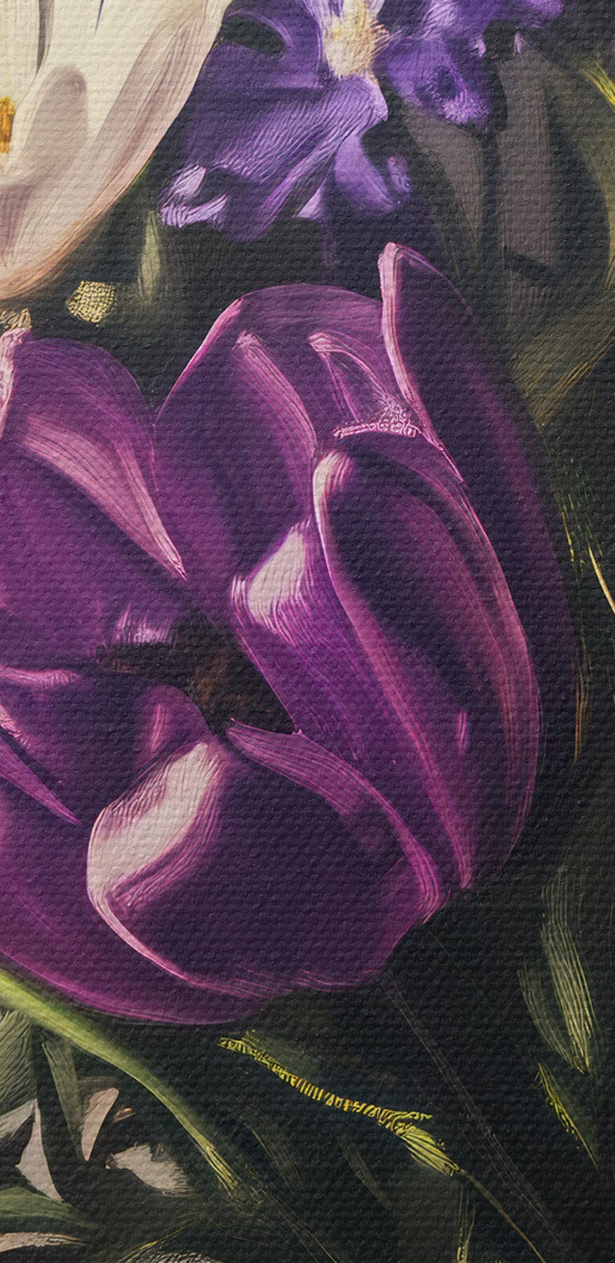 Galima užsakyti trijų rūšių medžiagą: "Economic Canvas" - tanki ir patvari medžiaga skaitmeninei spaudai, identiška dailininko drobės medžiagai, vandeniui atsparus paviršius, tikroviškas detalių atkūrimas, vidutinio grūdėtumo medžiaga. Premium Canvas - tekstūra primena dailininko drobę (susipynę smulkūs siūlai). Minkštas, detalus vaizdo atkūrimas ant matinio paviršiaus. Eco-Premium - aukštos kokybės 100 % medvilninis audinys. Dėl natūralių medvilnės pluoštų medžiaga yra patvari ir atspari nusidėvėjimui. Puikus spalvų atkūrimas ir detalumas.