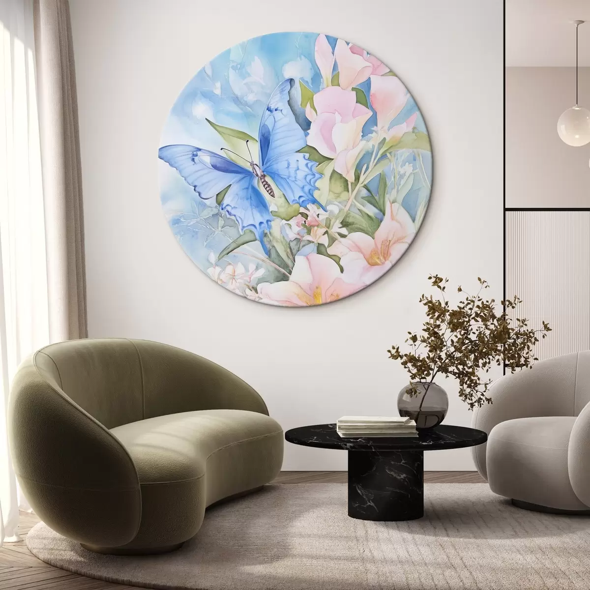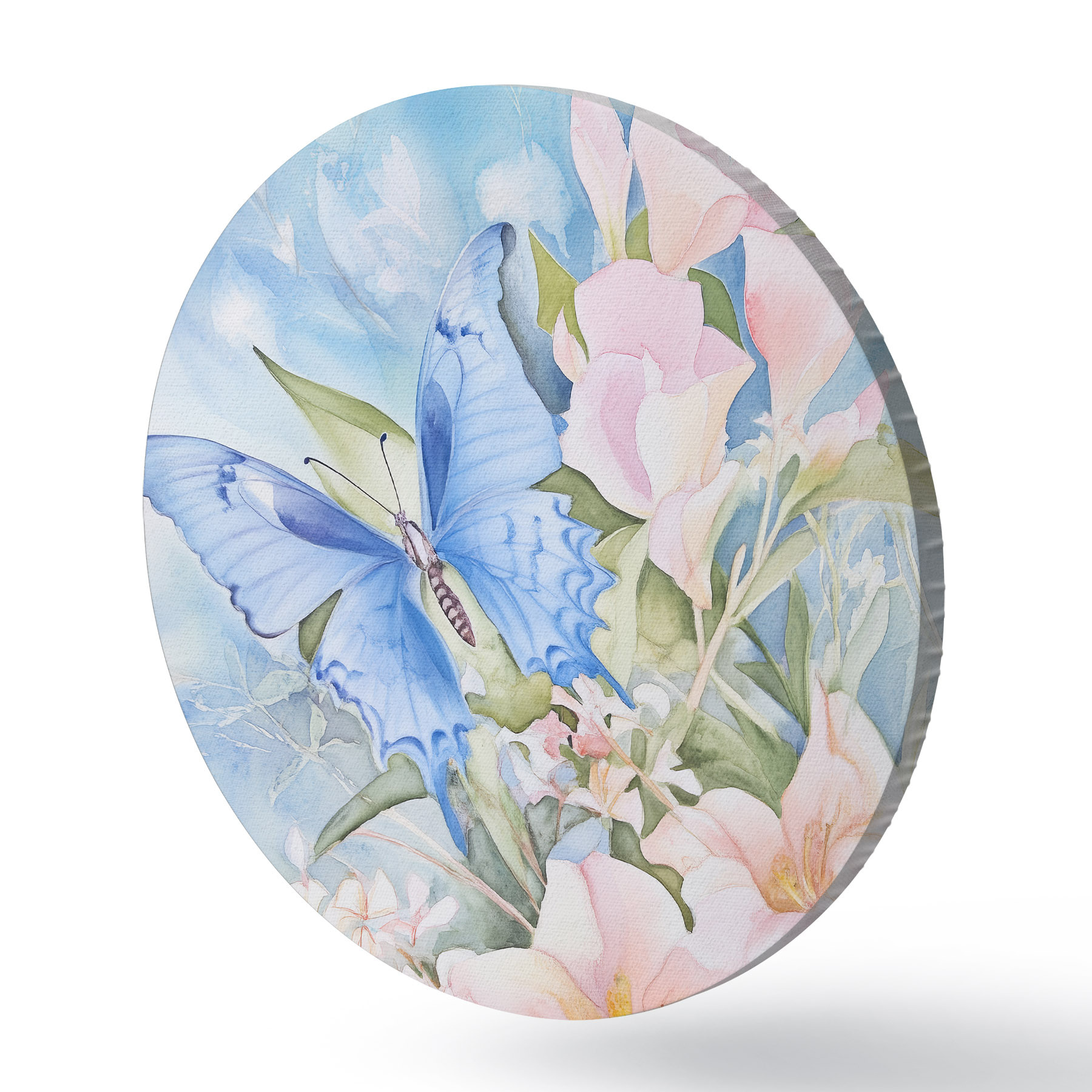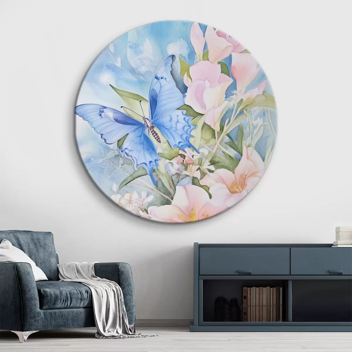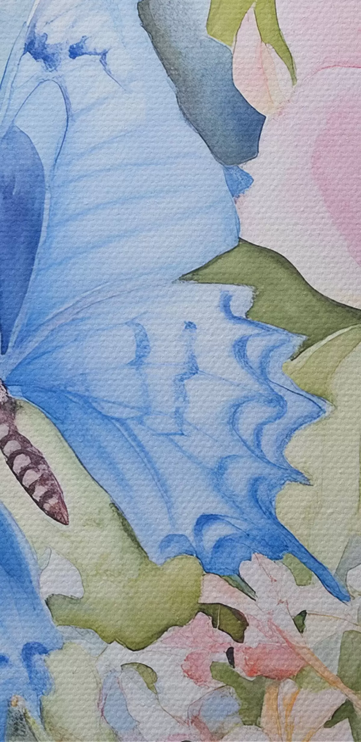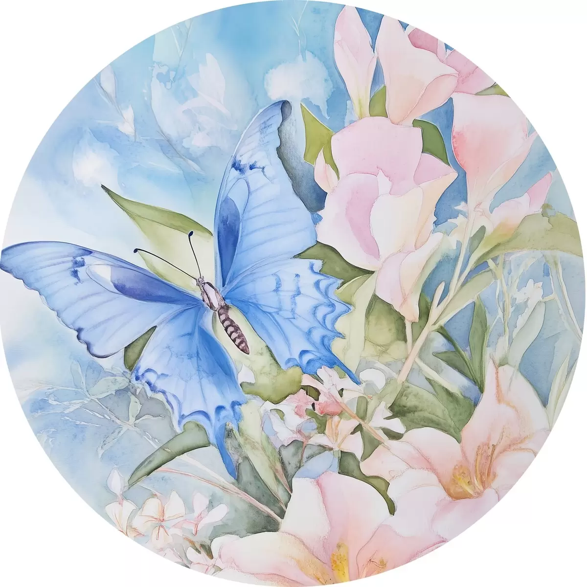 Nuotrauka Mėlynas drugelis ir rožinės gėlės Nr r43296