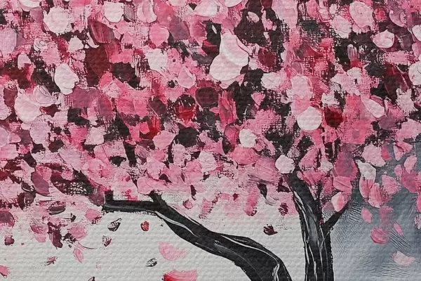 Nuotrauka Rožinis žydintis medis pilkame fone Nr r43299