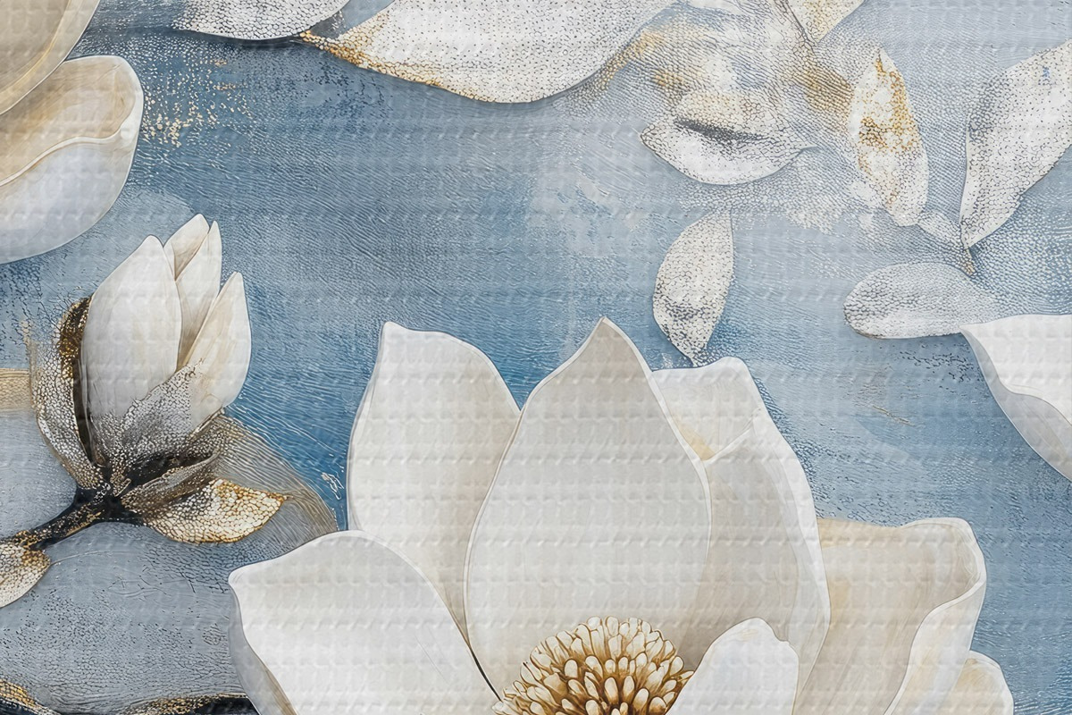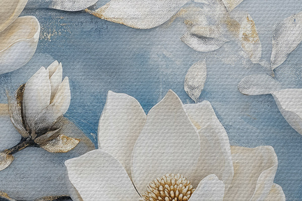 Nuotrauka Magnolijos šaka abstrakčiame mėlynai geltoname fone Nr r43323
