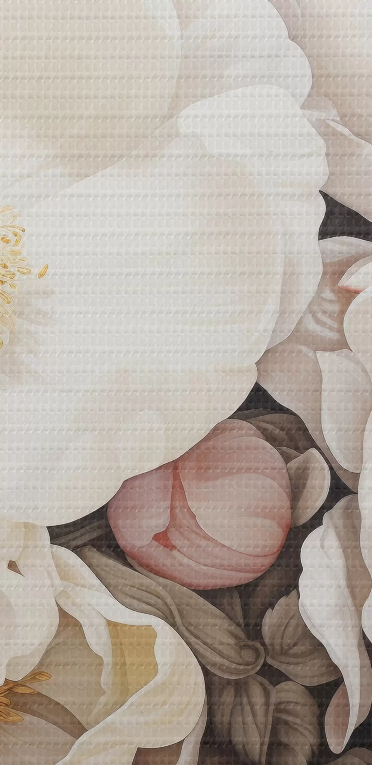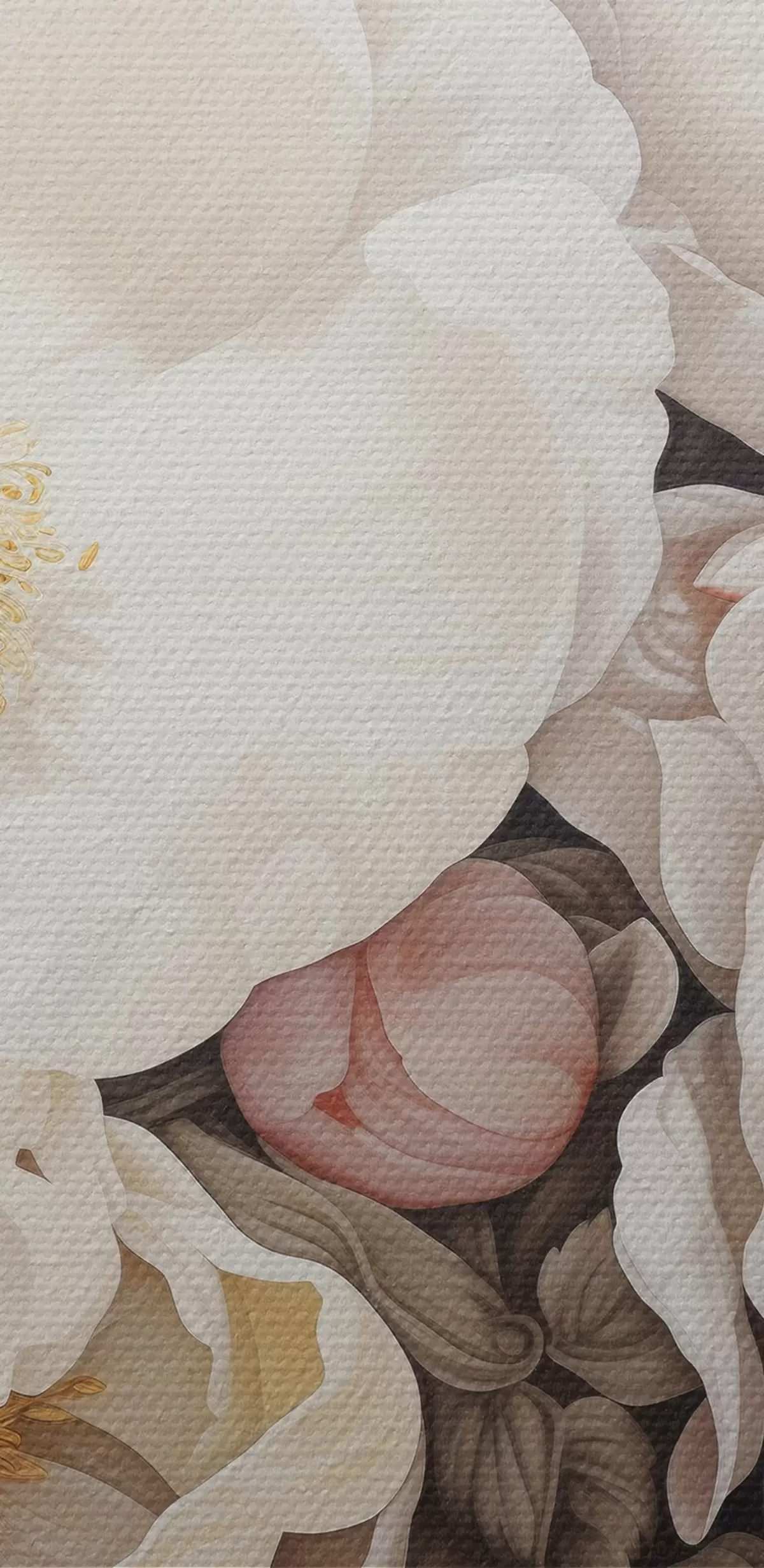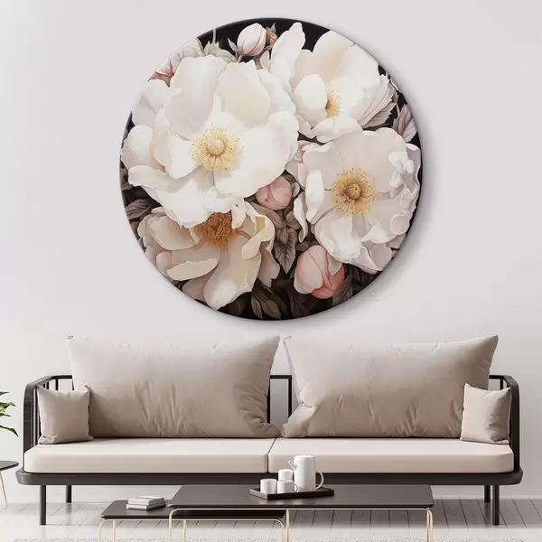 Nuotrauka Baltos bijūnų gėlės tamsiame fone akrilo tapybos stiliumi Nr r43379