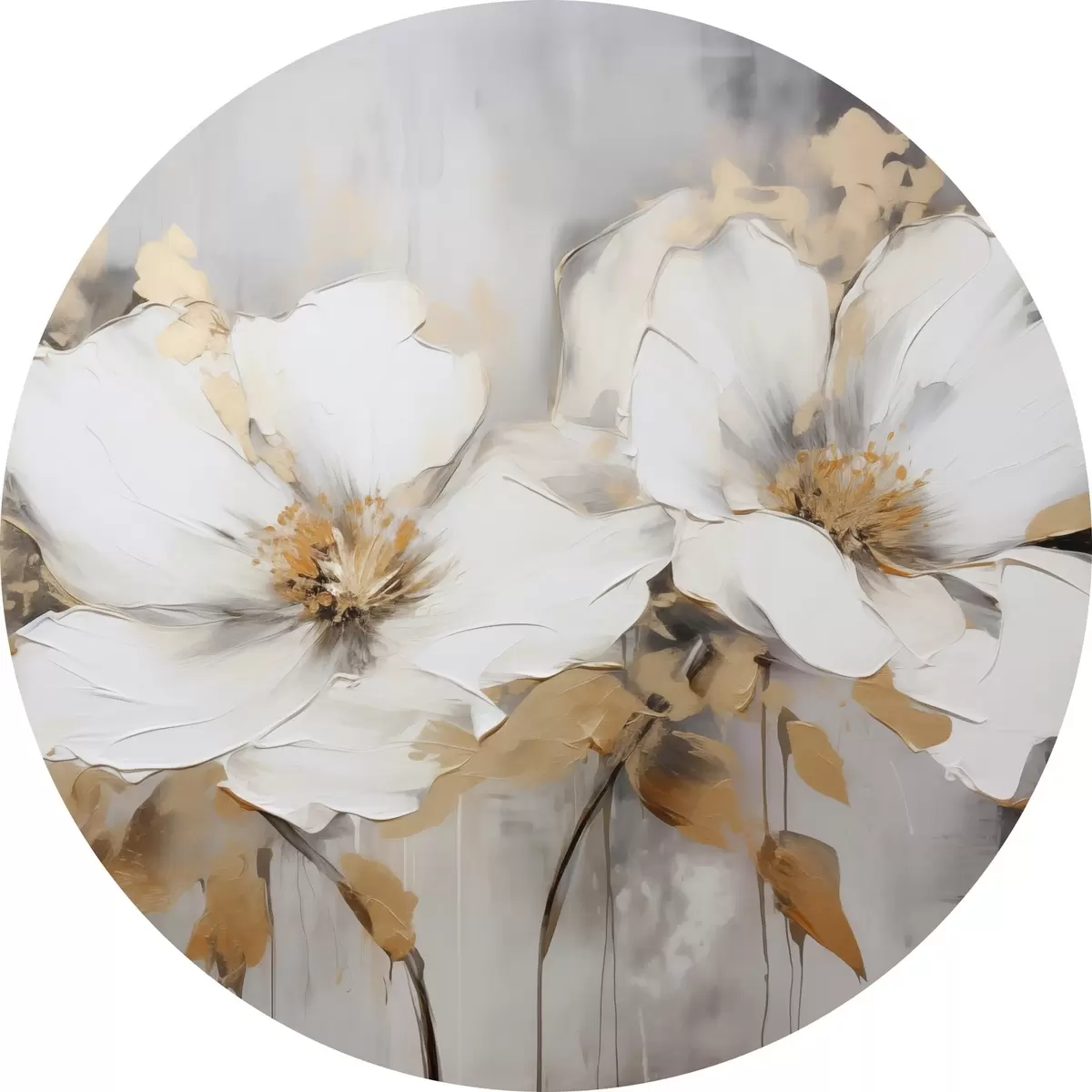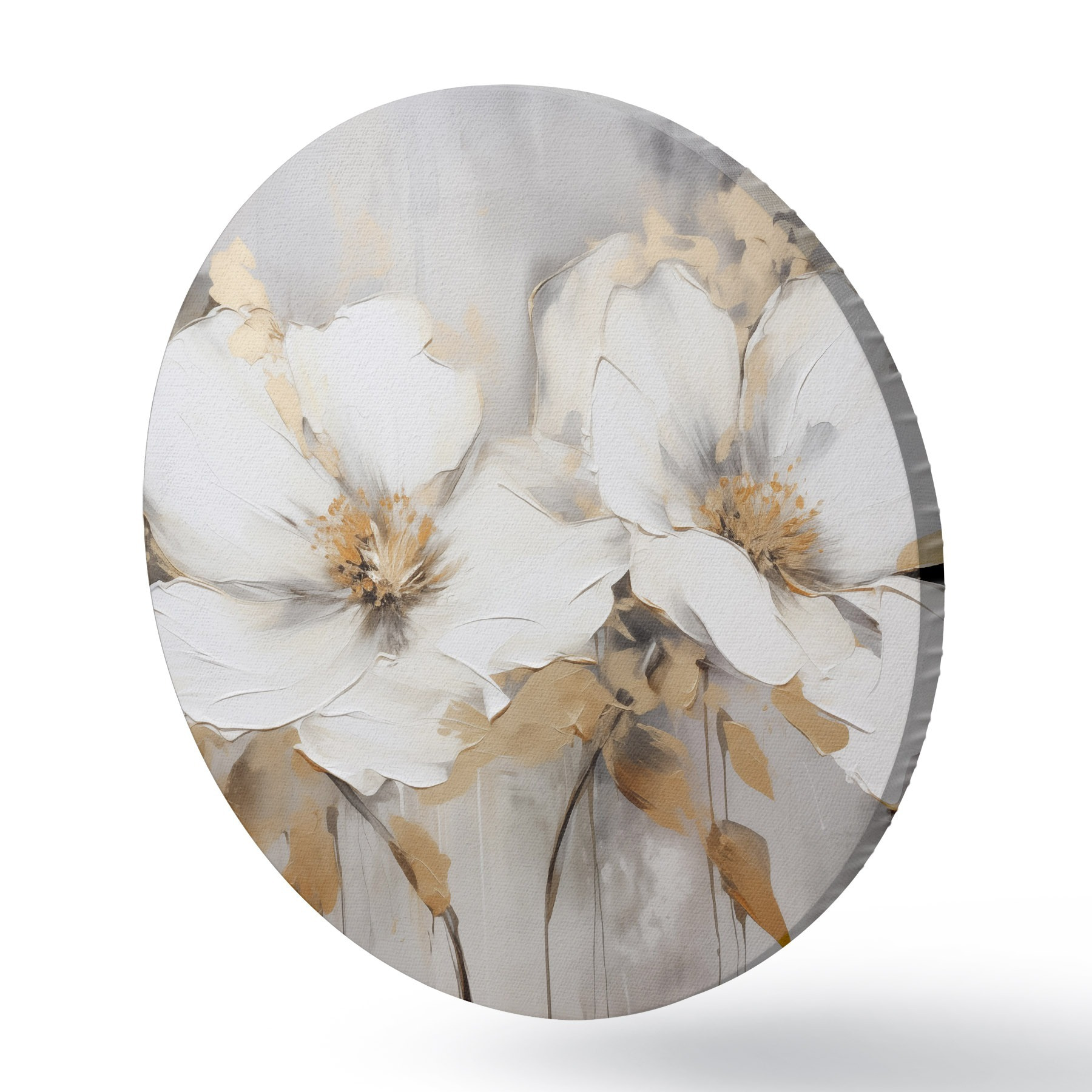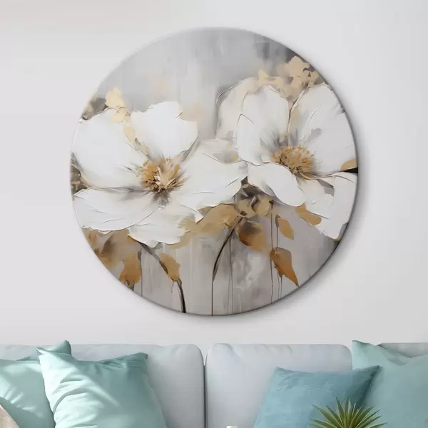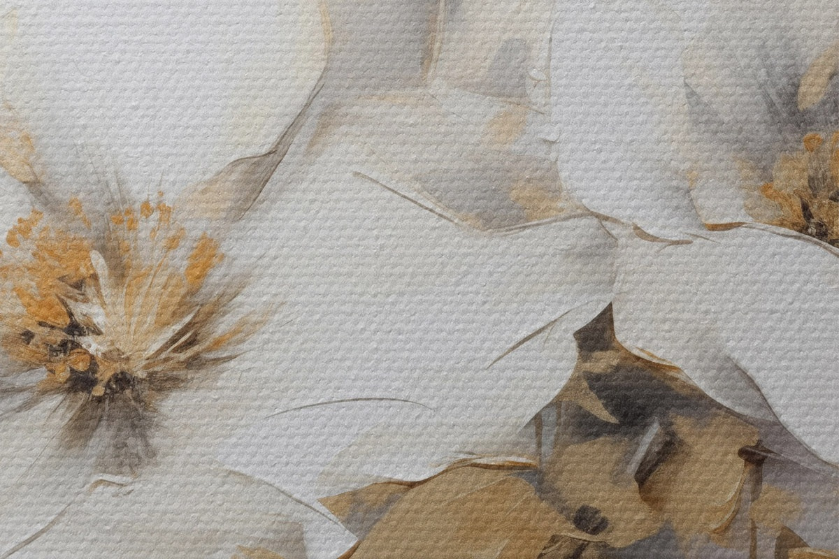Nuotrauka Baltos gėlės su geltonais lapais baltame fone, storų potėpių imitacija, tekstūruotas modernus stilius Nr r43389