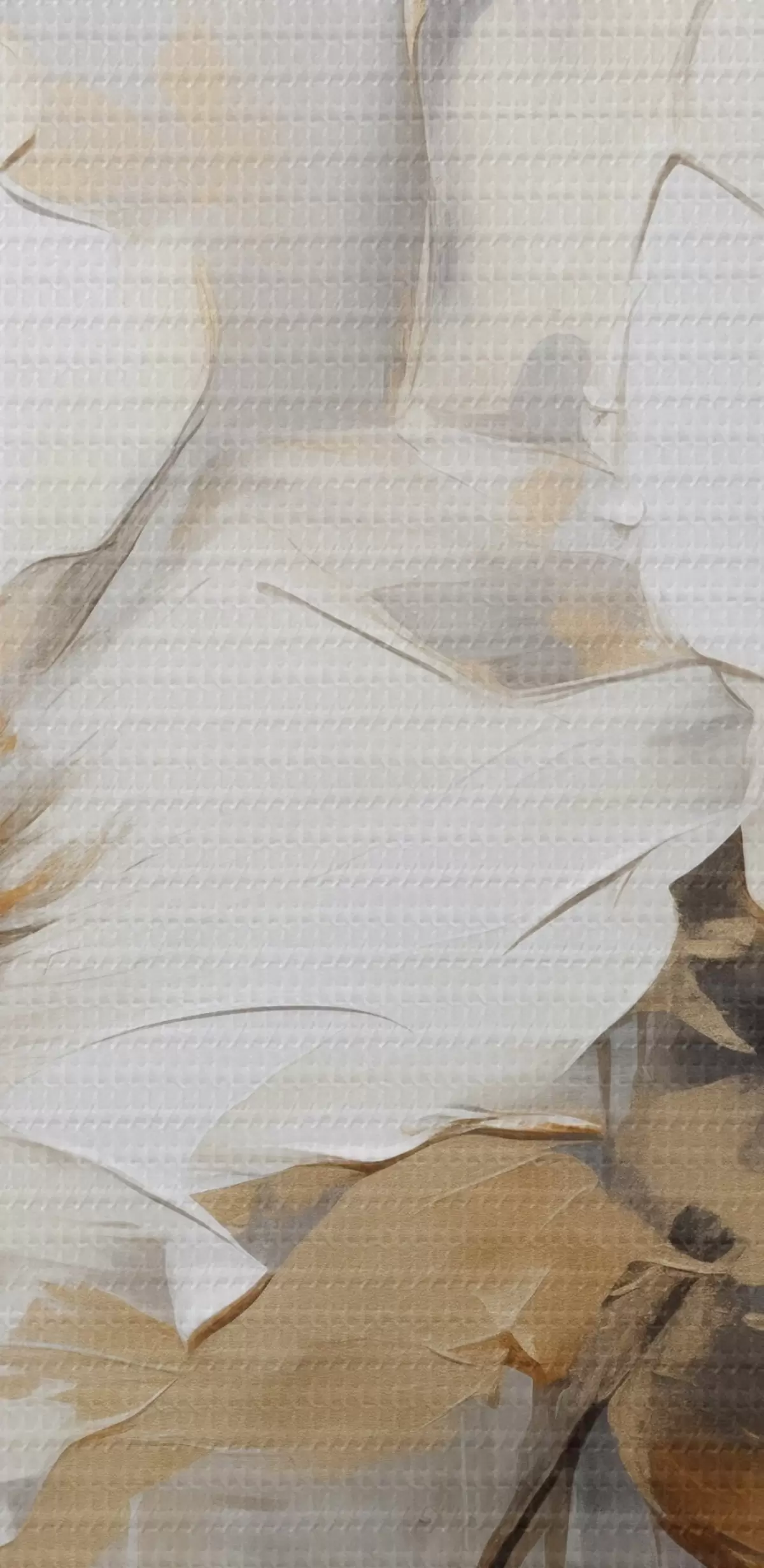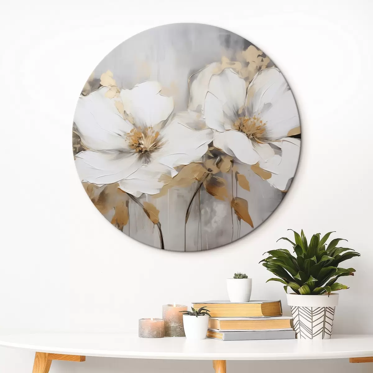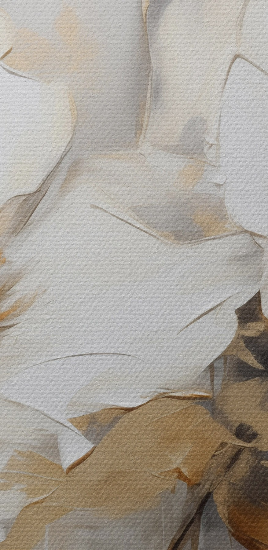 Nuotrauka Baltos gėlės su geltonais lapais baltame fone, storų potėpių imitacija, tekstūruotas modernus stilius Nr r43389