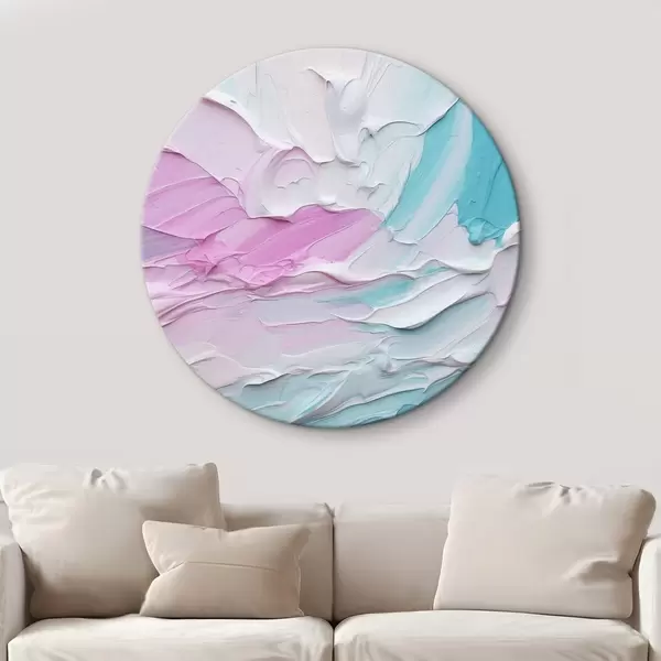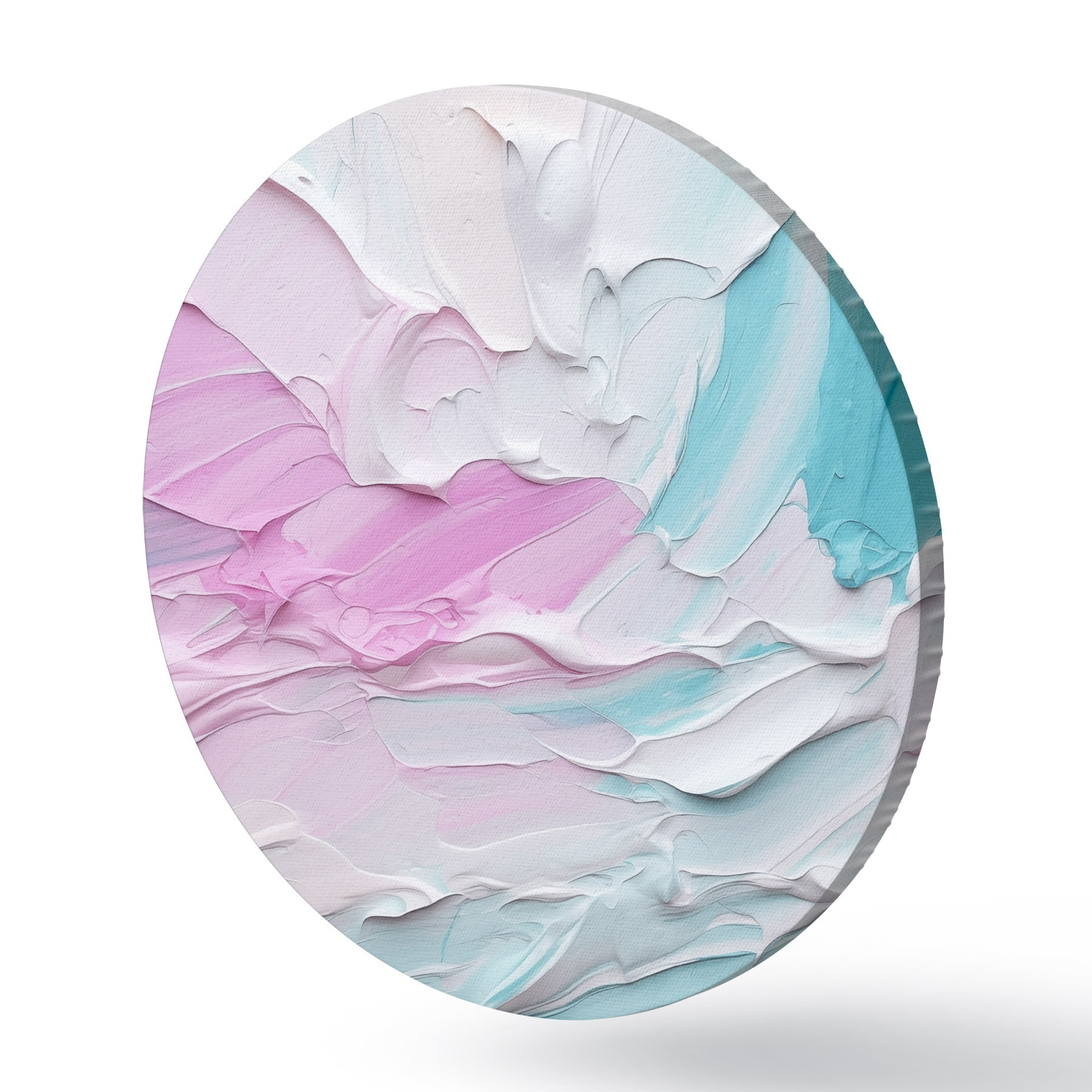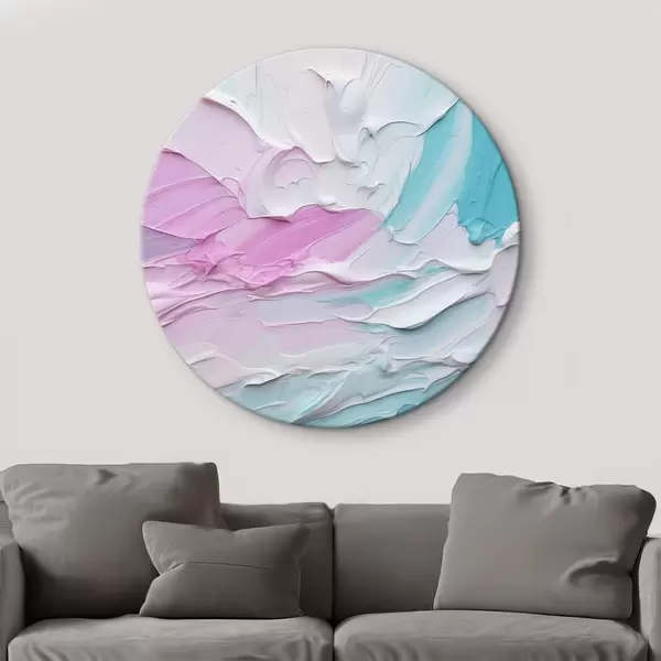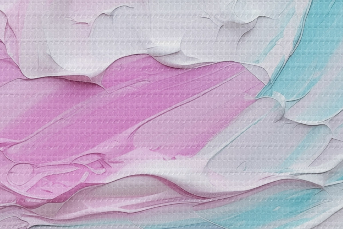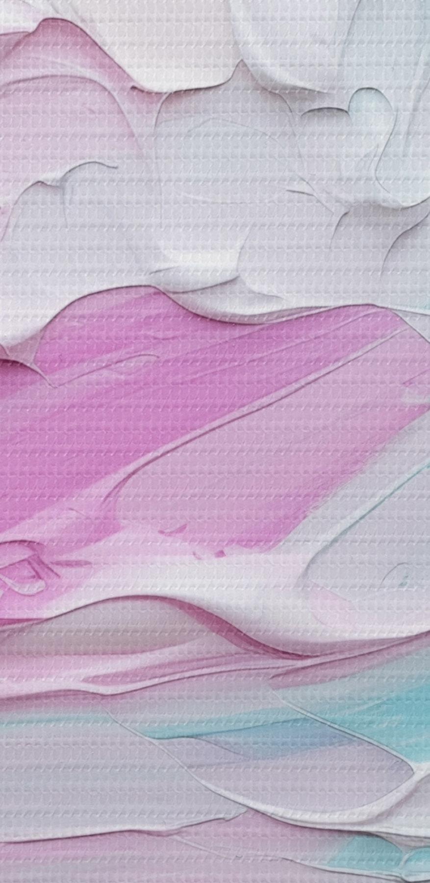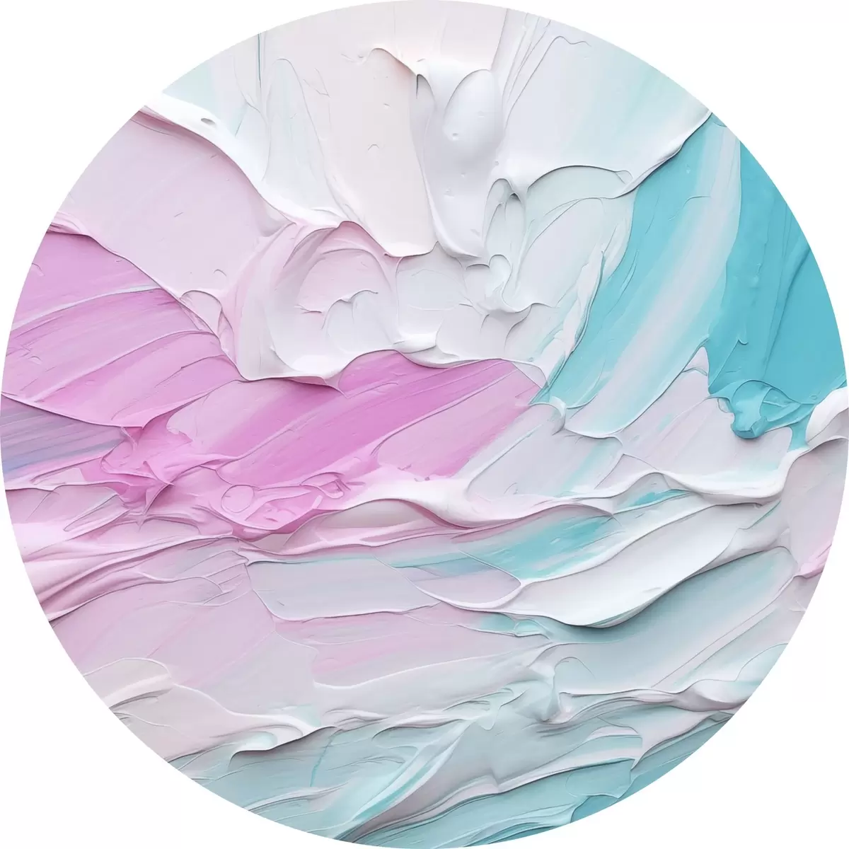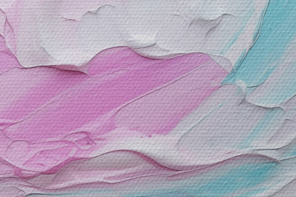 Nuotrauka Abstrakti aliejinės tapybos imitacija su storais rausvų, baltų ir turkio spalvos dažų potėpiais, sukuriančiais tekstūros efektą Nr r43393