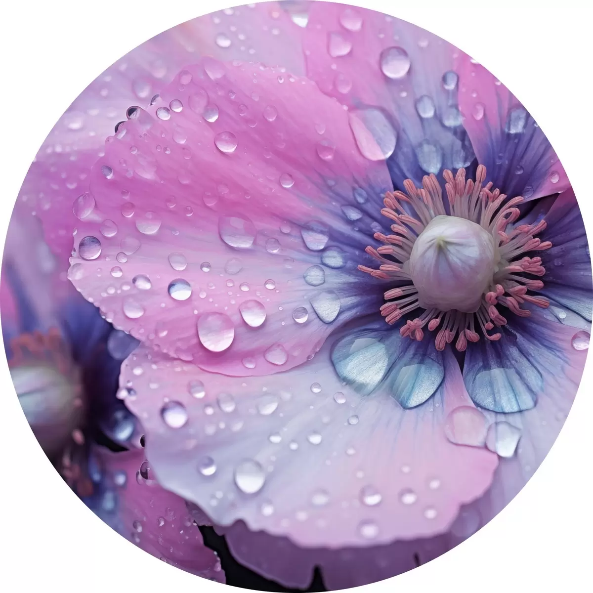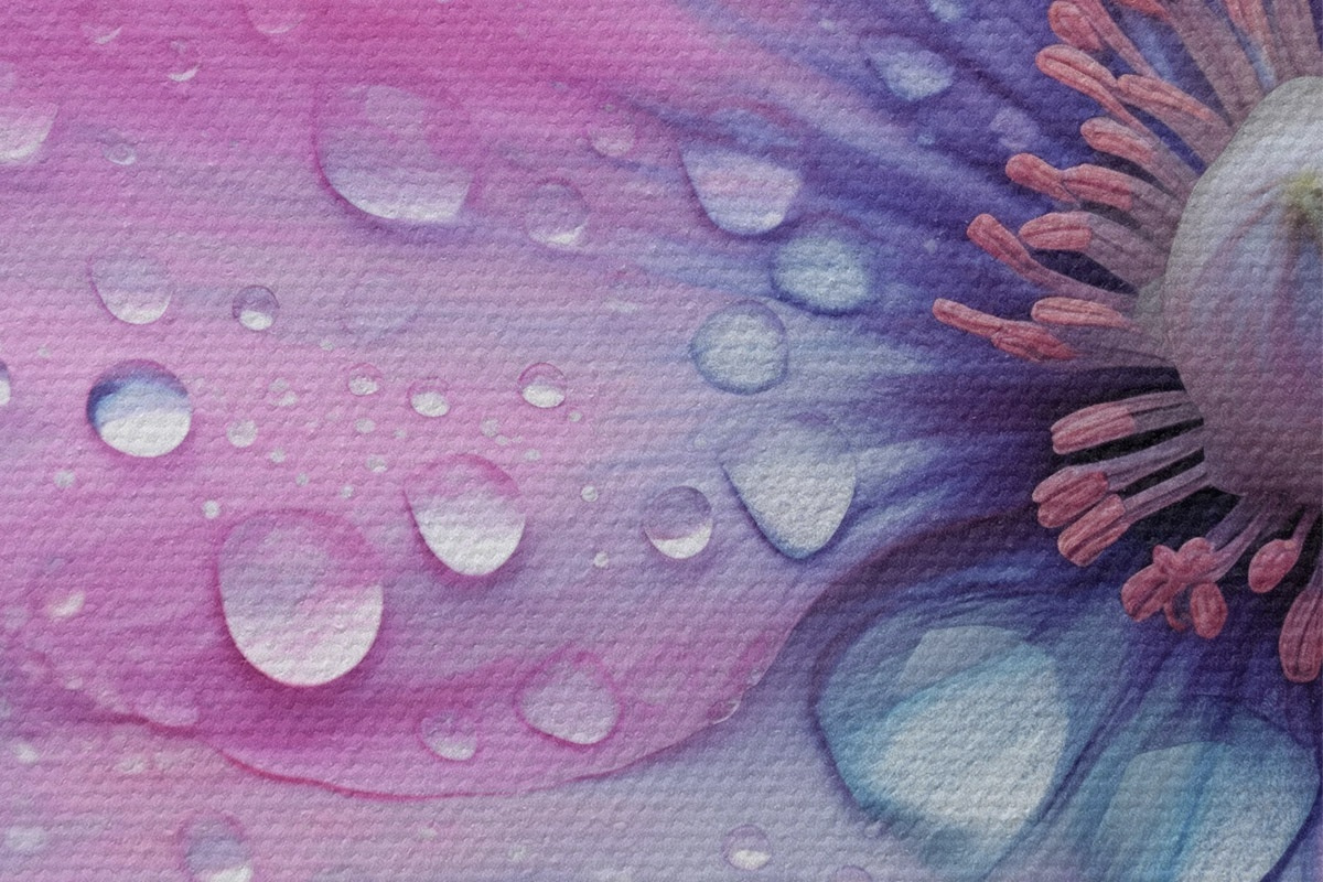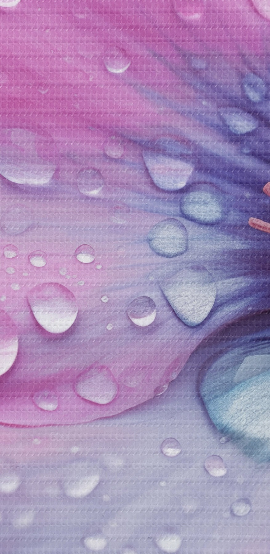 Nuotrauka Tamsiame fone žydinčios rožinės ir violetinės gėlės, padengtos vandens lašeliais Nr r43394