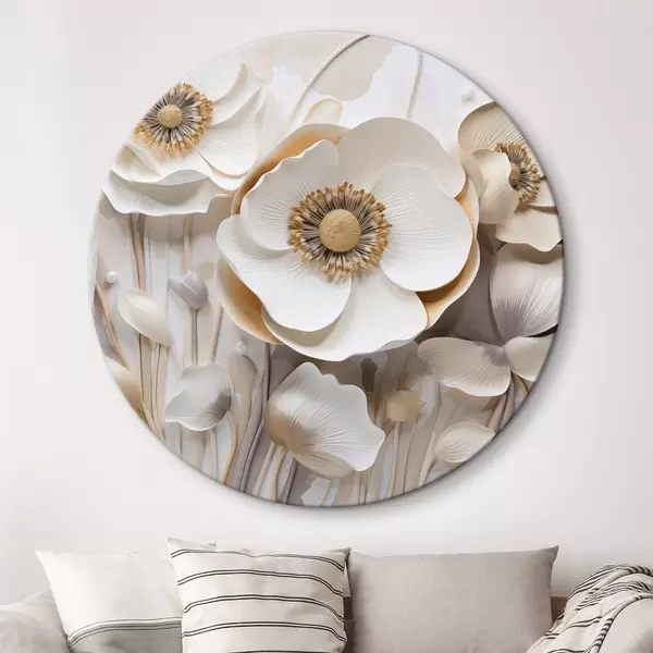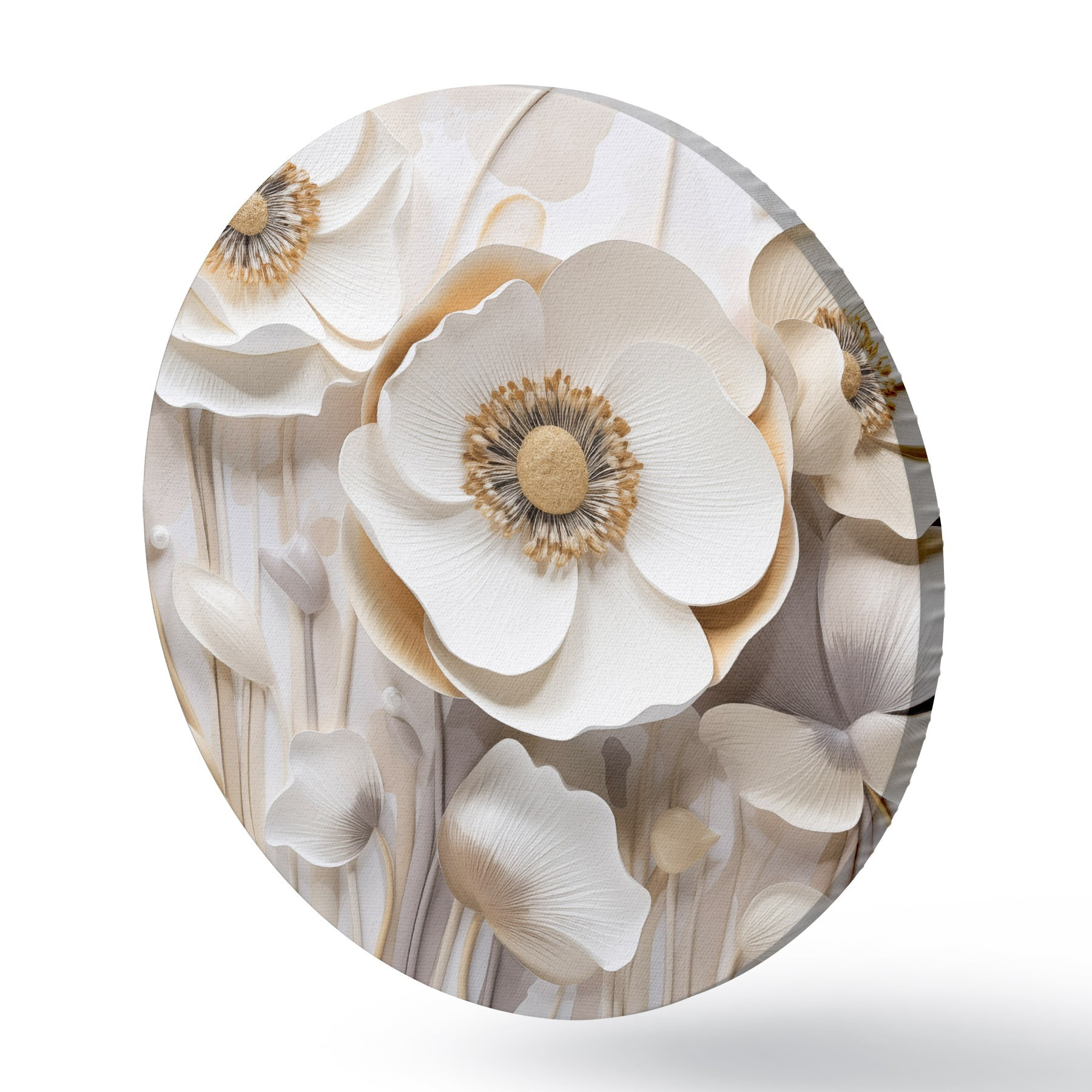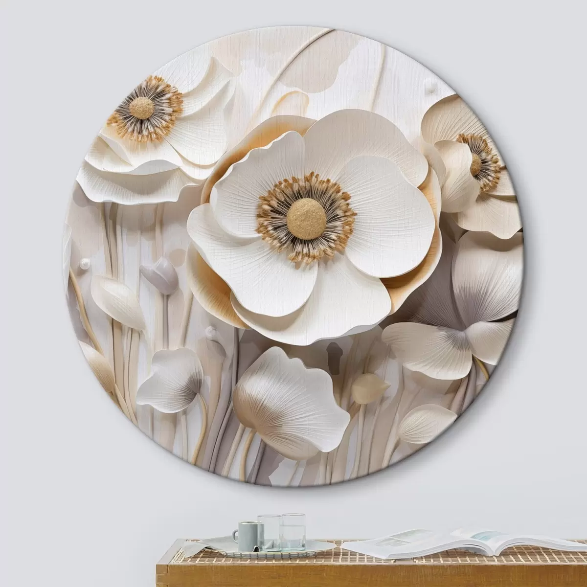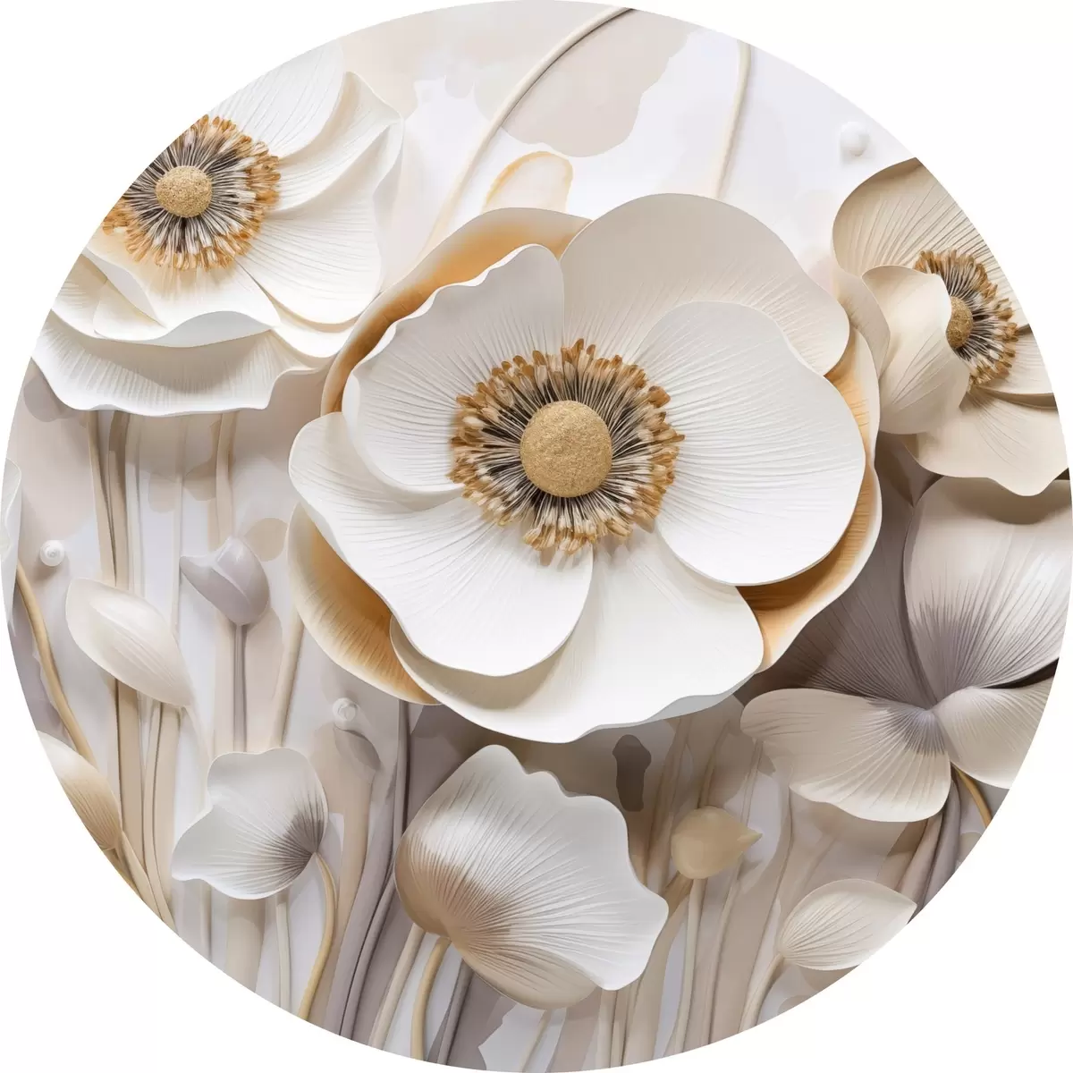 Nuotrauka Baltos anemonų gėlės su geltonais centrais, minimalistinis fonas, sukuriantis subtilų gėlių dizainą Nr r43400