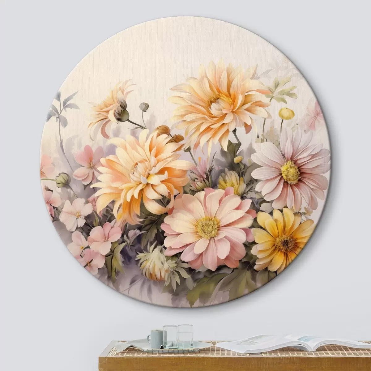 Nuotrauka Rožinių, geltonų ir oranžinių gėlių kolekcija, lengvas fonas, švelnios spalvos, vintažinis stilius, botaninė iliustracija Nr r43401