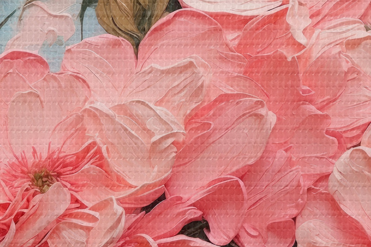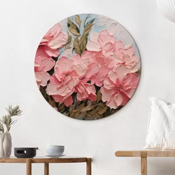 Nuotrauka Rožinės gėlės ir lapai aliejinės tapybos stiliumi Nr r43453
