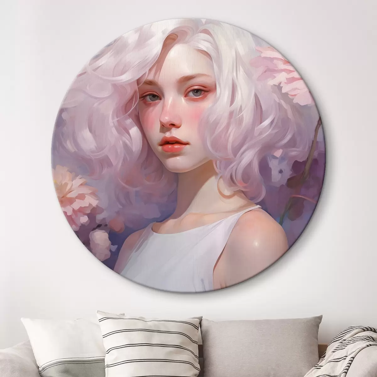 Nuotrauka Graži mergaitė gėlėse, akrilo stiliaus piešinys, Japonija, violetinės spalvos Nr r43495