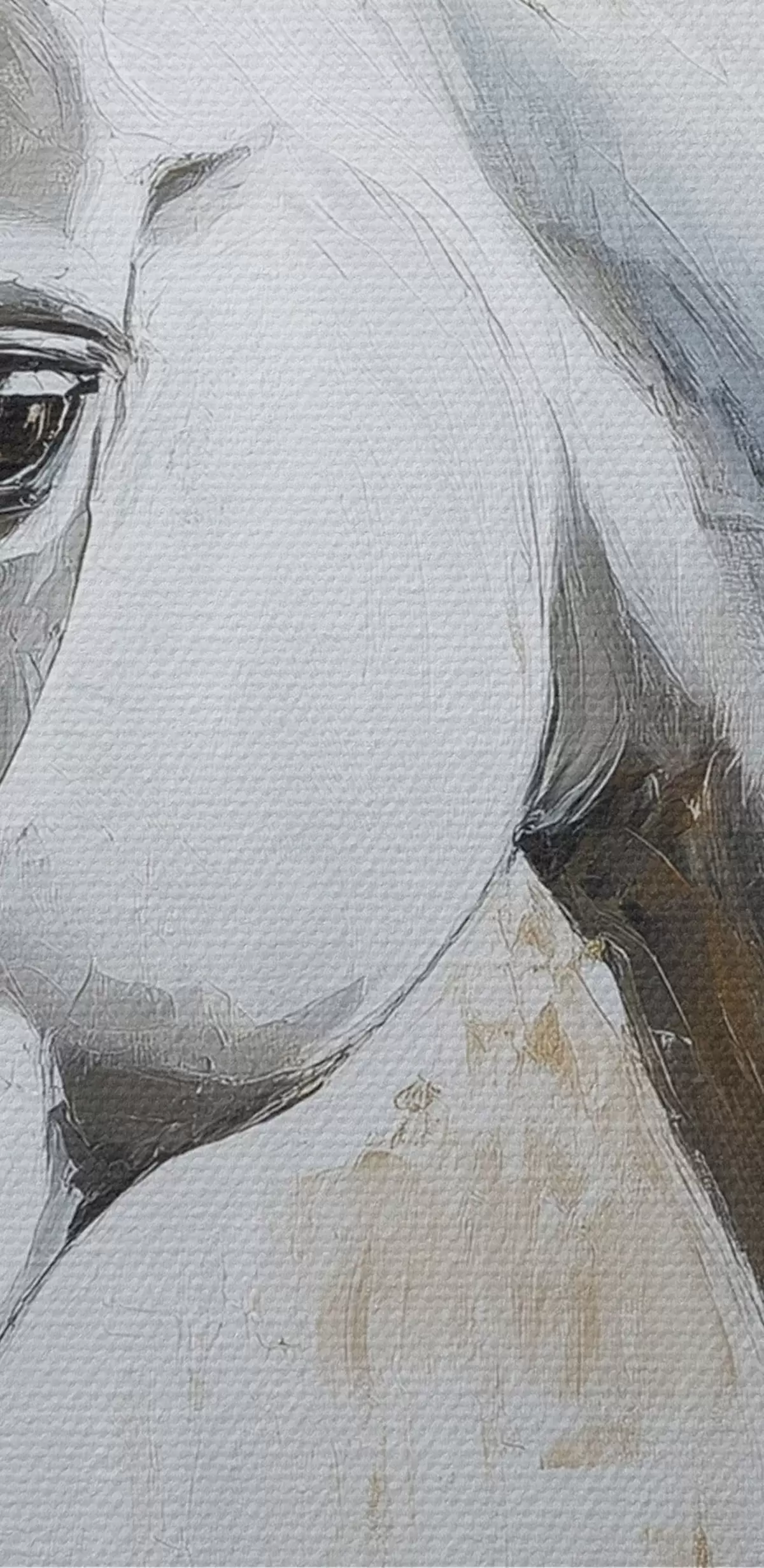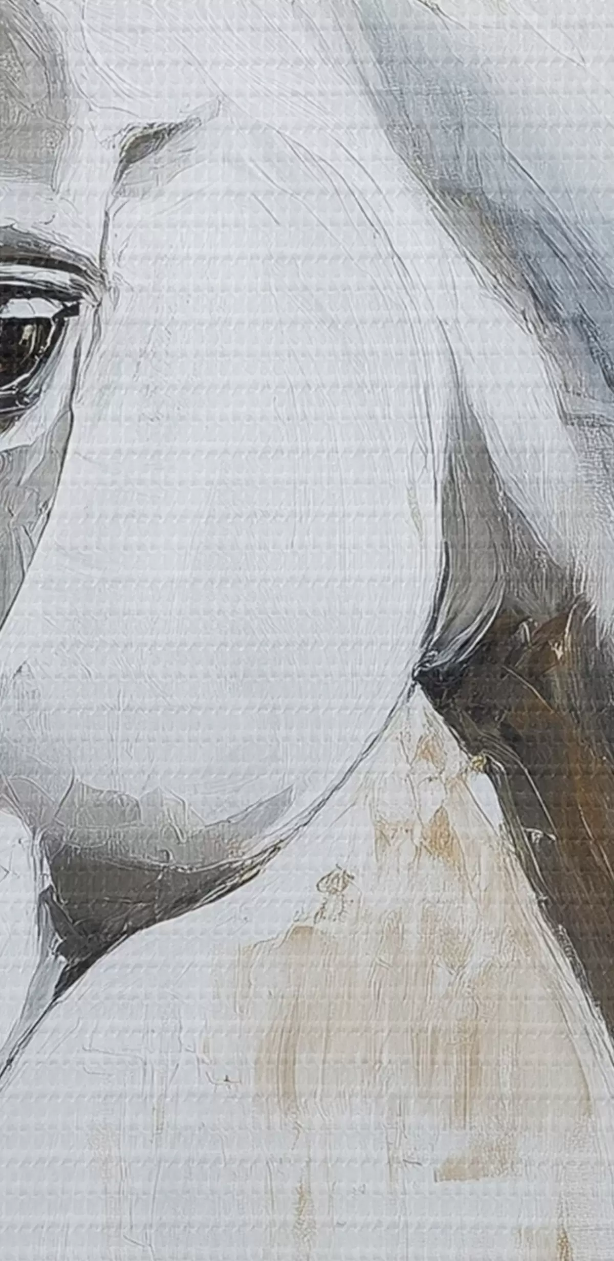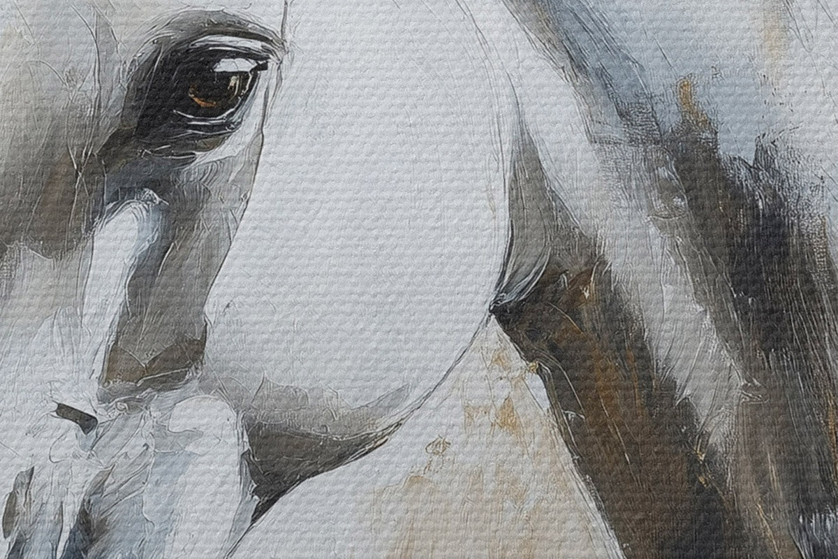 Nuotrauka Baltas arklys, aliejinis piešinys, gyvūnai, ryškūs teptuko potėpiai Nr r43497