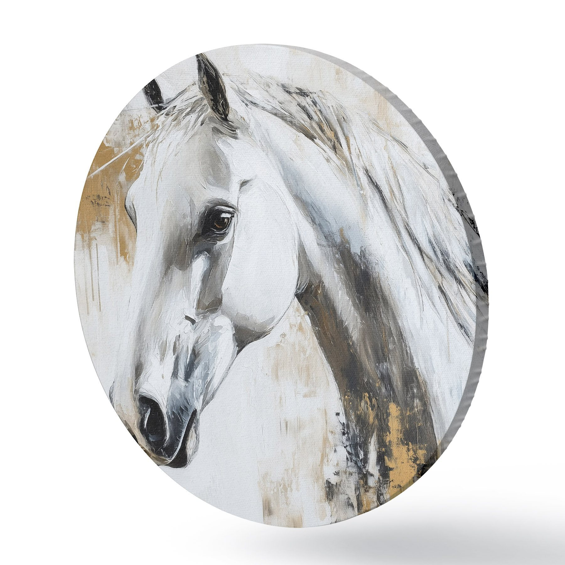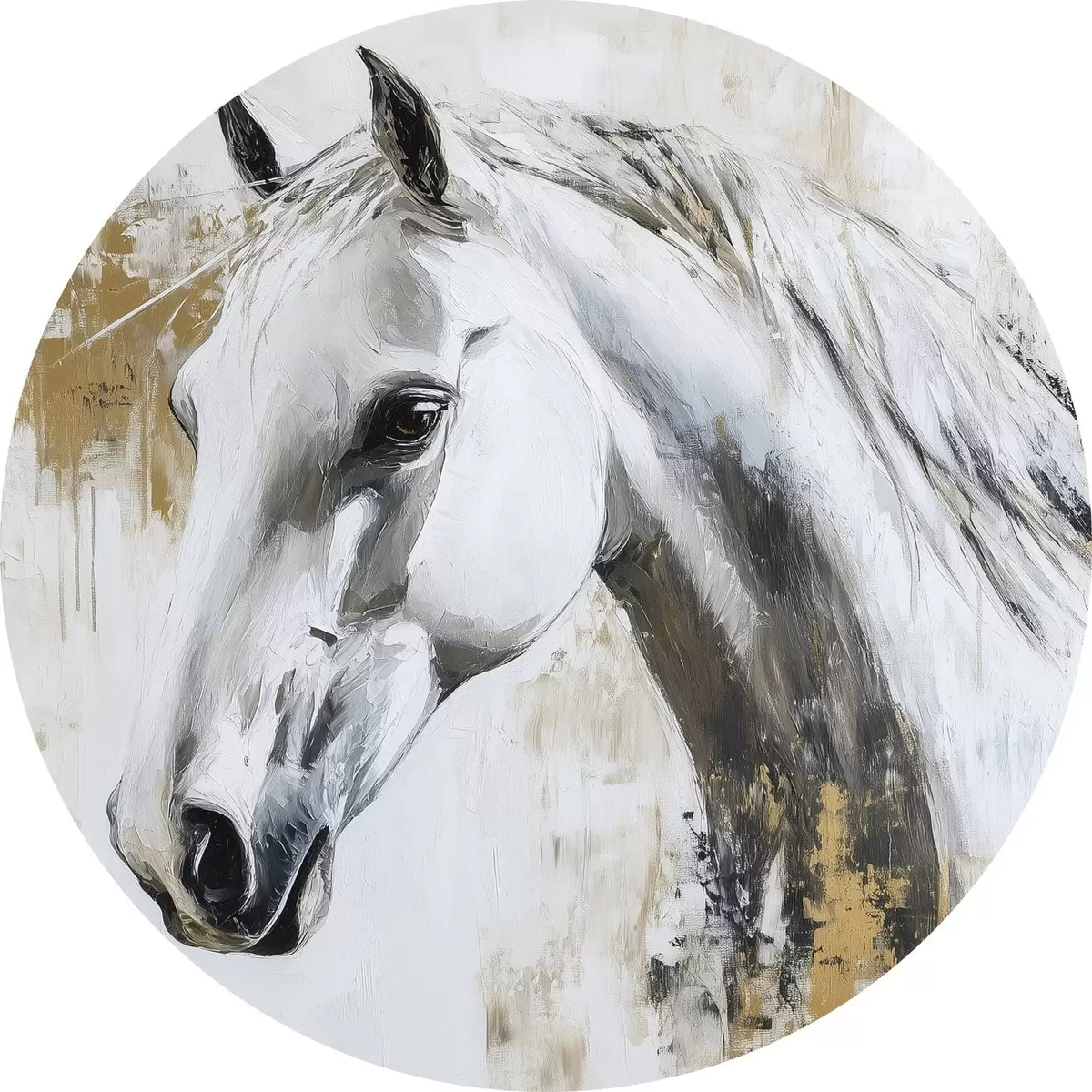 Apvalūs paveikslai Baltas arklys, aliejinis piešinys, gyvūnai, ryškūs teptuko potėpiai r43497