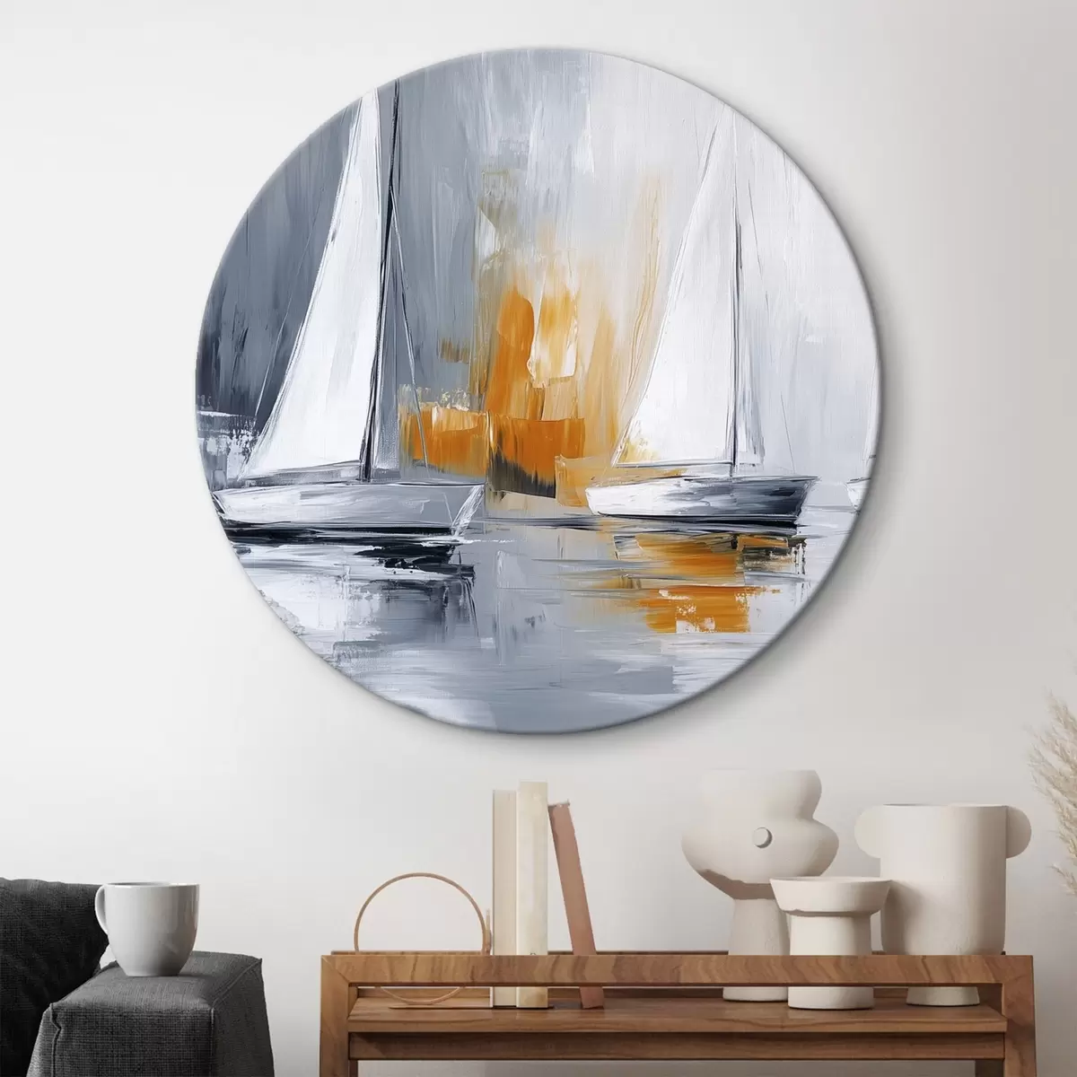 Nuotrauka Burlaiviai, abstrakcija, akrilo stiliaus piešinys, pilka ir oranžinė spalvos Nr r43499