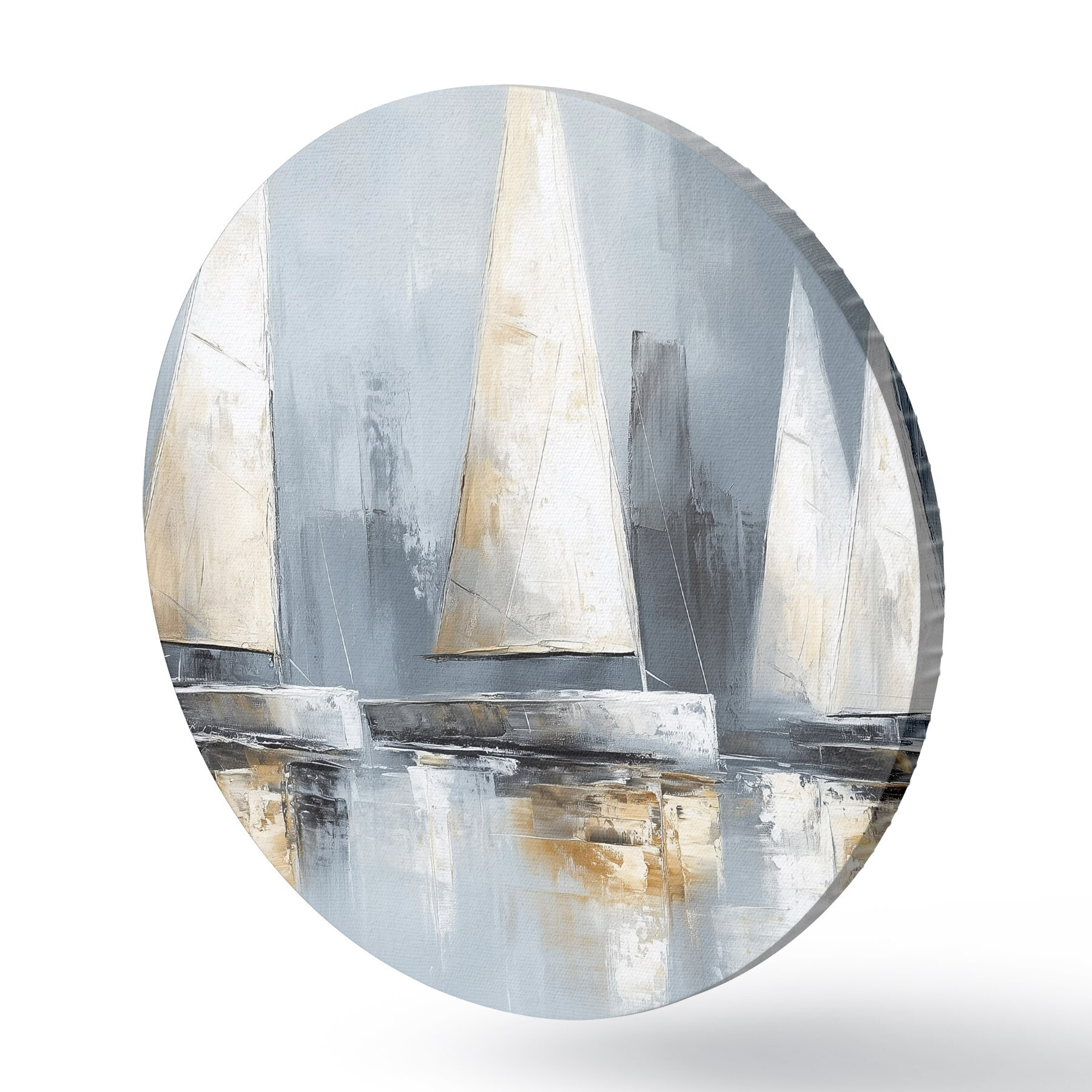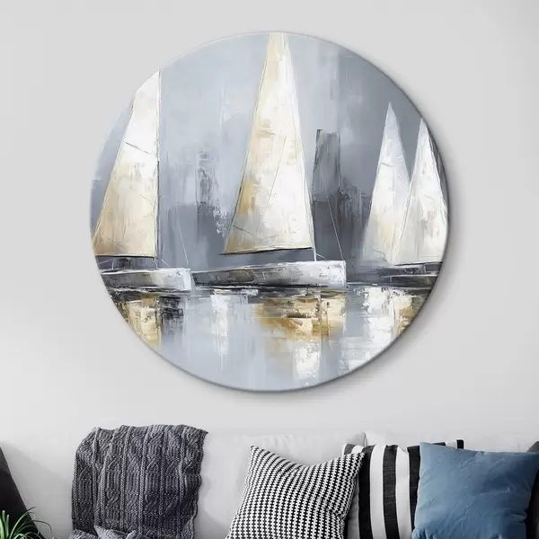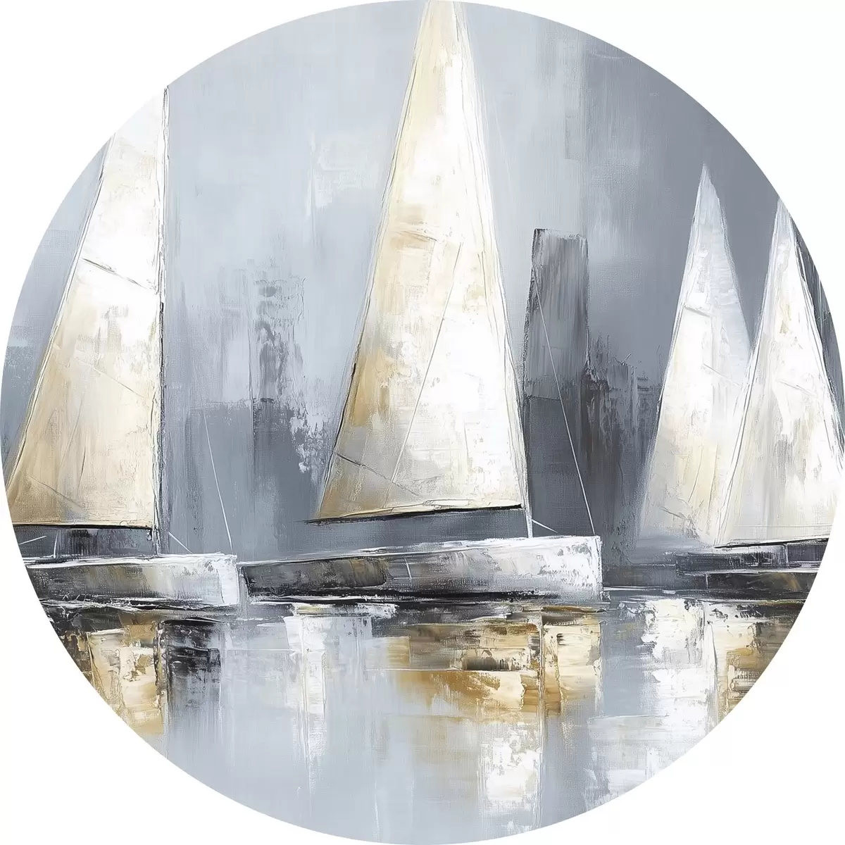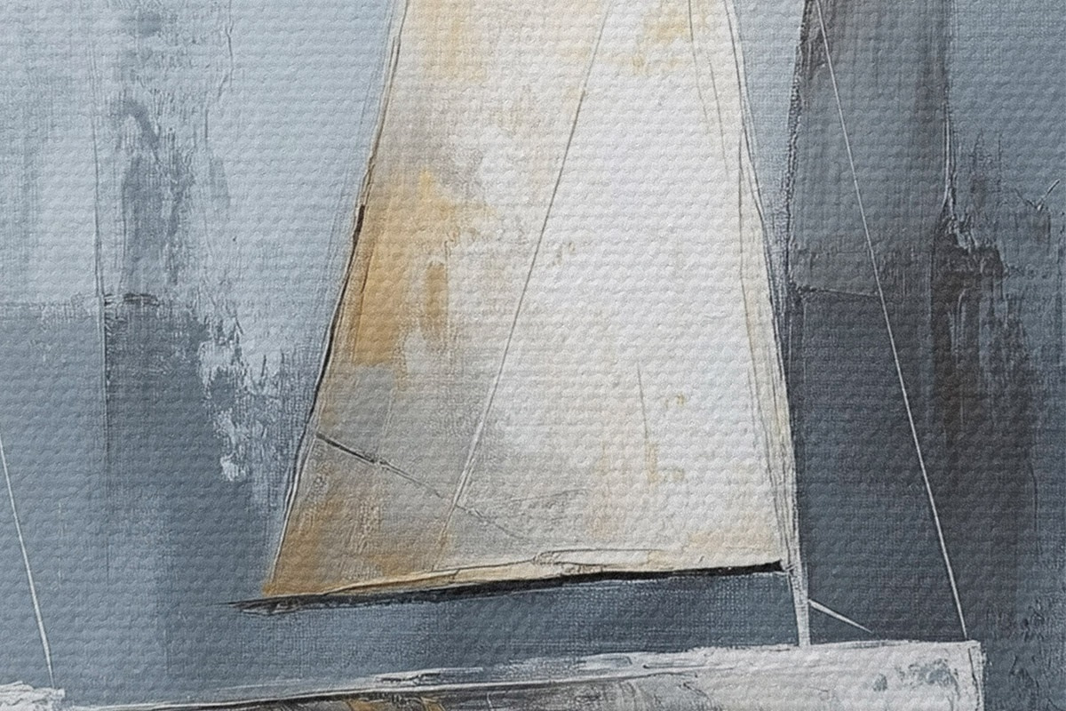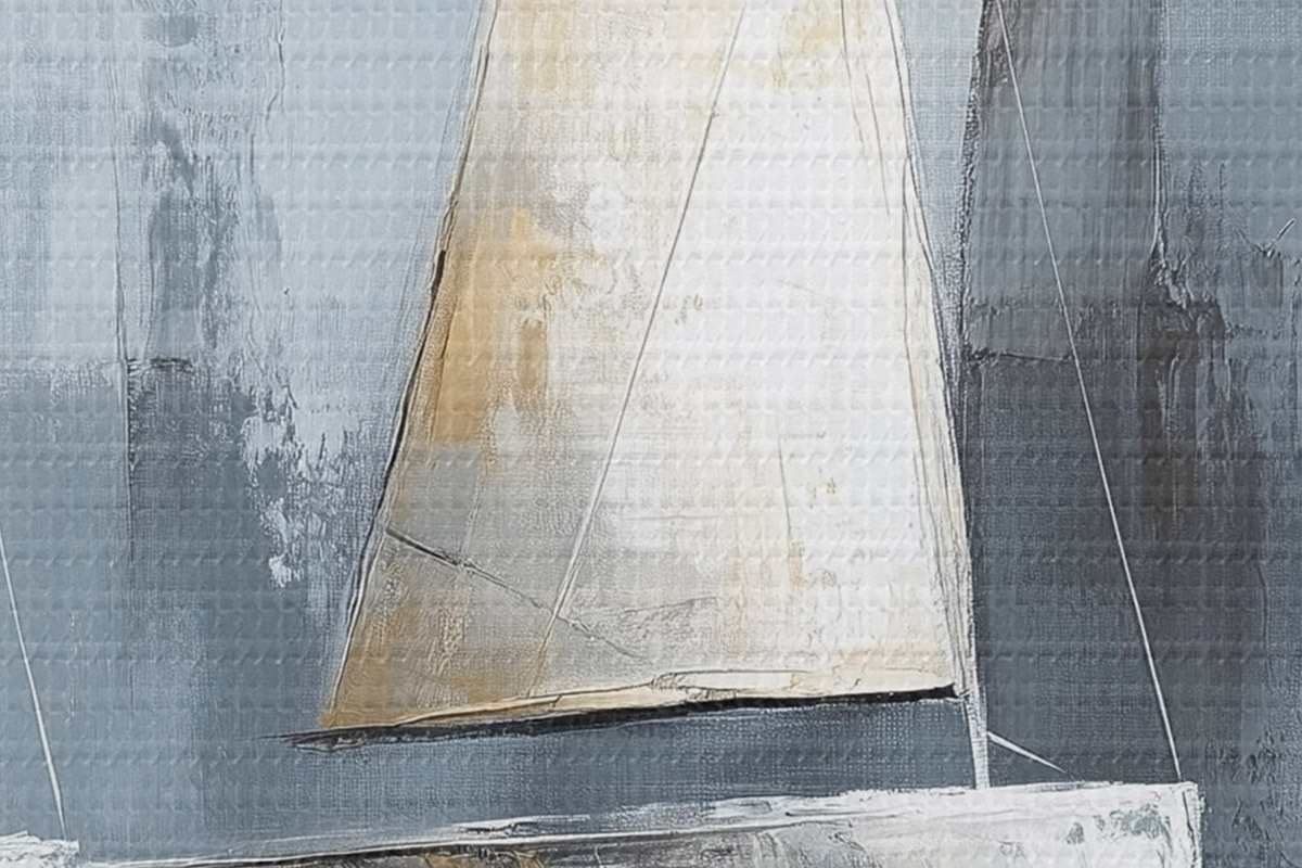 Nuotrauka Burlaiviai su atspindžiais vandenyje, piešinys aliejiniais dažais, pilkos spalvos Nr r43506