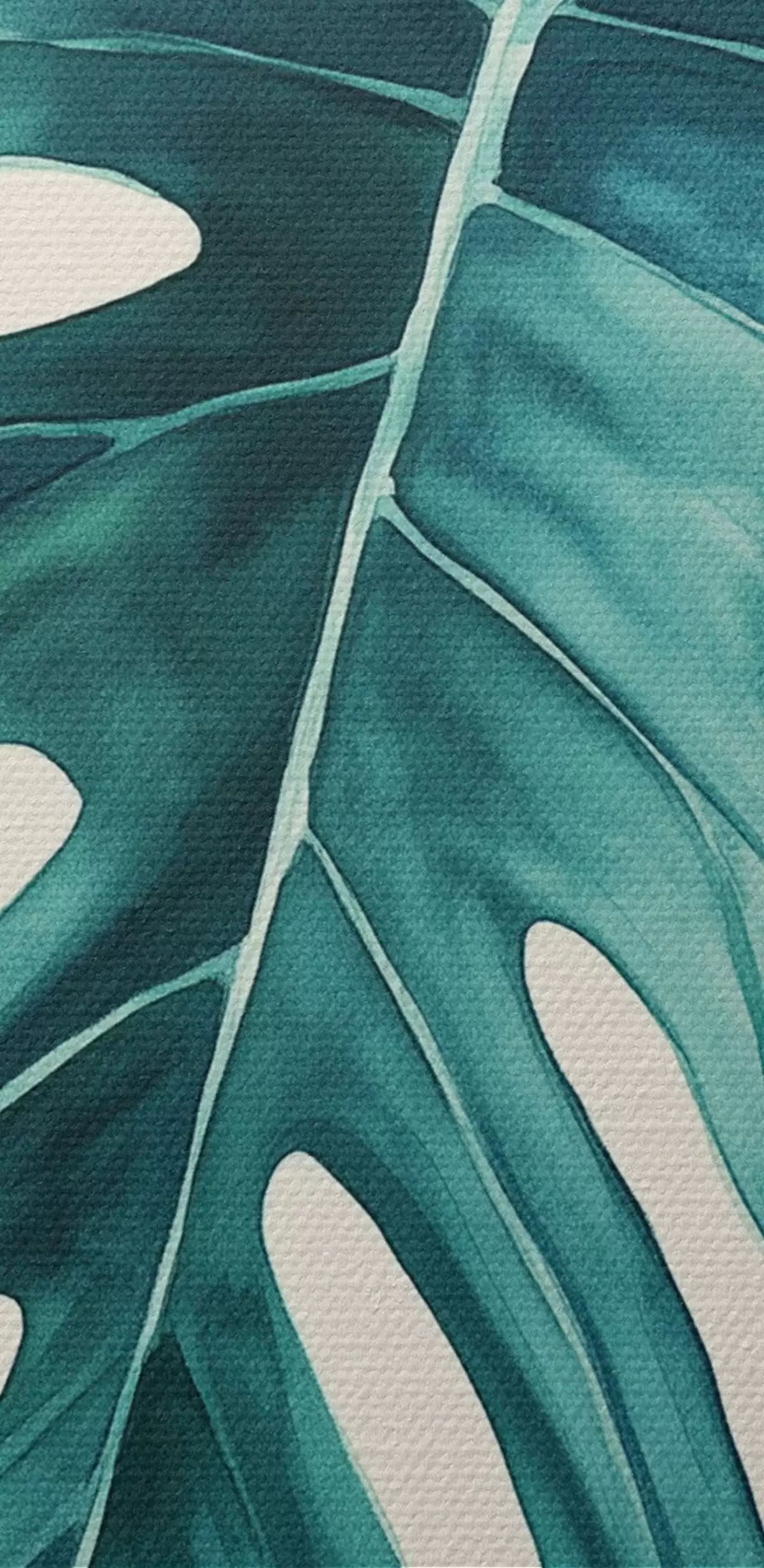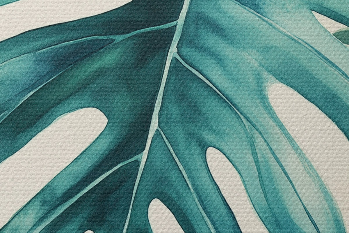 Nuotrauka Monstera palmių lapai, akvarelės stilius, gėlių, atogrąžų Nr r43507