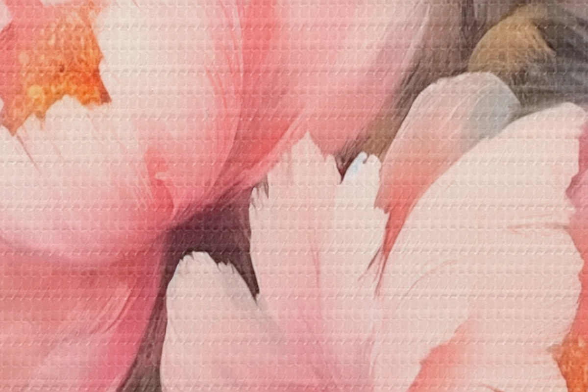 Galima užsakyti trijų rūšių medžiagą: "Economic Canvas" - tanki ir patvari medžiaga skaitmeninei spaudai, identiška dailininko drobės medžiagai, vandeniui atsparus paviršius, tikroviškas detalių atkūrimas, vidutinio grūdėtumo medžiaga. Premium Canvas - tekstūra primena dailininko drobę (susipynę smulkūs siūlai). Minkštas, detalus vaizdo atkūrimas ant matinio paviršiaus. Eco-Premium - aukštos kokybės 100 % medvilninis audinys. Dėl natūralių medvilnės pluoštų medžiaga yra patvari ir atspari nusidėvėjimui. Puikus spalvų atkūrimas ir detalumas.