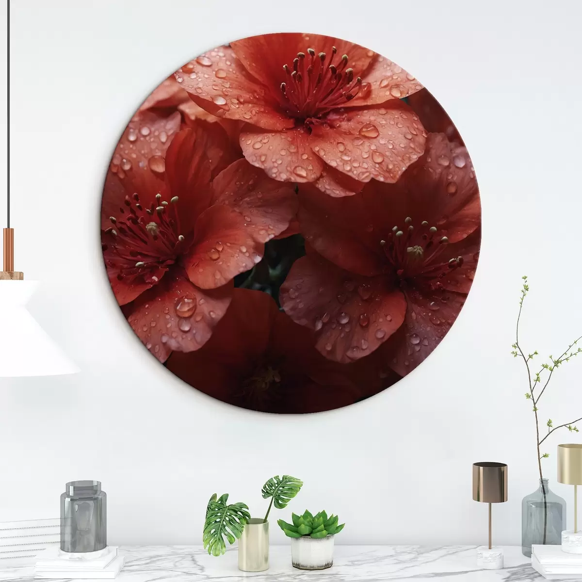 Nuotrauka Raudonos gėlės su rasos lašais Nr r43878