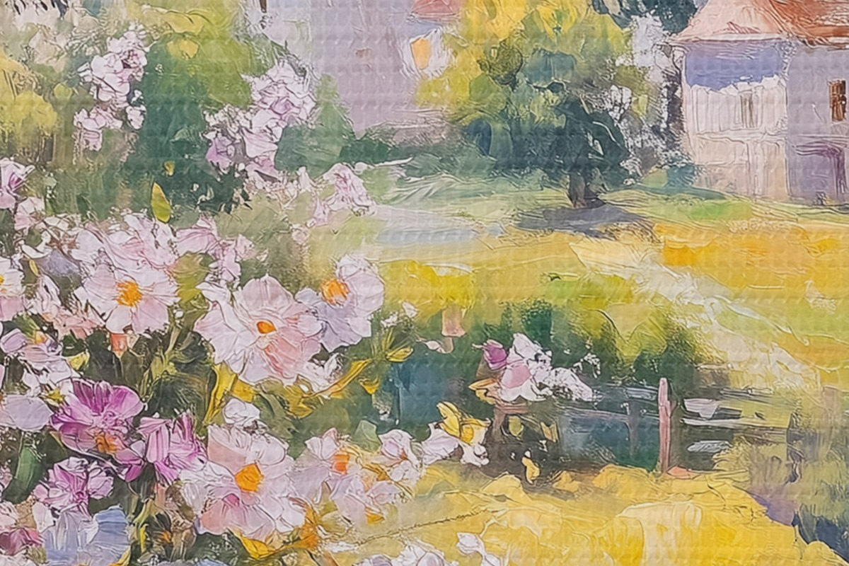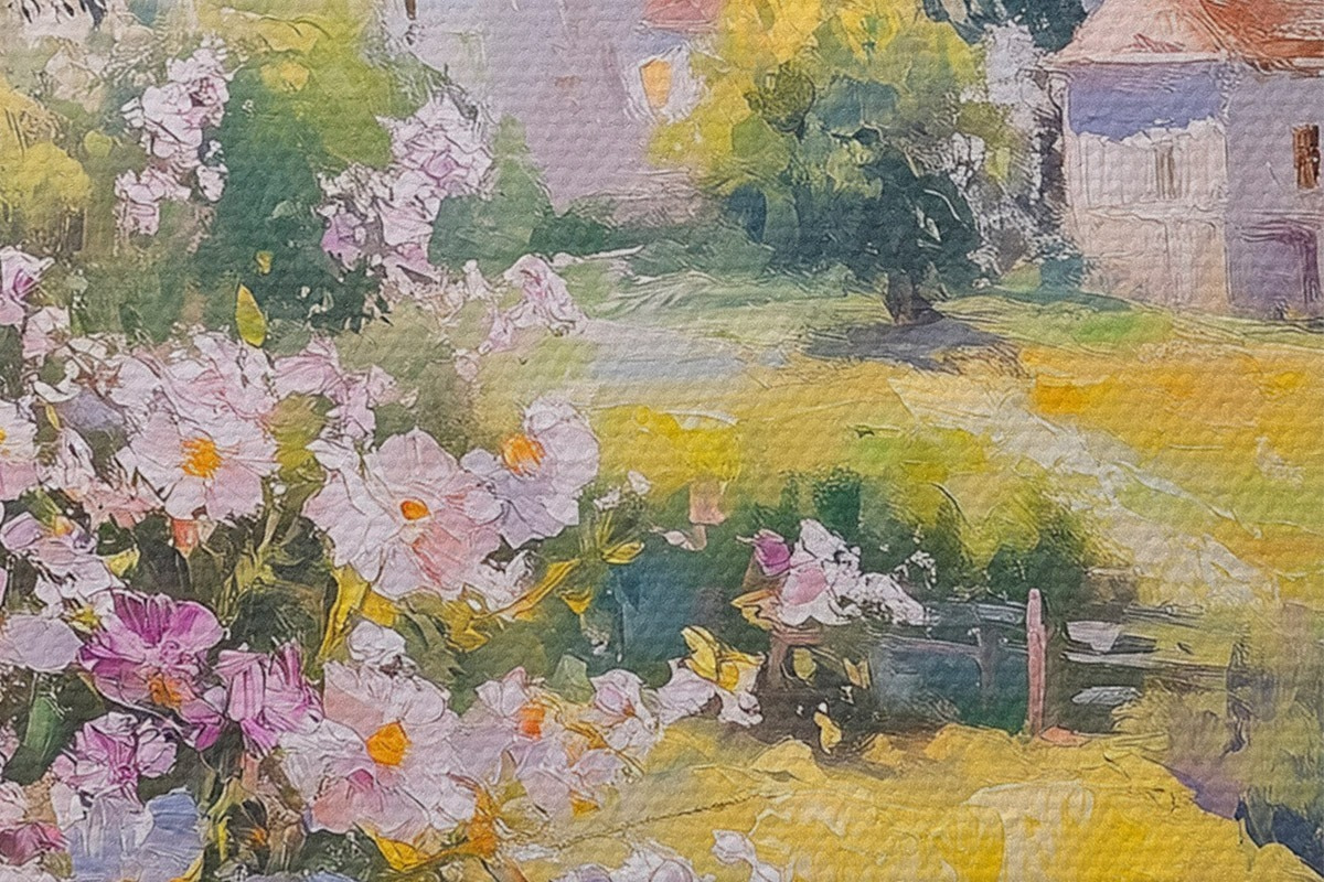 Nuotrauka Vasara kaime, kaimiškas, aliejinis piešinys, gėlės vazoje Nr r43889