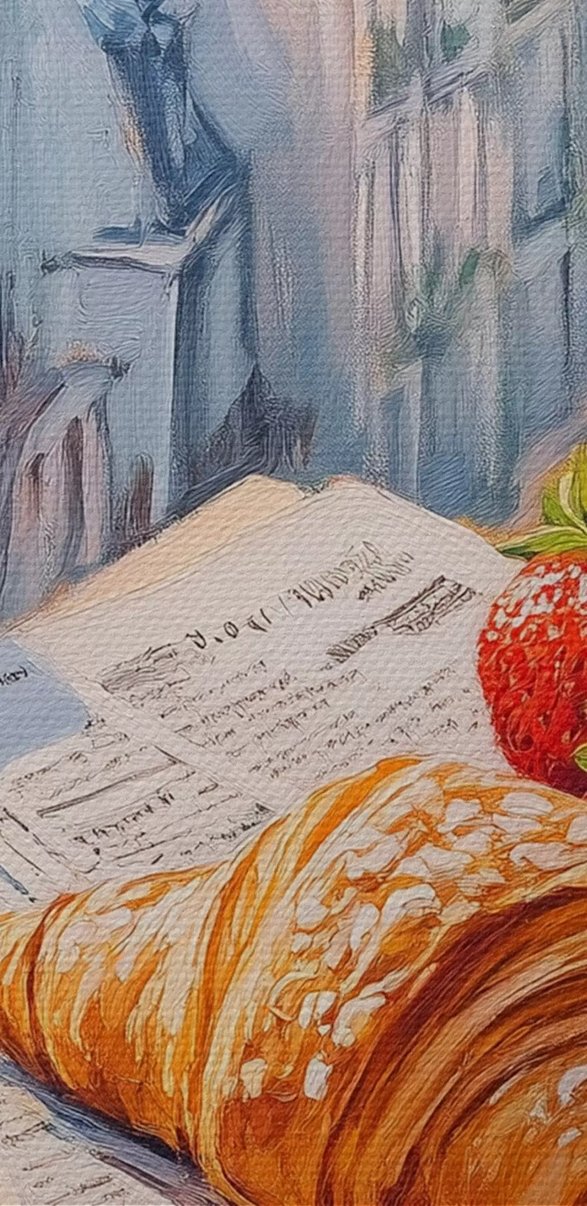 Nuotrauka Saulėtekis Paryžiaus balkone, Eifelio bokštas, braškės, kava, žurnalas Nr r43890