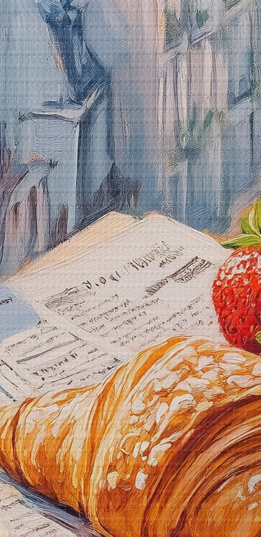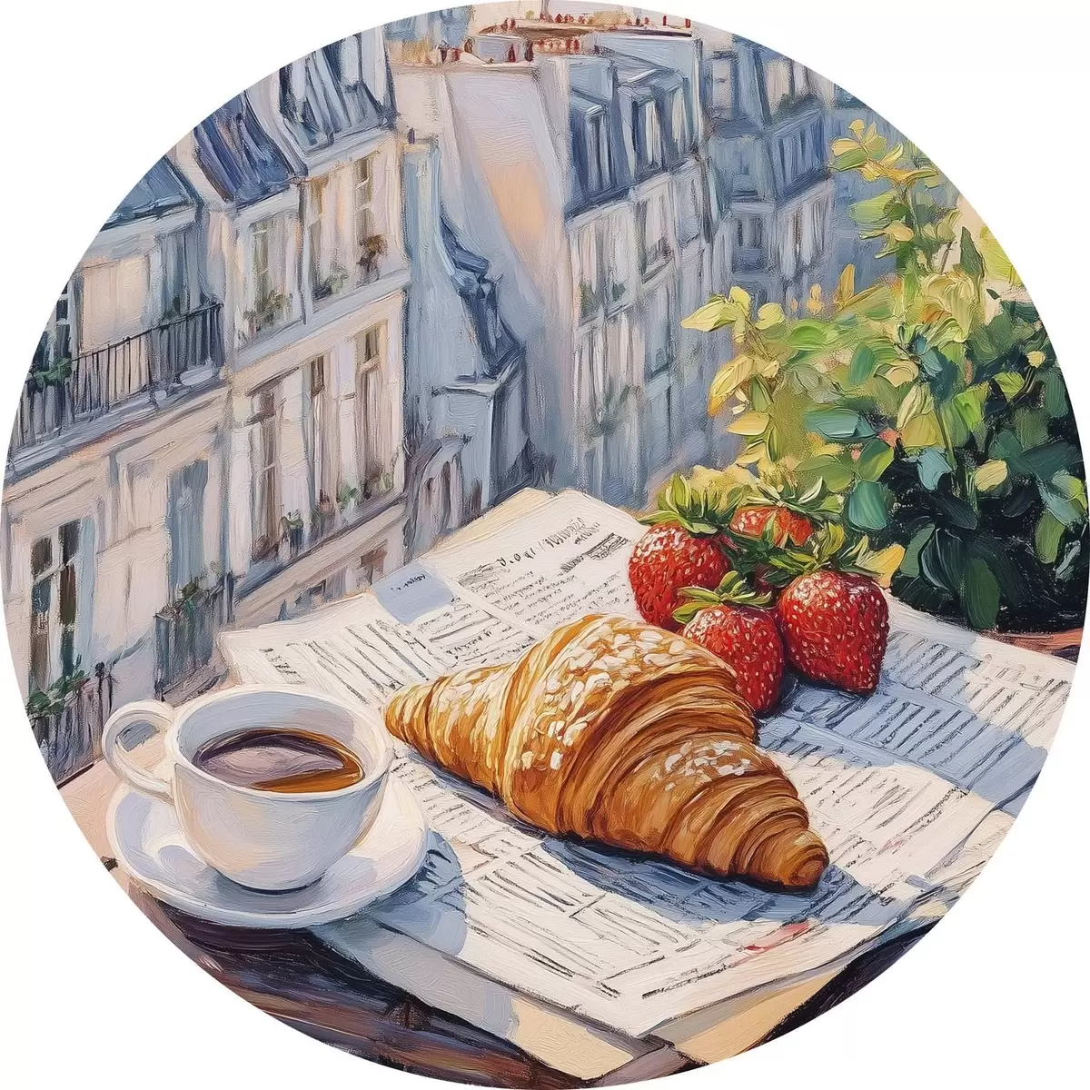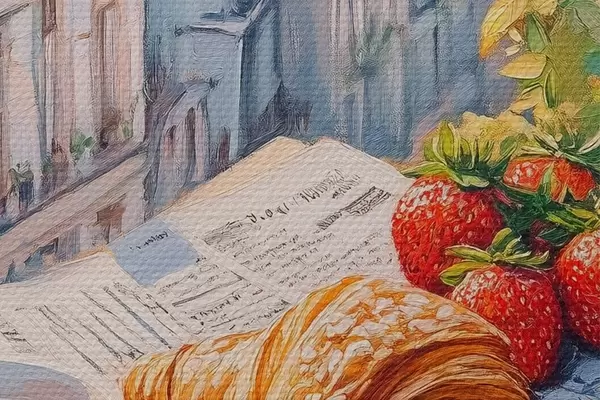 Nuotrauka Saulėtekis Paryžiaus balkone, Eifelio bokštas, braškės, kava, žurnalas Nr r43890