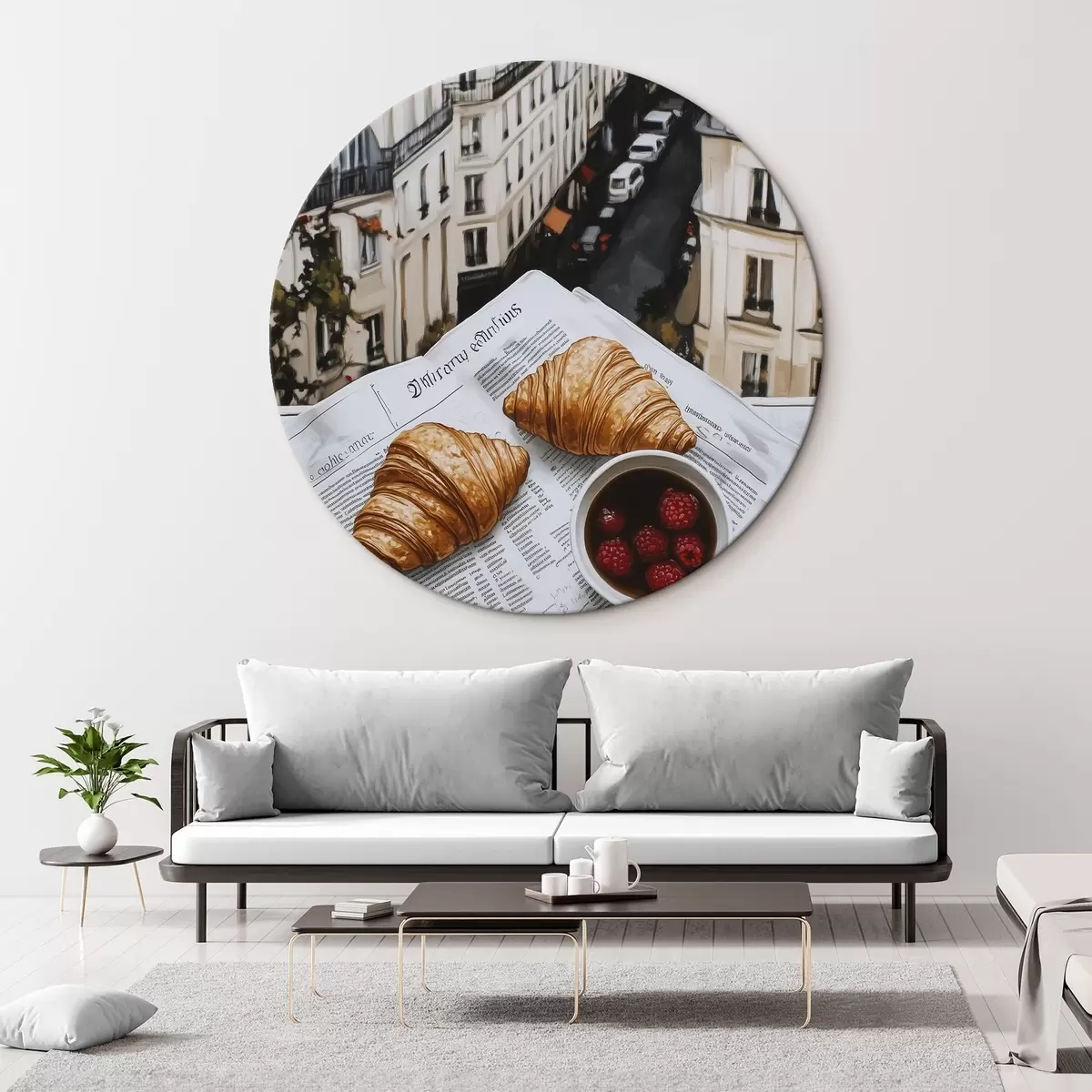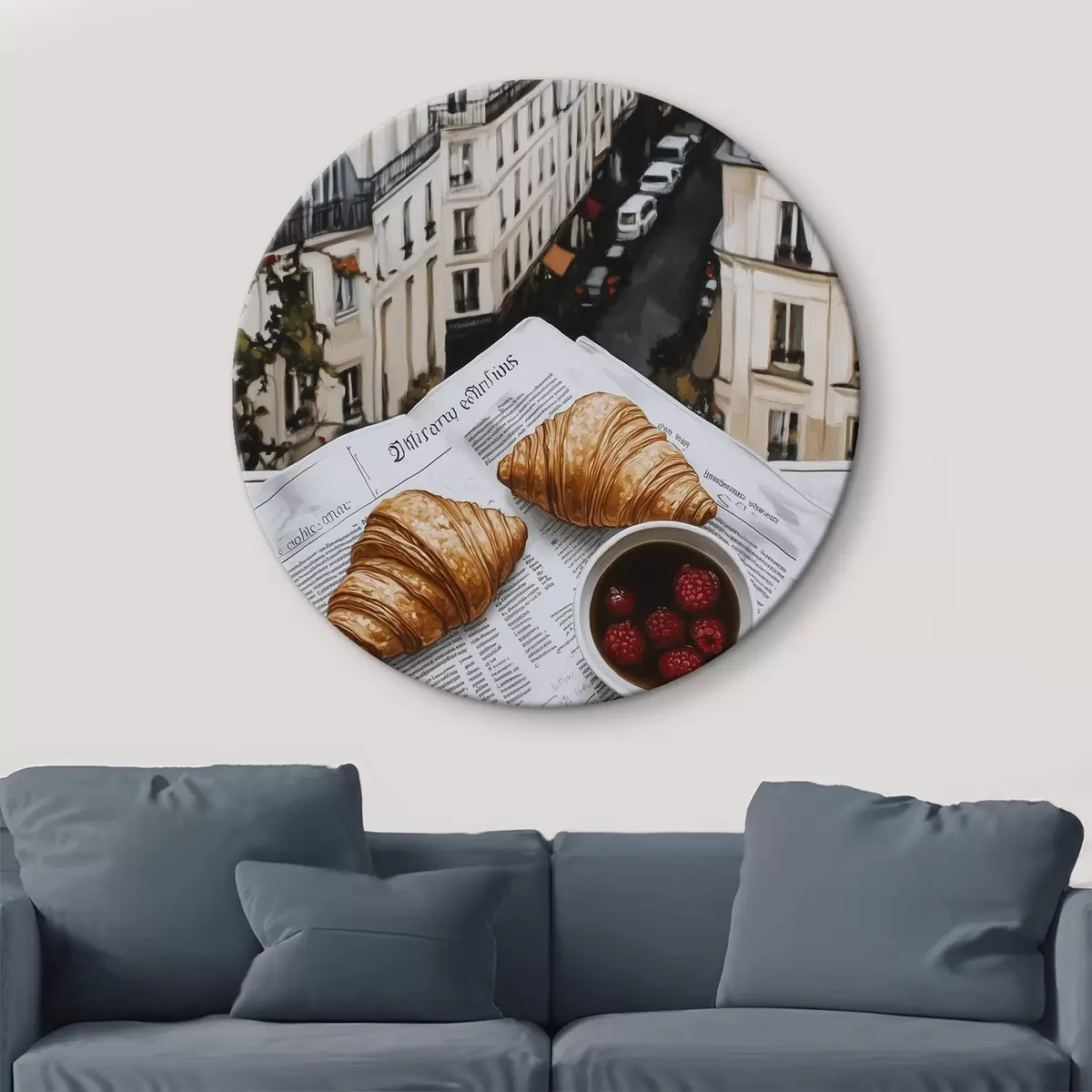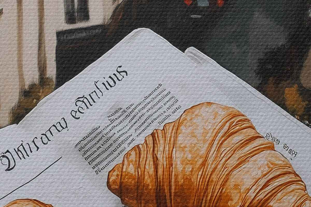 Nuotrauka Rytinė kava su kruasanais, miesto gatvė, architektūrinis, aliejinis stilius Nr r43891