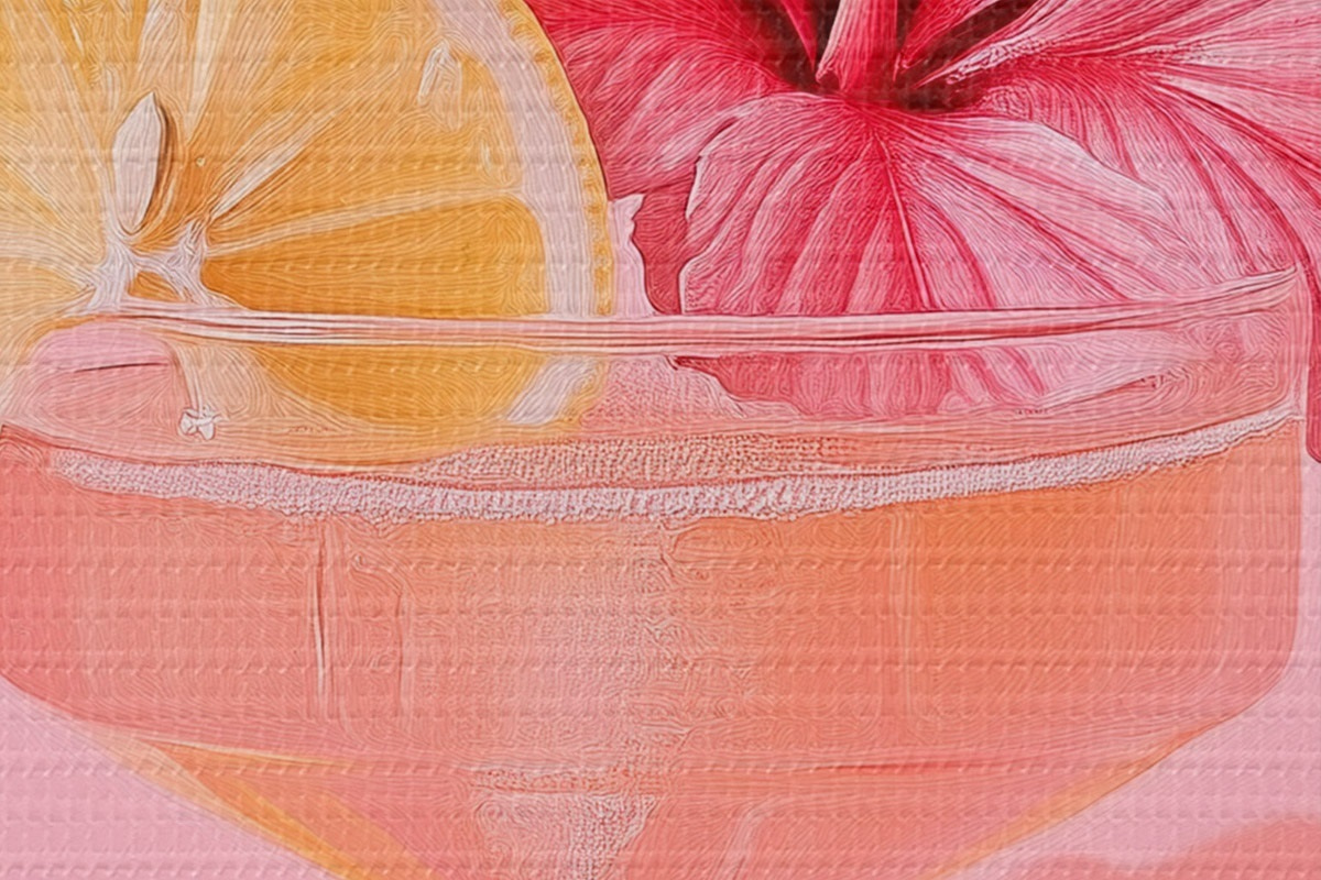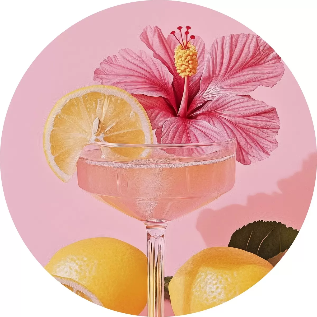 Nuotrauka Rožinis kokteilis su hibisko gėlėmis, citrinomis, realizmas Nr r43893