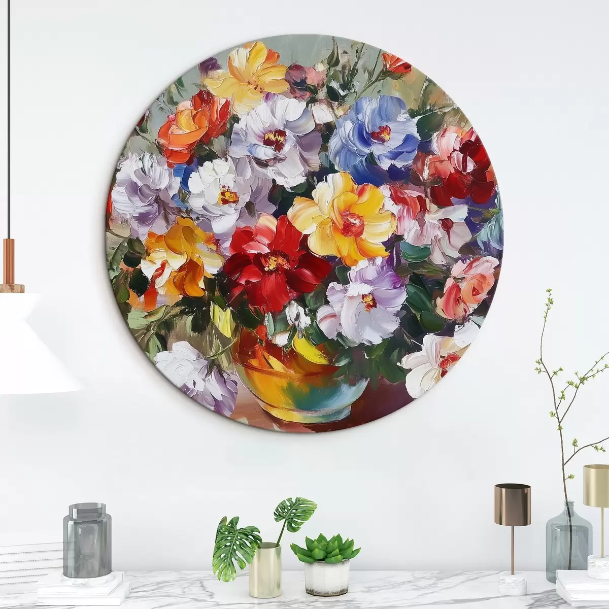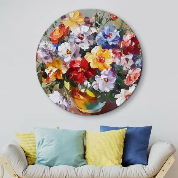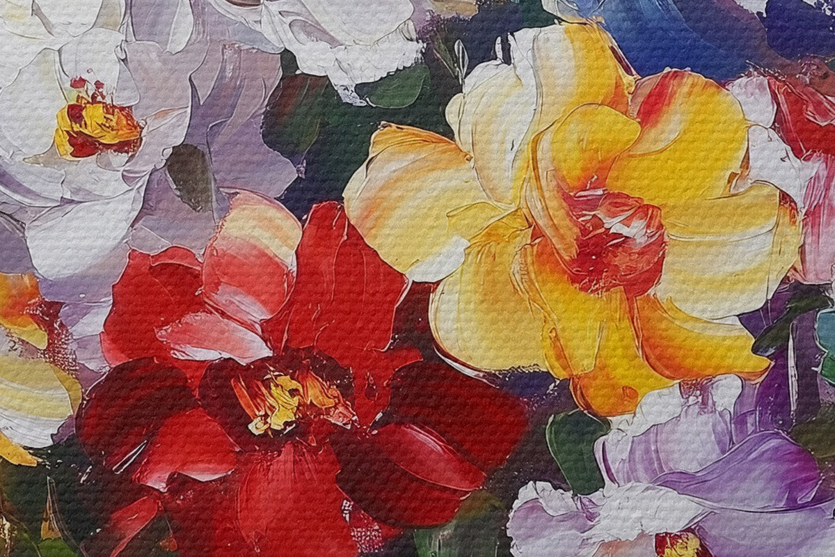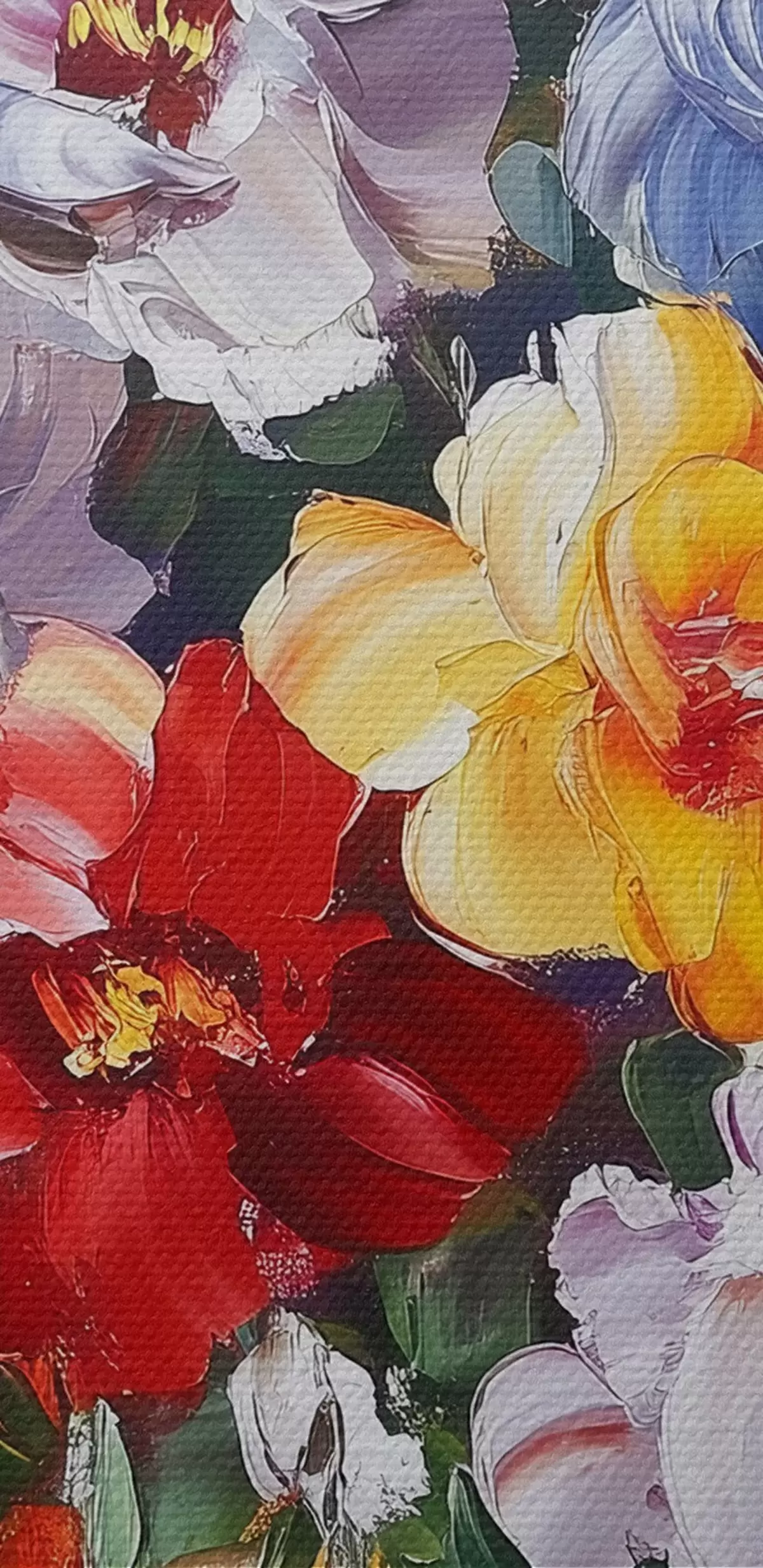 Nuotrauka Įvairiaspalvės gėlės vazoje aliejiniais dažais Nr r43909