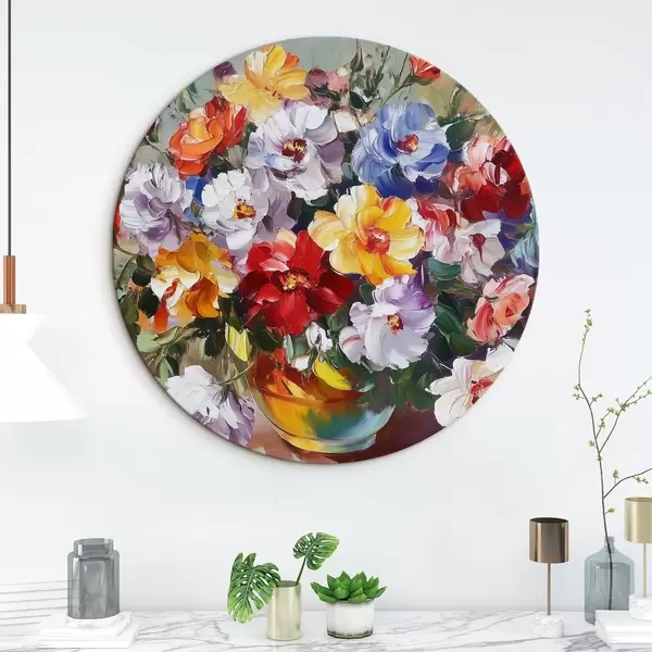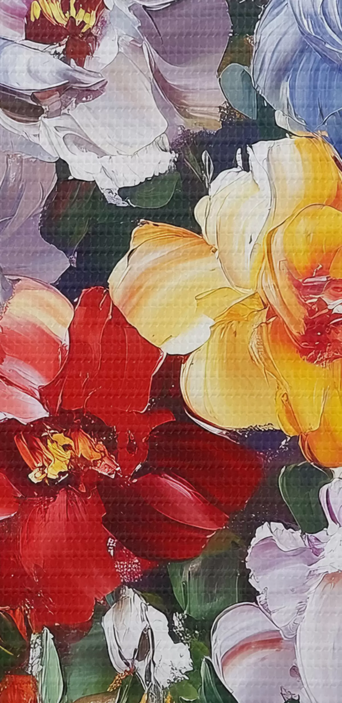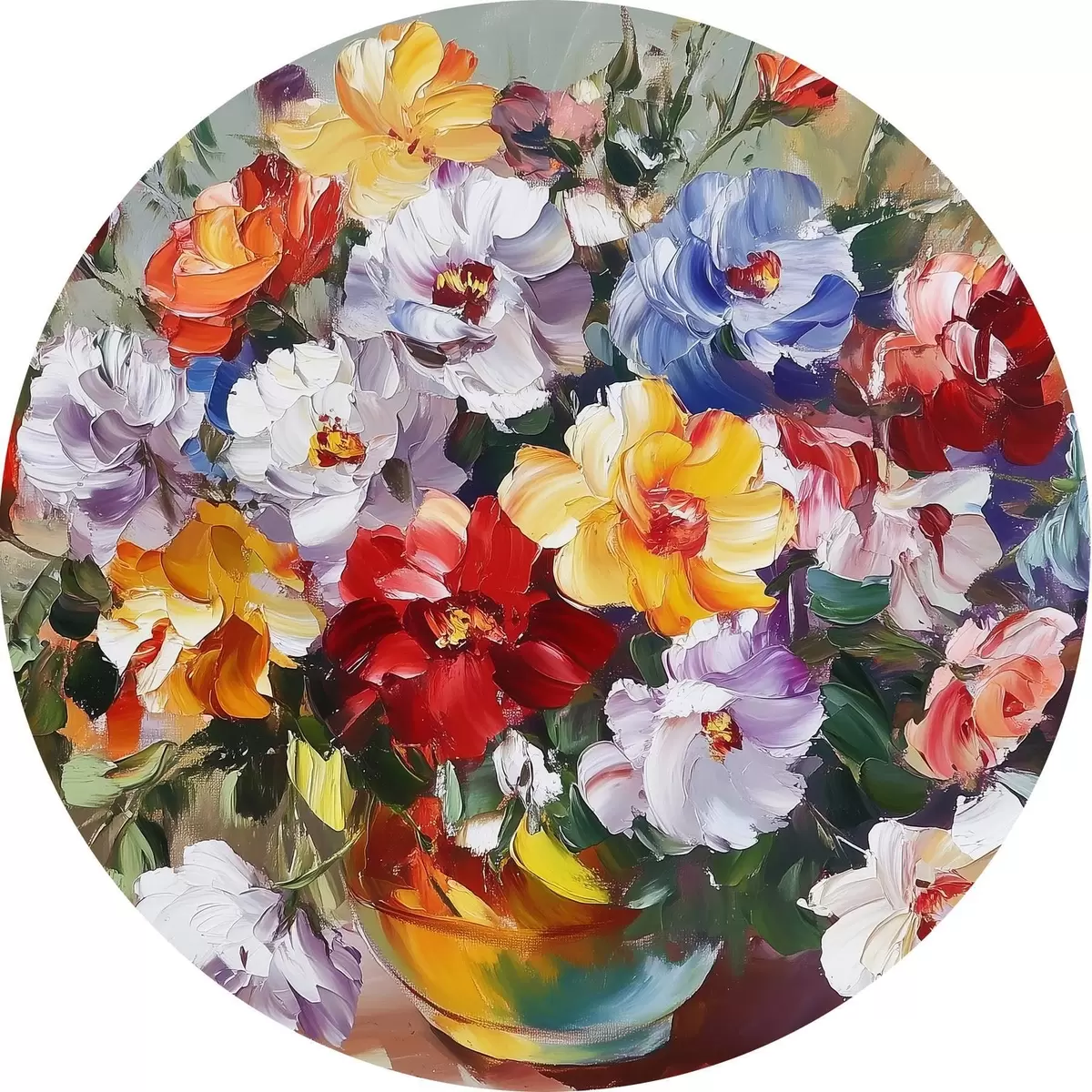 Nuotrauka Įvairiaspalvės gėlės vazoje aliejiniais dažais Nr r43909