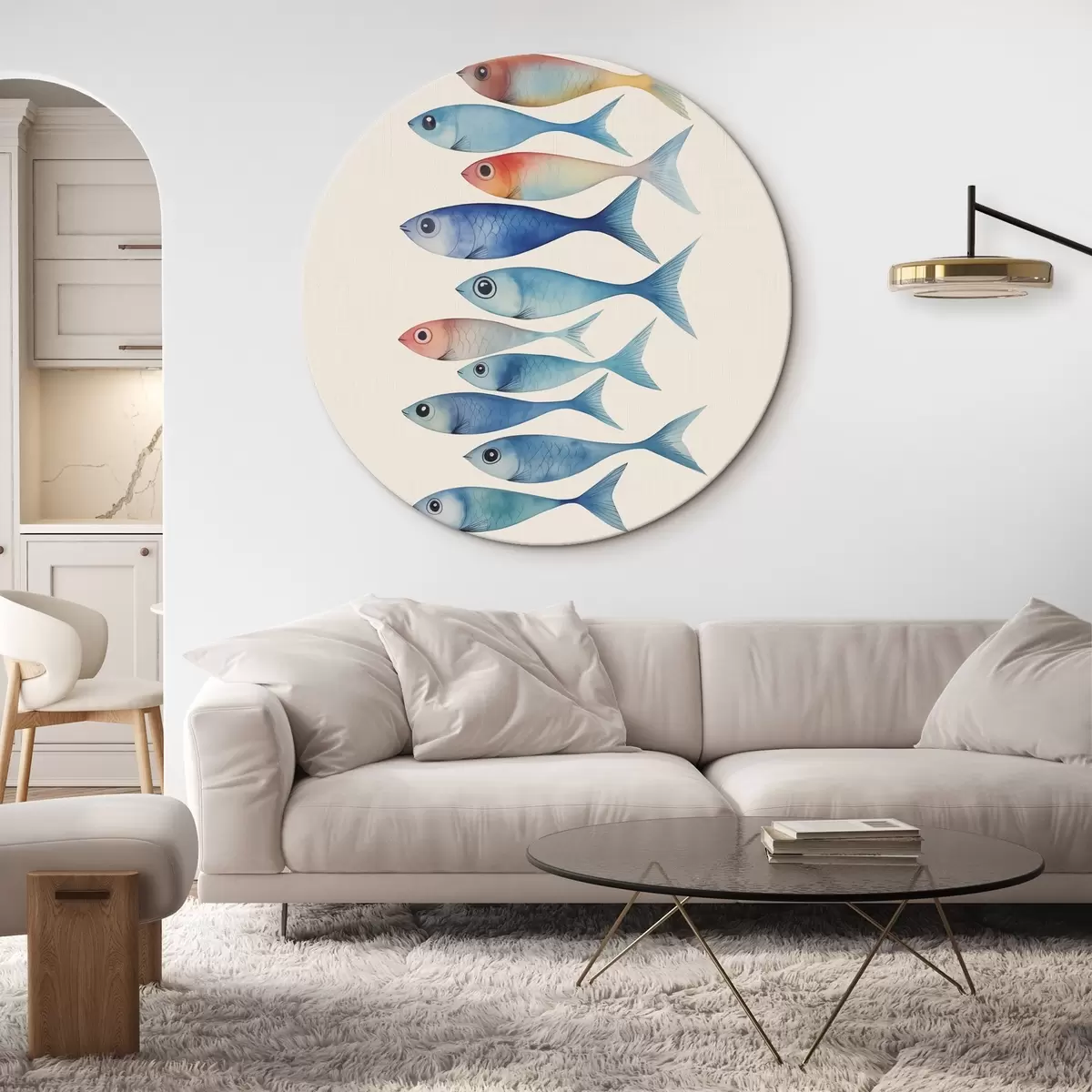 Apvalūs paveikslai Žuvų minimalizmo imitacija akvarelė r43960