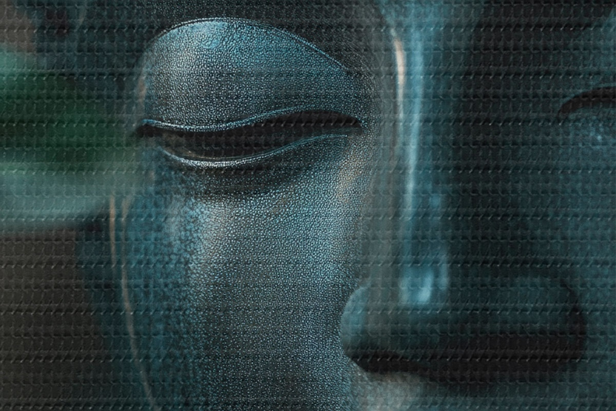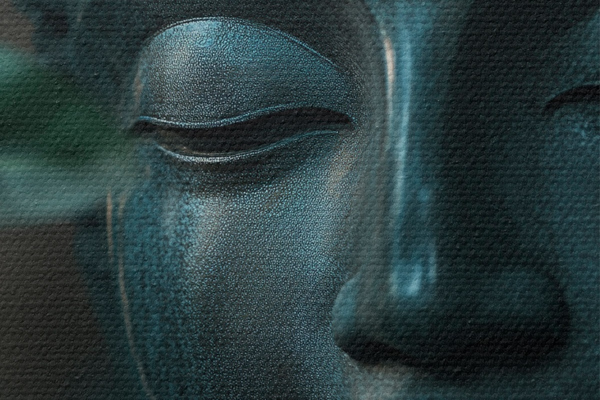 Nuotrauka Žalias Buda atogrąžų lapuose, realizmas Nr r44005