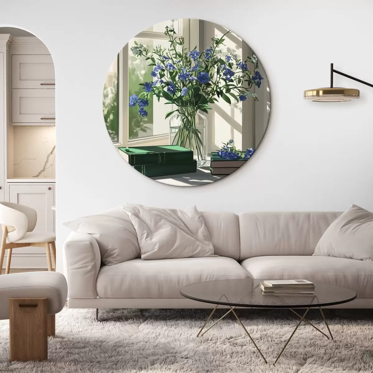 Nuotrauka Knygos ir violetinės gėlės vazoje ant palangės, žaluma Nr r44008